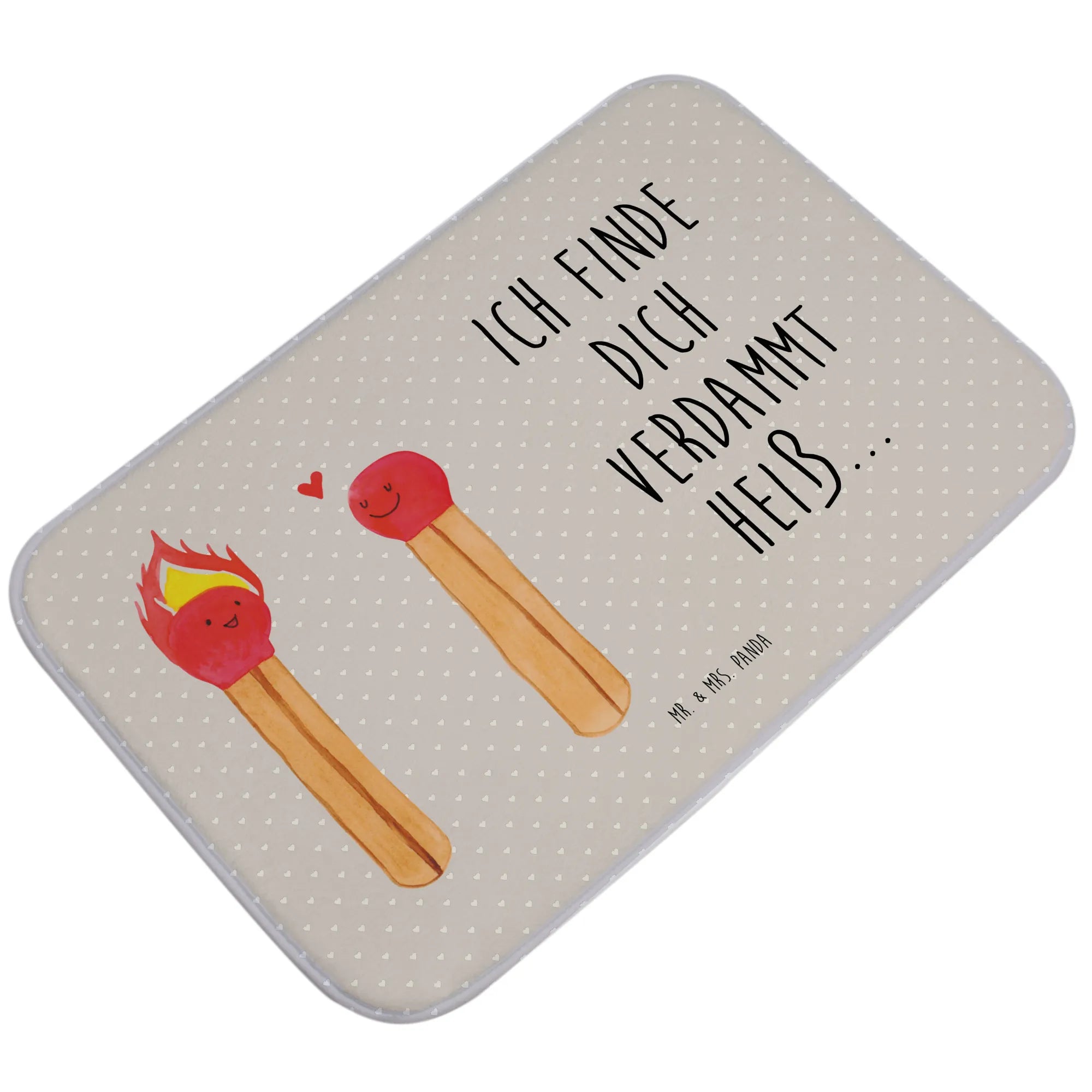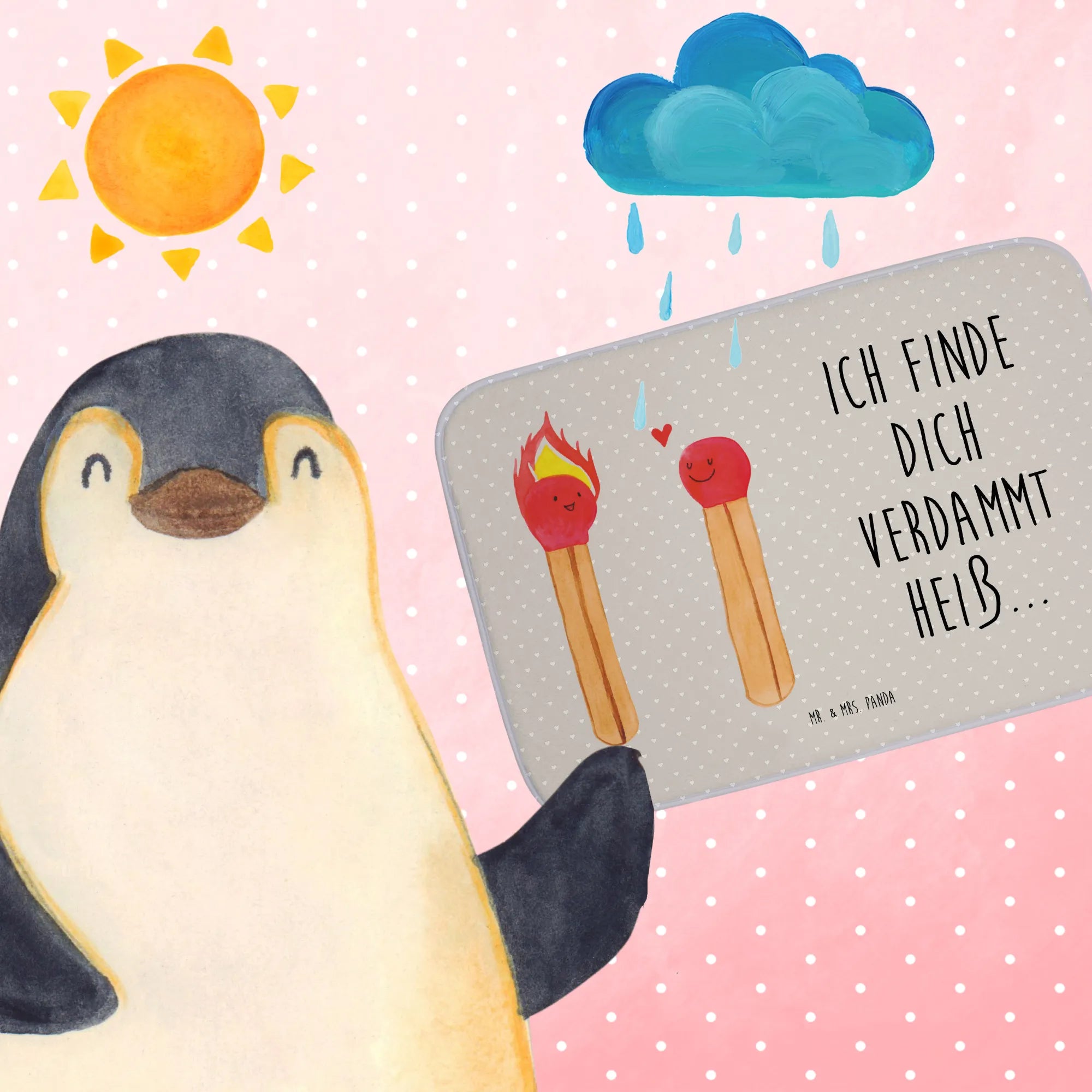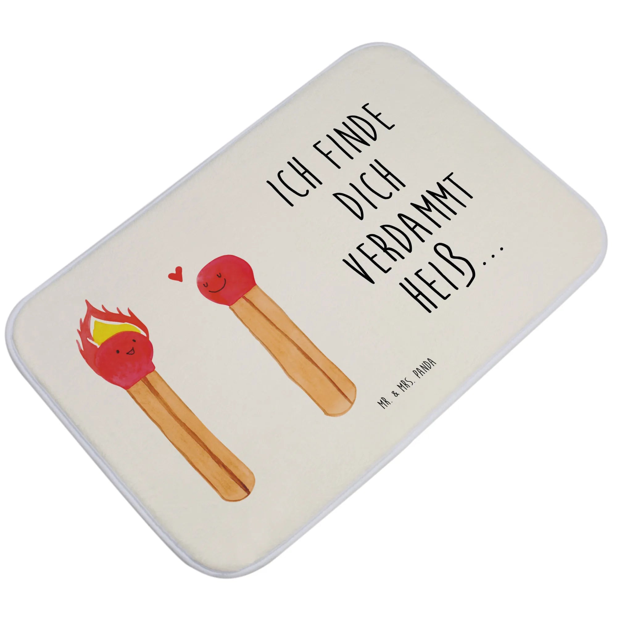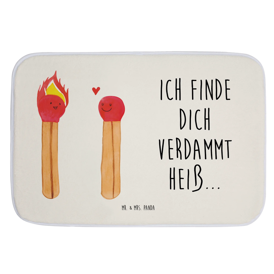 Der wunderschöne Badvorleger von Mr. & Mrs. Panda ist das perfekte Geschenk für Verliebte und all jene, die ihr Badezimmer mit einer Prise Liebe und Humor aufpeppen möchten. Dieser kuschelige Badezimmerteppich ist nicht nur ein echter Blickfang, sondern sorgt auch für eine angenehme Atmosphäre in deinem Badezimmer. Mit dem süßen Motiv von zwei anthropomorphisierten Streichhölzern, die durch ein Herz verbunden sind, strahlt der Badvorleger pure Lebensfreude aus. Der linke Streichholz hat einen brennenden, roten Kopf, während das rechte fröhlich lächelt. Die Worte 'Ich finde dich verdammt heiß...' bringen ein Lächeln auf jedes Gesicht und sind ideal als Liebesgeschenk für deinen Partner oder deine Partnerin.