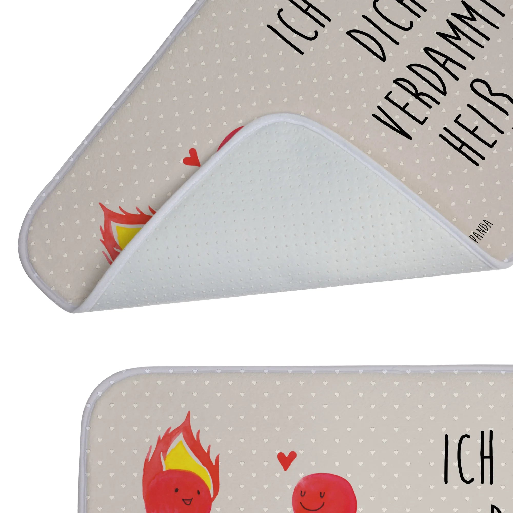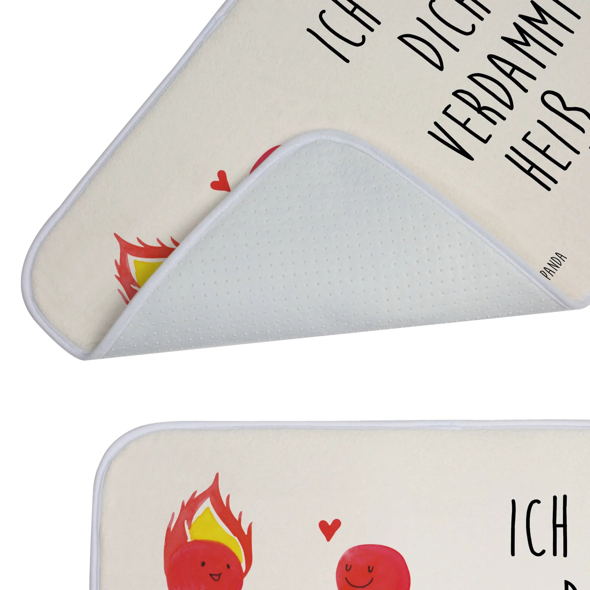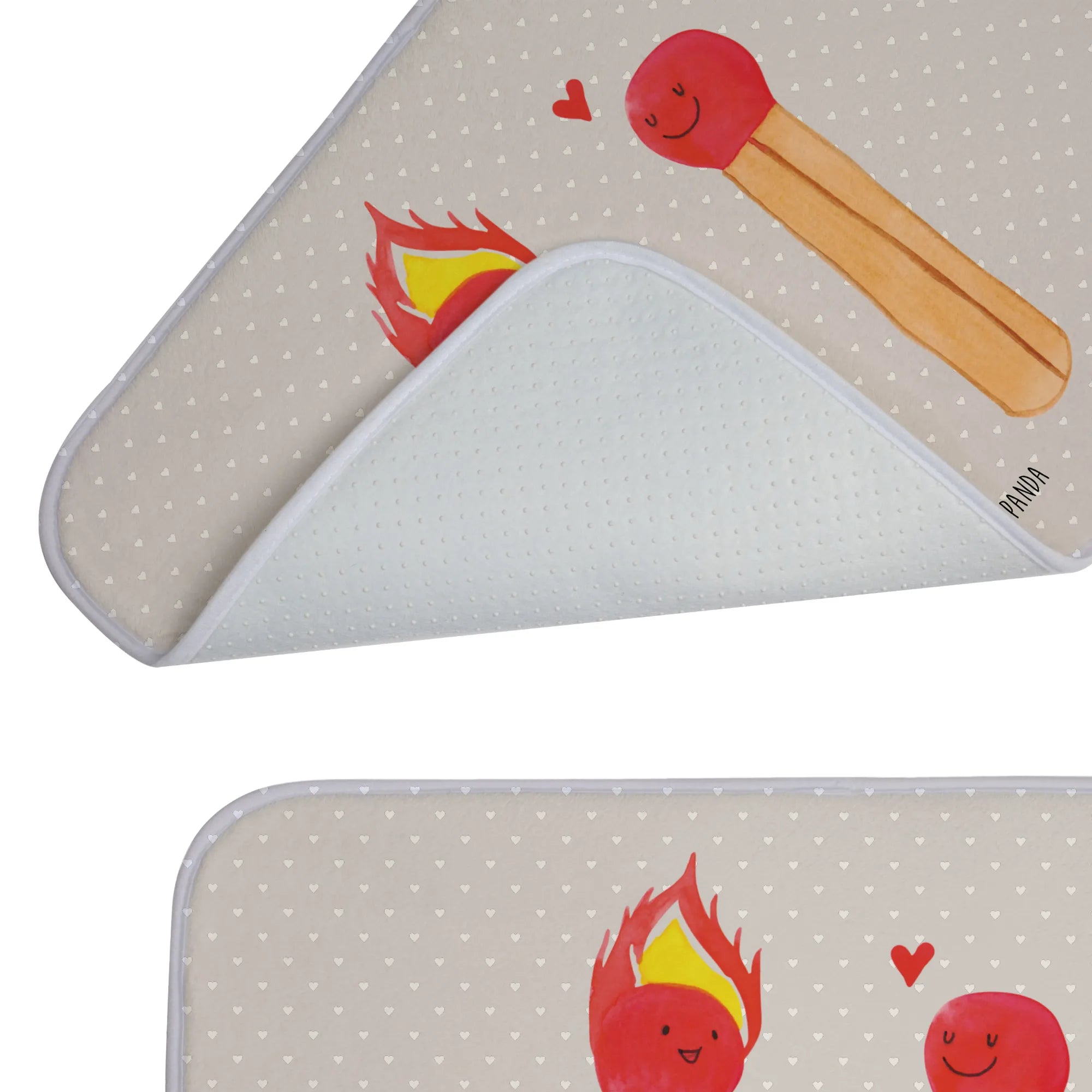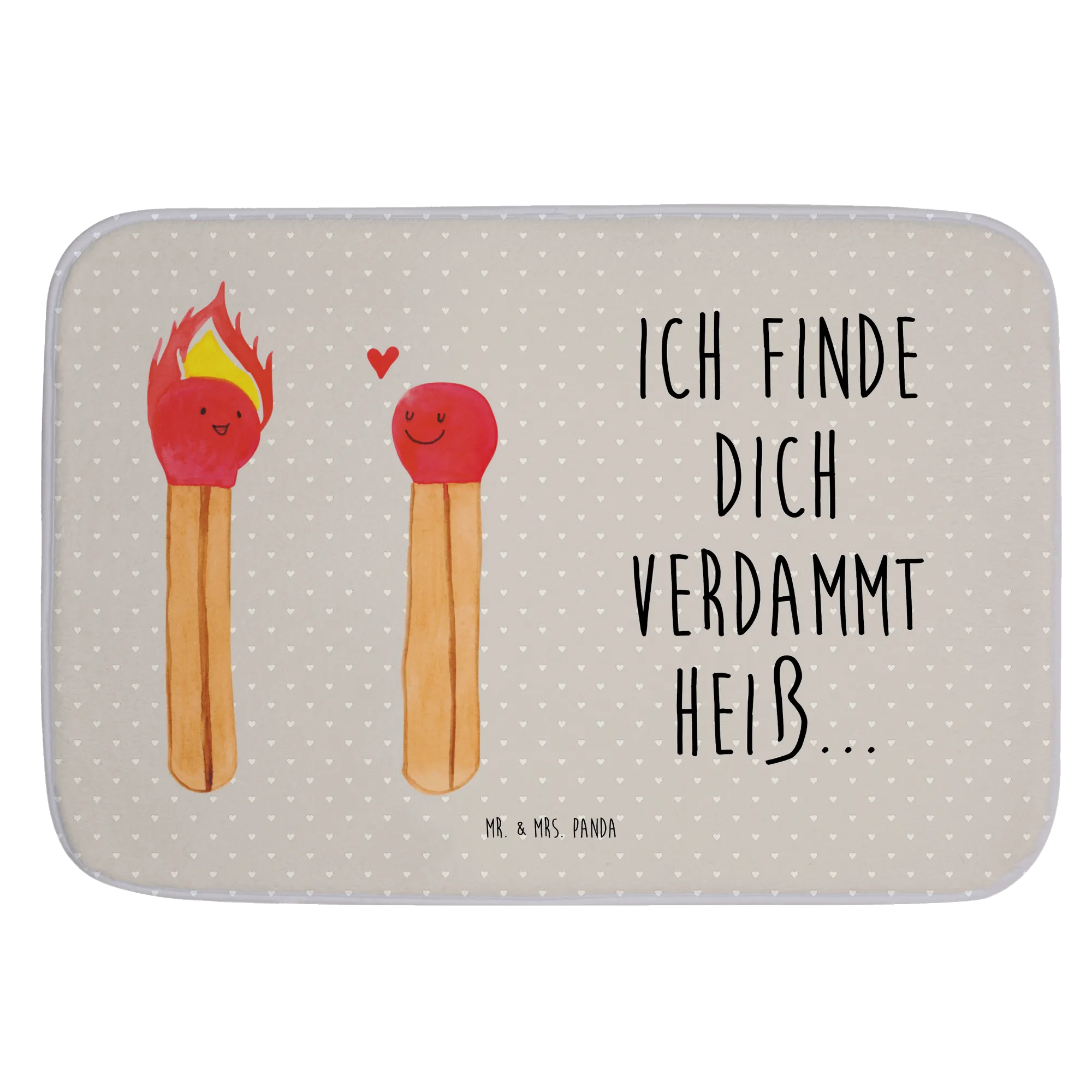 Der wunderschöne Badvorleger von Mr. & Mrs. Panda ist das perfekte Geschenk für Verliebte und all jene, die ihr Badezimmer mit einer Prise Liebe und Humor aufpeppen möchten. Dieser kuschelige Badezimmerteppich ist nicht nur ein echter Blickfang, sondern sorgt auch für eine angenehme Atmosphäre in deinem Badezimmer. Mit dem süßen Motiv von zwei anthropomorphisierten Streichhölzern, die durch ein Herz verbunden sind, strahlt der Badvorleger pure Lebensfreude aus. Der linke Streichholz hat einen brennenden, roten Kopf, während das rechte fröhlich lächelt. Die Worte 'Ich finde dich verdammt heiß...' bringen ein Lächeln auf jedes Gesicht und sind ideal als Liebesgeschenk für deinen Partner oder deine Partnerin.