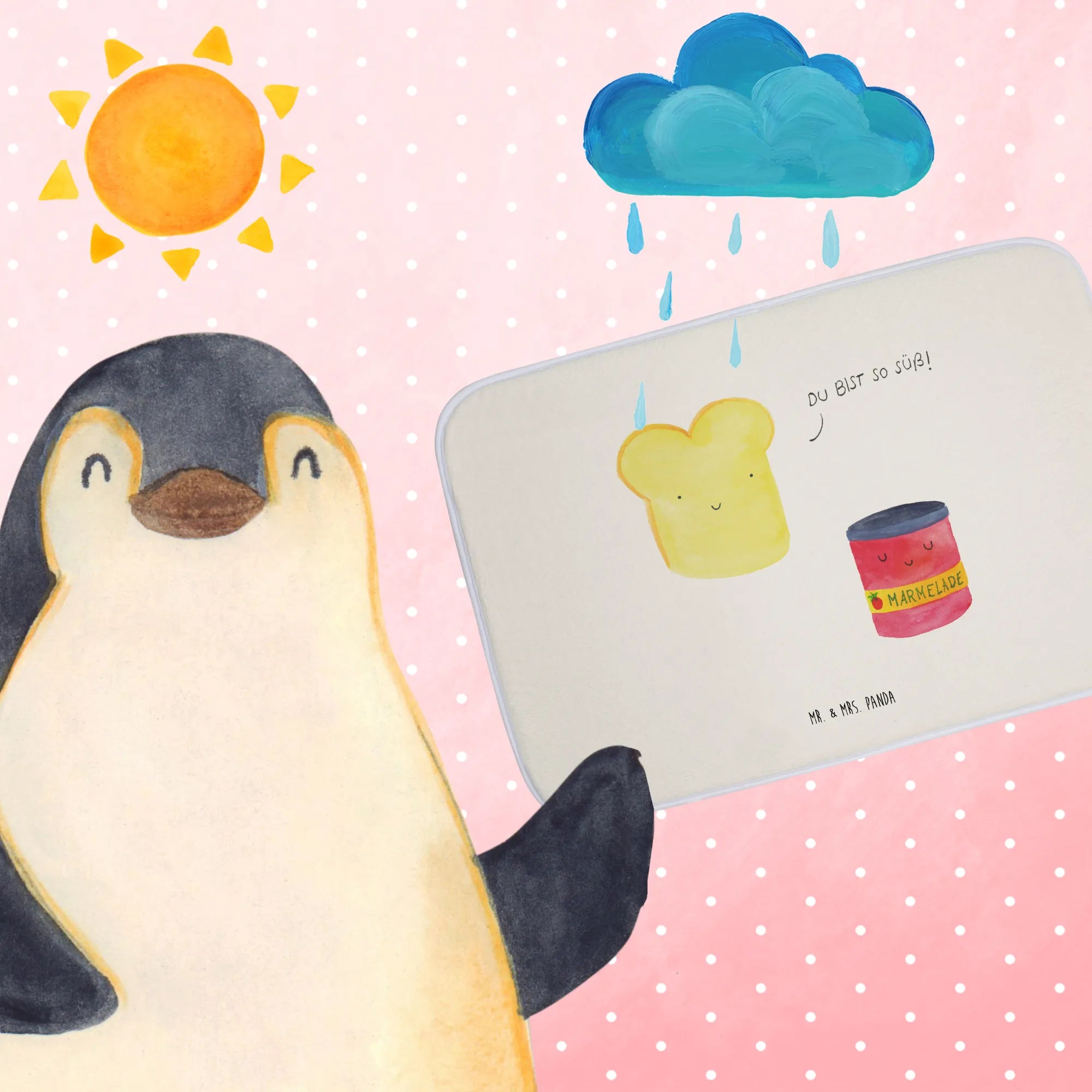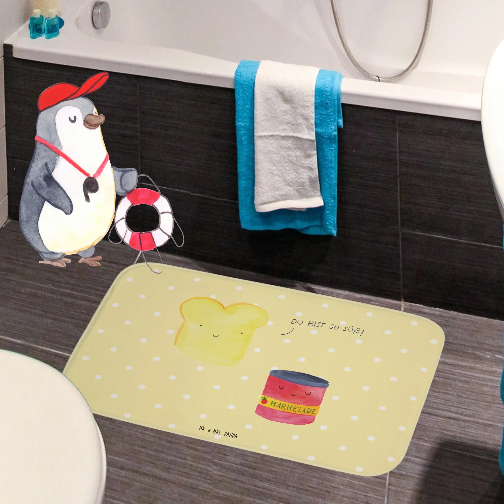 Der Badvorleger Toast & Marmelade von Mr. & Mrs. Panda ist der perfekte Begleiter für dein Badezimmer. Mit dem liebevoll gestalteten Motiv von einem süßen Toast und einer fruchtigen Marmelade bringt er nicht nur gute Laune, sondern sorgt auch dafür, dass du beim Aussteigen aus der Dusche oder Badewanne nicht ausrutschst.