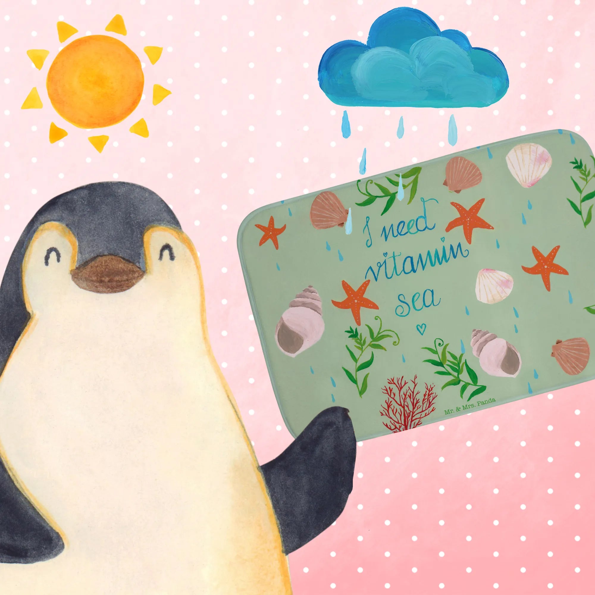 Ein wunderschöner Badvorleger von Mr. & Mrs. Panda, bedruckt mit dem motivierenden Spruch "I need vitamin sea!". Dieser Badvorleger ist perfekt für alle, die die Freiheit und das Gefühl von Meeresbrise lieben.