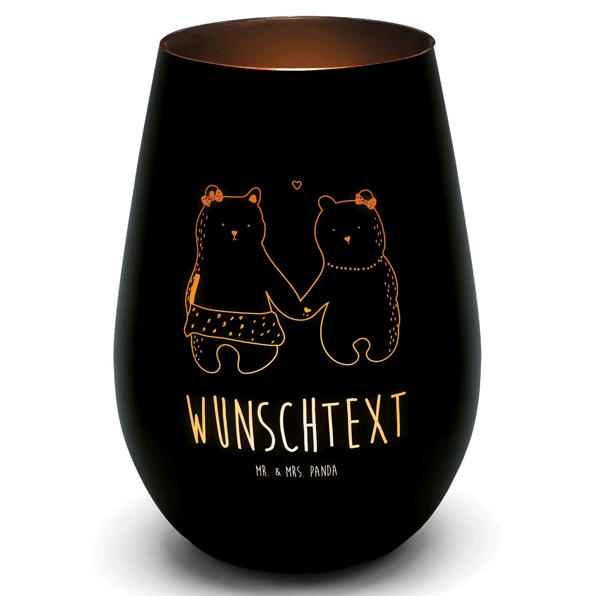 Gold Windlicht Personalisiert Bär Freundin - Schwarz