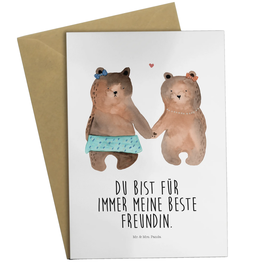 Die Grußkarte "Bär Freundin" von Mr. & Mrs. Panda ist das perfekte Geschenk für all deine Freunde und Freundinnen, die du wertschätzen möchtest. Diese liebevoll gestaltete Karte zeigt zwei süße Bärenmädchen, die Hand in Hand stehen. Sie ist nicht nur eine Karte, sondern ein echter Liebesbeweis für Freundschaft!