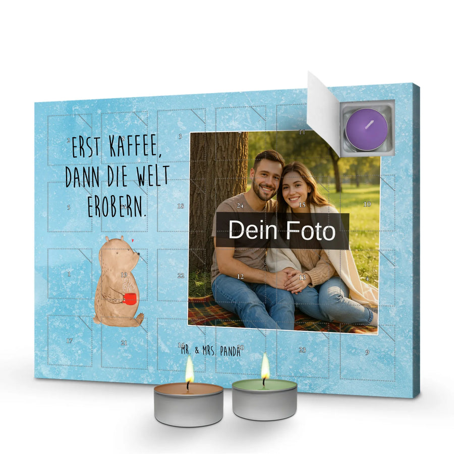 Personalisierter Duftkerzen Foto Adventskalender Bär Kaffee - Eisblau