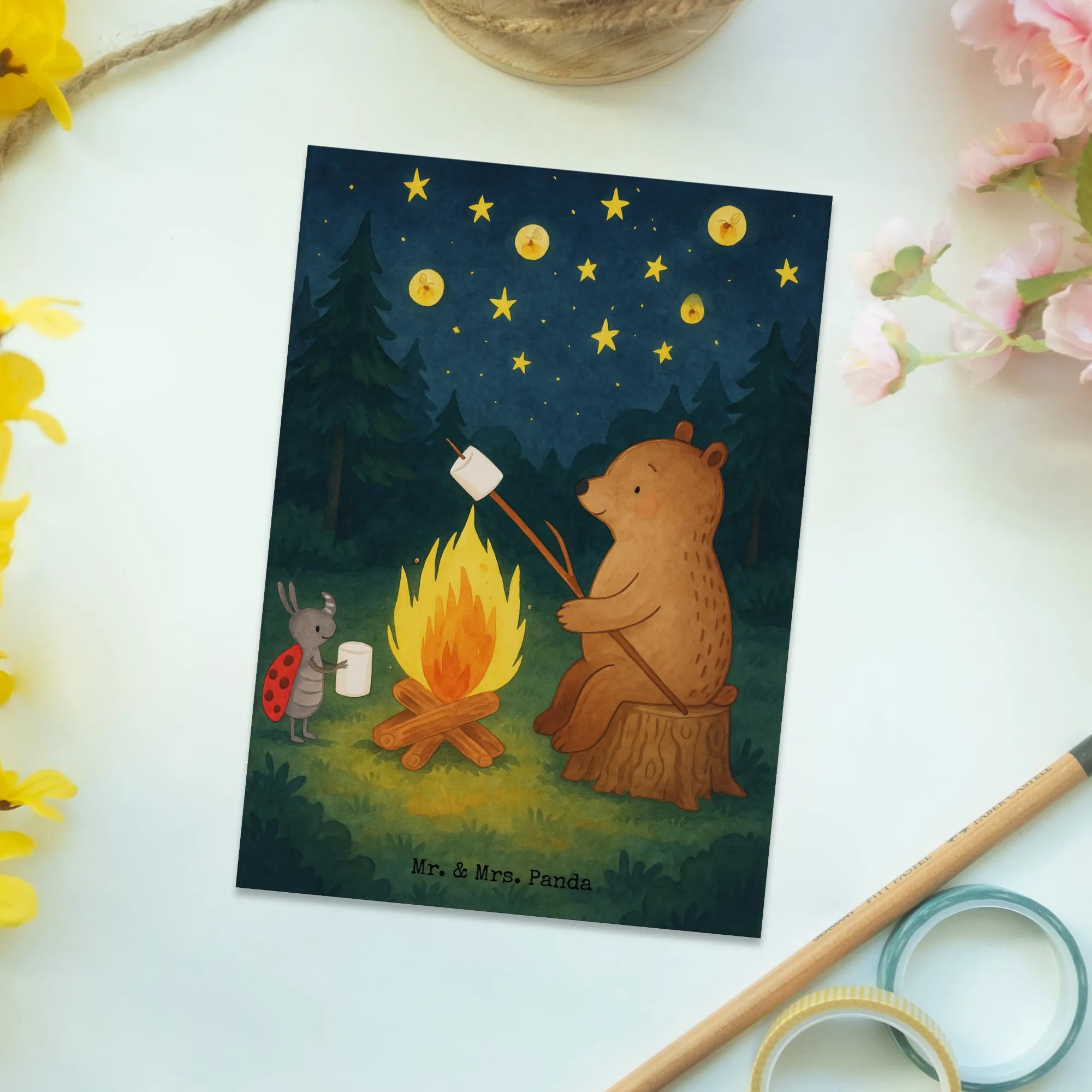 Postkarte Bär & Marienkäfer Lagerfeuer Design