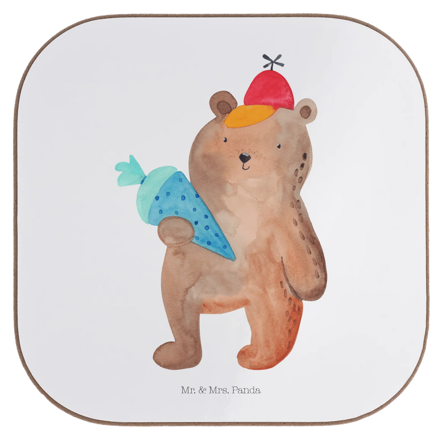 Quadratische Untersetzer Bär mit Schultüte - ohne Spruch - Weiß