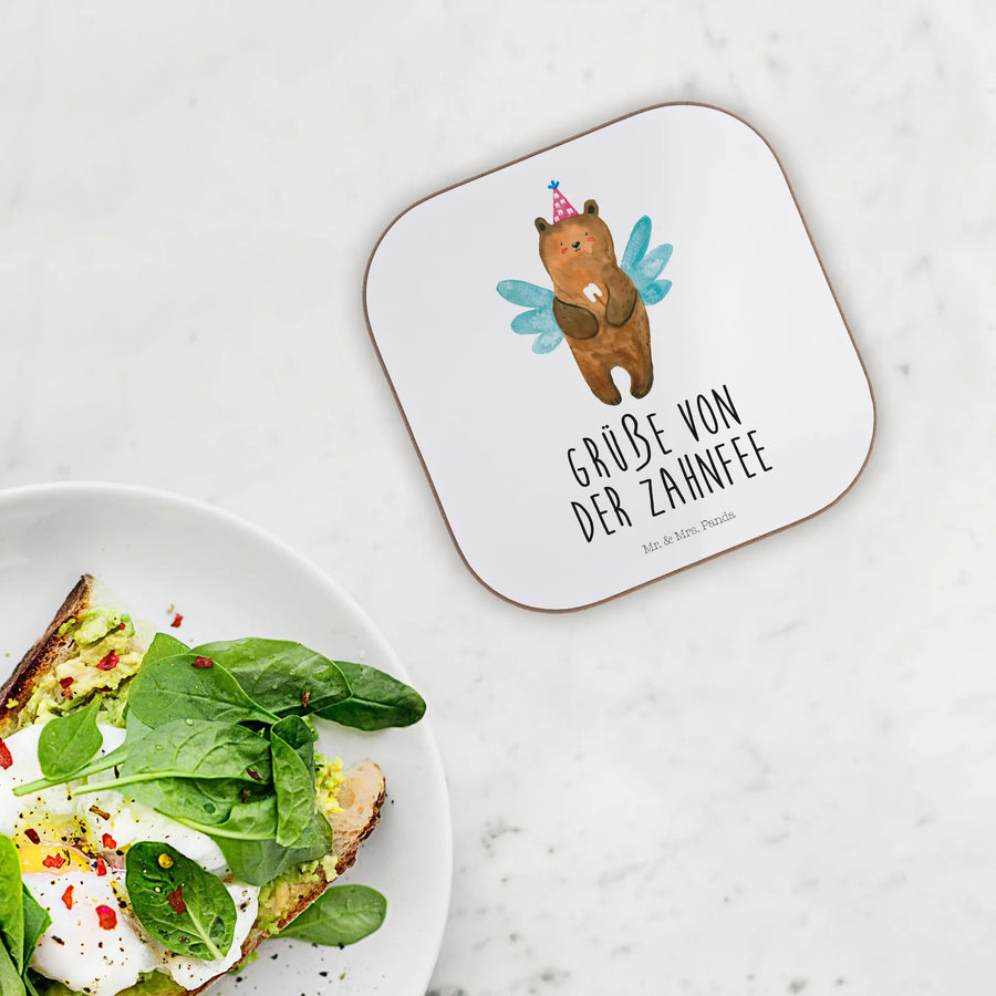 Entdecke den süßesten Untersetzer aus der Mr. & Mrs. Panda Kollektion! Der Untersetzer Zahnfee Bär ist das perfekte Geschenk für jeden kleinen Fan der Zahnfee. Mit seinem entzückenden Design und dem liebevollen Slogan "Grüße von der Zahnfee" wird dieser quadratische Untersetzer aus hochwertiger Hartfaser zum absoluten Highlight auf jedem Tisch.