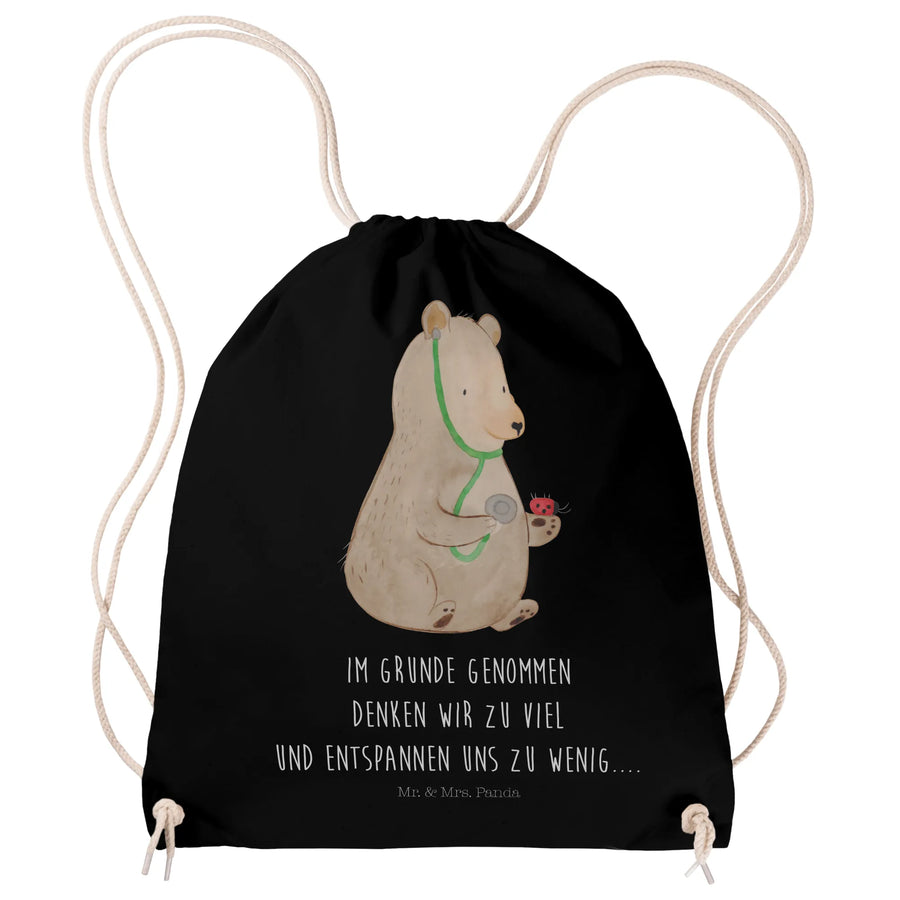 Sportbeutel Bär Arzt - mit Spruch - Schwarz