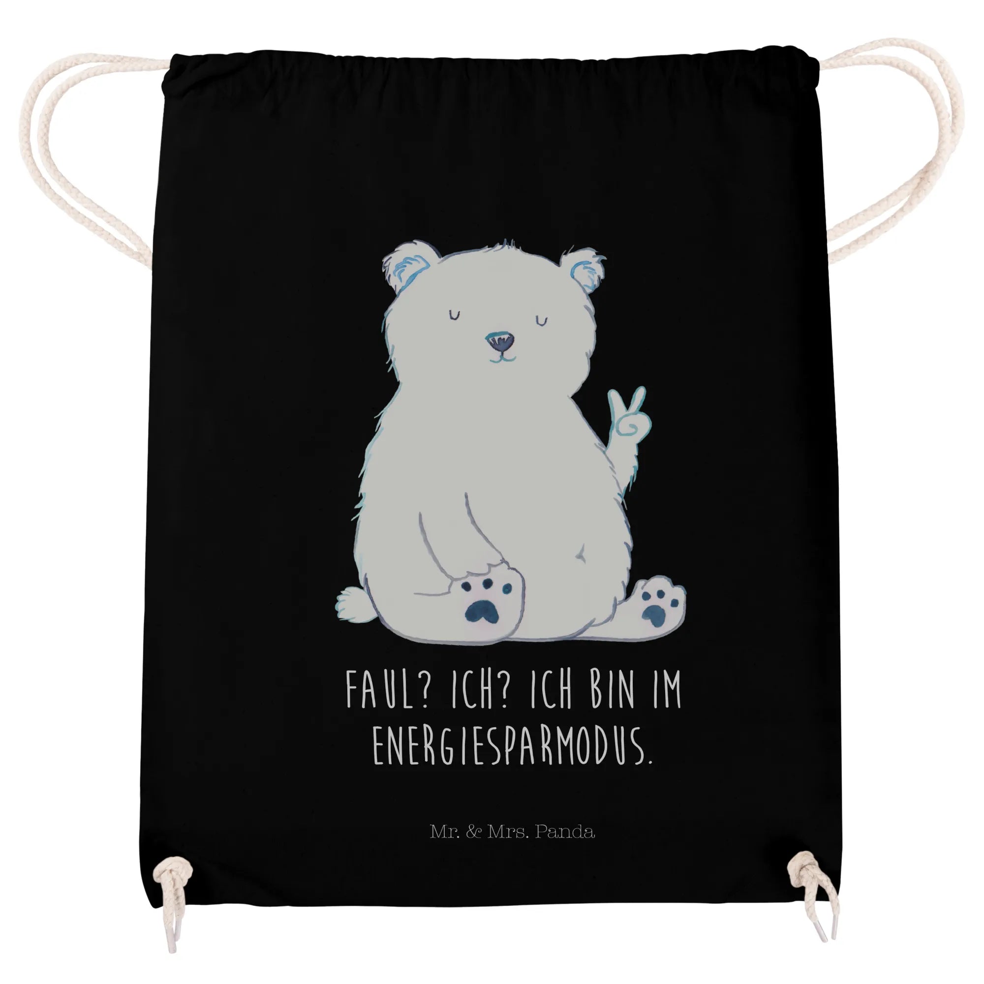 Mr. & Mrs. Panda Sportbeutel „Eisbär Faul“ – der perfekte Mix aus Kuschelfaktor und Alltagsheld. Der süße Eisbär zeigt das Peace-Zeichen und der freche Spruch „Faul? Ich? Ich bin im Energiesparmodus.“ bringt sofort ein Lächeln aufs Gesicht. Ideal als Sportbeutel, Turnbeutel oder Gymbag für Kinder, Jugendliche und Erwachsene. 🐻❄️