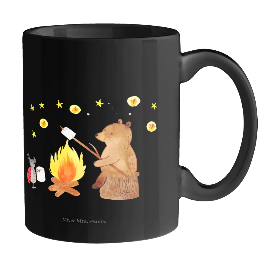 Tasse Bär & Marienkäfer Lagerfeuer - ohne Spruch - Keramik Schwarz - Schwarz