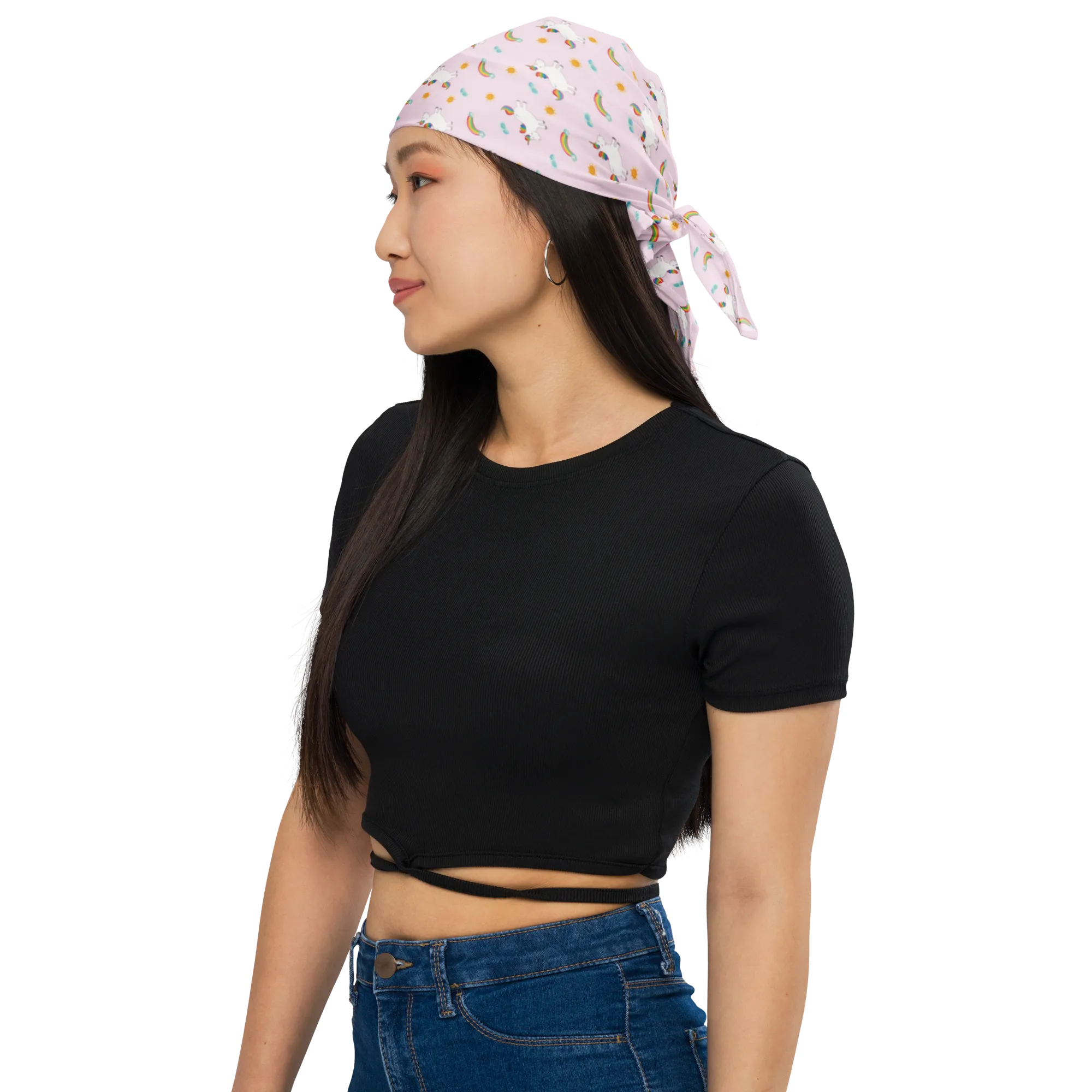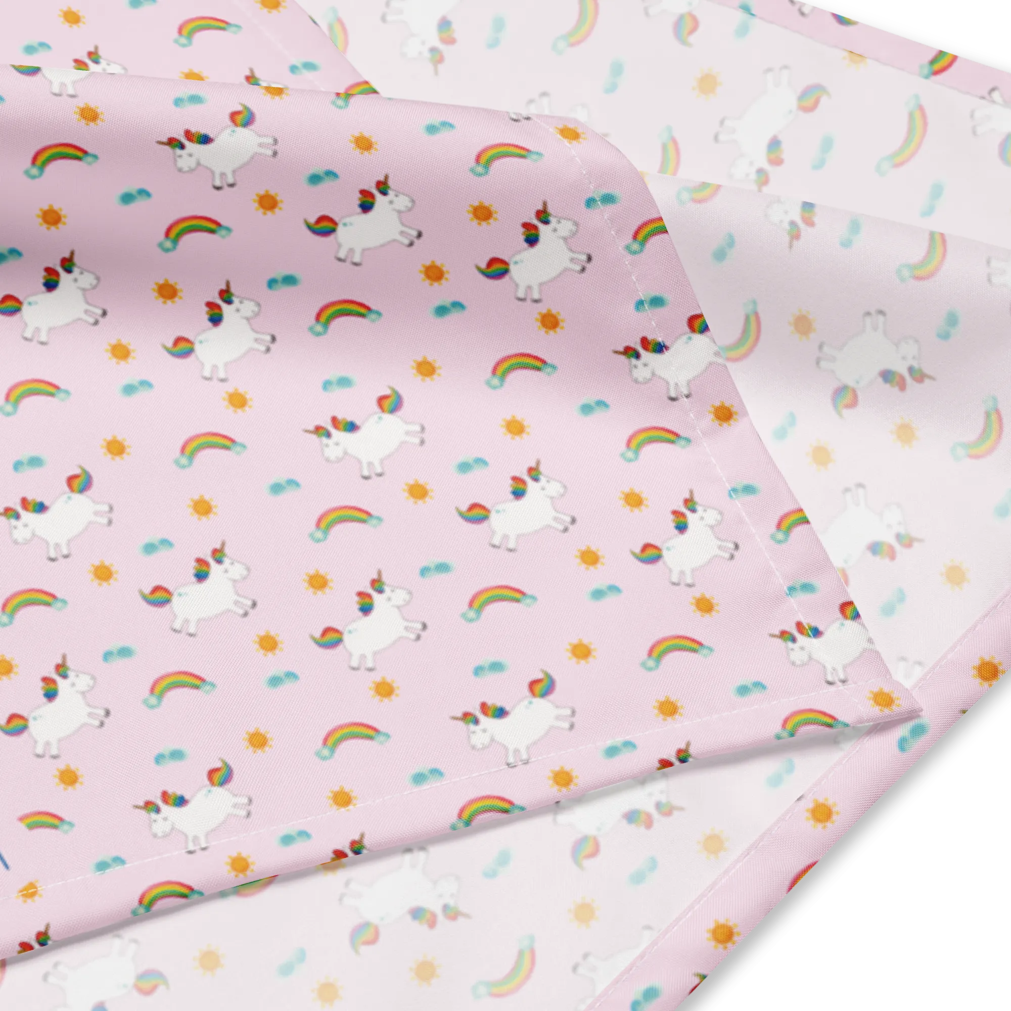 Der farbenfrohe Druck des süßen Einhorns mit Regenbogen-Mähne versprüht eine unbändige Lebensfreude. Egal, ob du dich selbst verwöhnen oder jemandem eine Freude bereiten möchtest, dieses Bandana ist immer die richtige Wahl.
