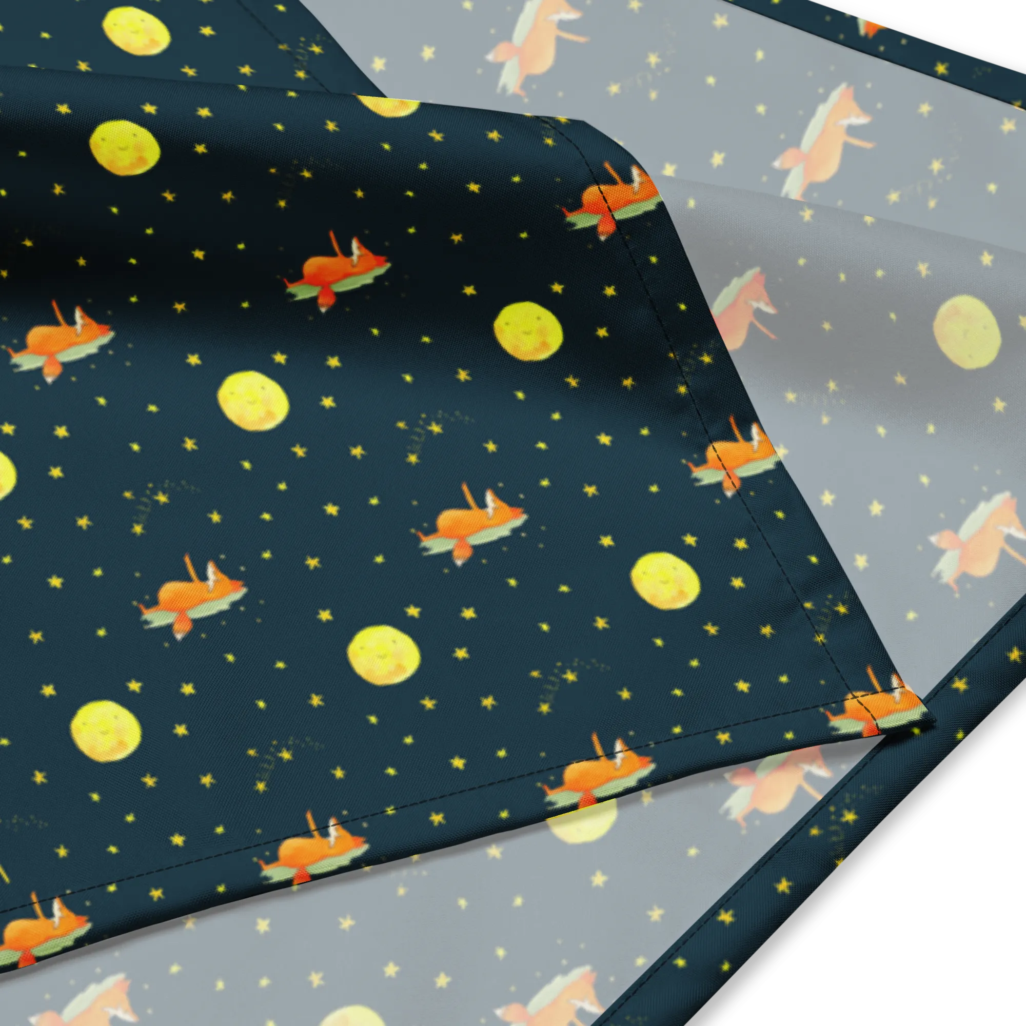 Verleihe deinem Outfit mit diesem einzigartigen Stück aus der Fuchs Kollektion den letzten Schliff! Dieses Bandana eignet sich natürlich perfekt als Geschenk für Freunde und Familie, die die Natur und die Tierwelt lieben. Es ist auch das ideale Geschenk für Kinder, die von den Abenteuern des kleinen Fuchses in der Nacht begeistert sein werden.