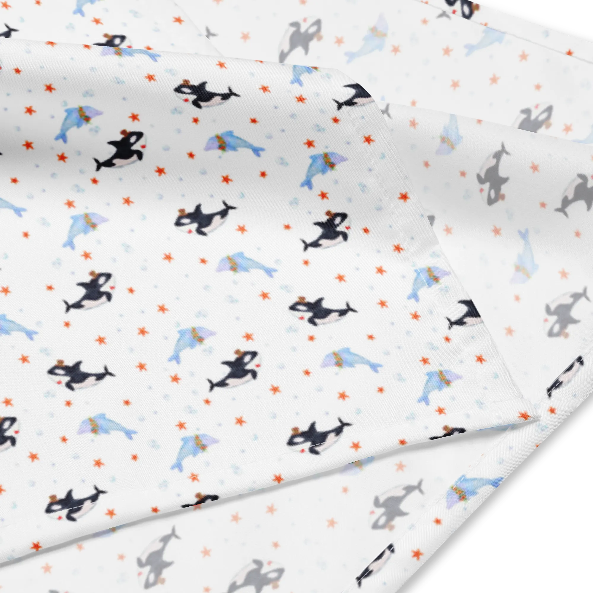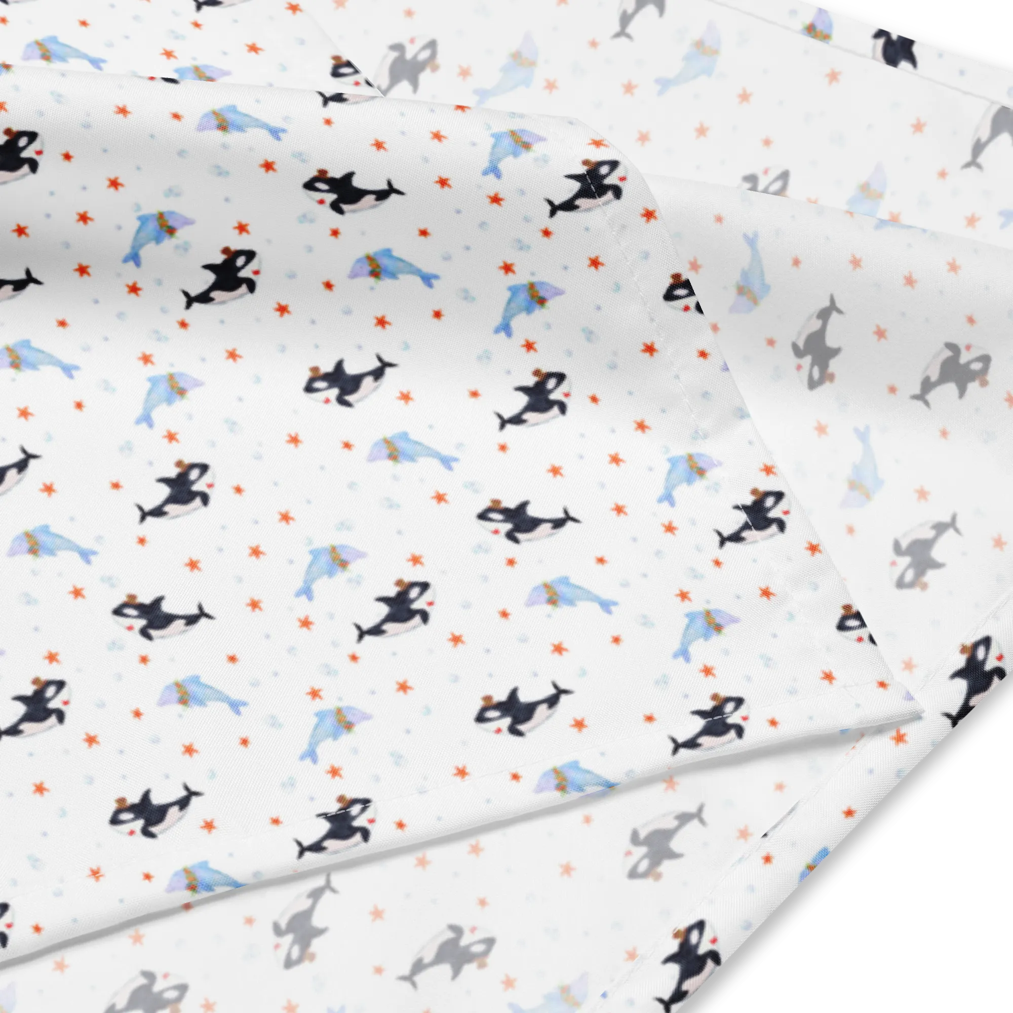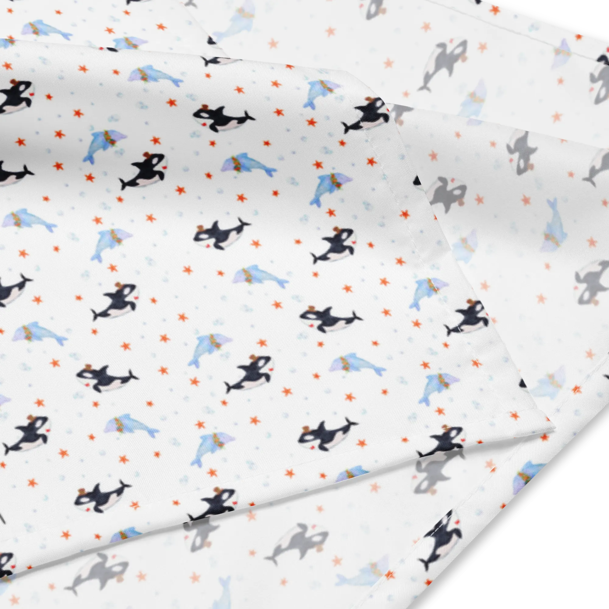 Die Maße von 540 mm x 540 mm machen es vielseitig einsetzbar – ob als Stirnband, Halstuch oder modisches Accessoire. Dieses tierische Design ist perfekt für Tierliebhaber und Fans der Unterwasserwelt. Besonders zu Geburtstagsfeiern, Festen oder als Glückwunsch-Geschenk wird dieses Bandana zum Highlight.