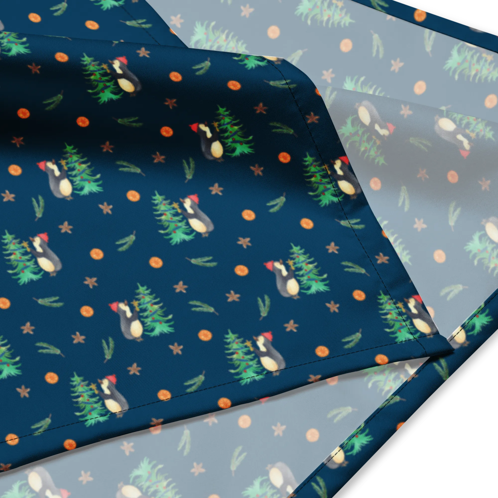 \nMit einem zauberhaften Design, das von Mrs. Panda liebevoll handgezeichnet wurde, bringt es die fröhliche Weihnachtsatmosphäre direkt zu dir. Der niedliche Pinguin schmückt einen festlichen Weihnachtsbaum und wird sicherlich ein Lächeln auf die Gesichter deiner Freunde und Familie zaubern. Besonders für die besinnliche Adventszeit und Heiligabend ist dieses Bandana ein ideales Geschenk, das Freude und Wärme verspricht.