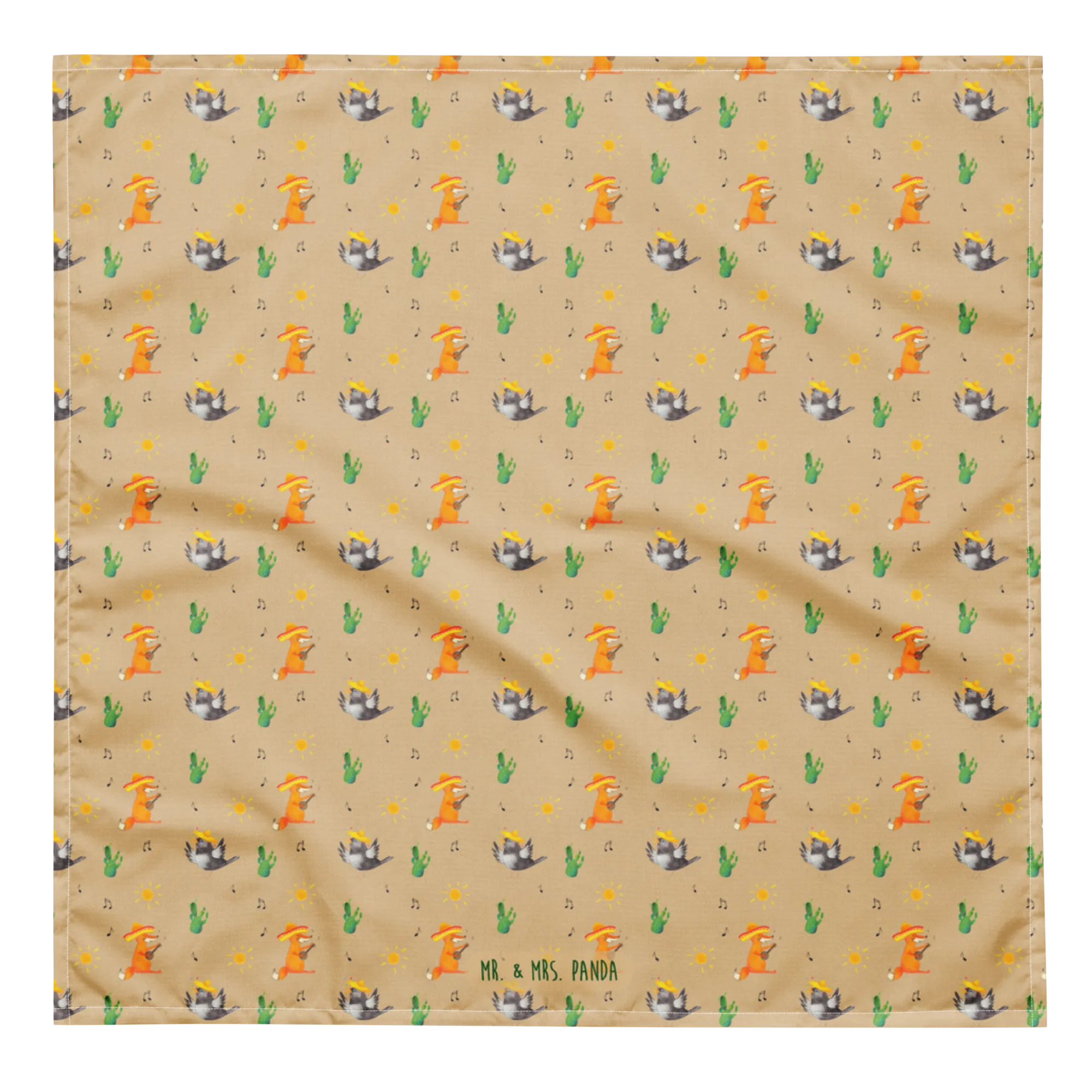 Das wunderschöne Bandana mit dem fröhlichen Raben im Sombrero aus der Small World Kollektion von Mr. & Mrs. Panda ist das perfekte Accessoire für jeden, der gute Laune verbreiten möchte. Immer wenn du dieses farbenfrohe Halstuch trägst, wird das Leben ein Stück weit heller! Der putzige Rabe, der fröhlich mit seinem Sombrero tanzt, zaubert sicher jedem ein Lächeln ins Gesicht. Mit dem Slogan 'Ich habe heute nichts zu tun, außer fröhlich zu sein', motivierst du nicht nur dich selbst, sondern auch all jene Menschen um dich herum.
