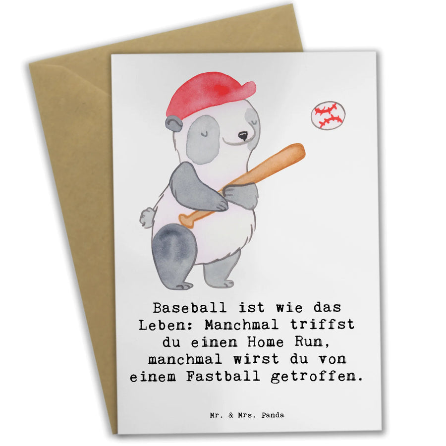 Die Grußkarte Baseball von Mr. & Mrs. Panda ist das perfekte Geschenk für Sportenthusiasten und Baseball-Fans. Mit einem liebevoll designten Motiv und dem inspirierenden Spruch: "Baseball ist wie das Leben: Manchmal triffst du einen Home Run, manchmal wirst du von einem Fastball getroffen." bringt diese Klappkarte Freude in jede Gelegenheit.