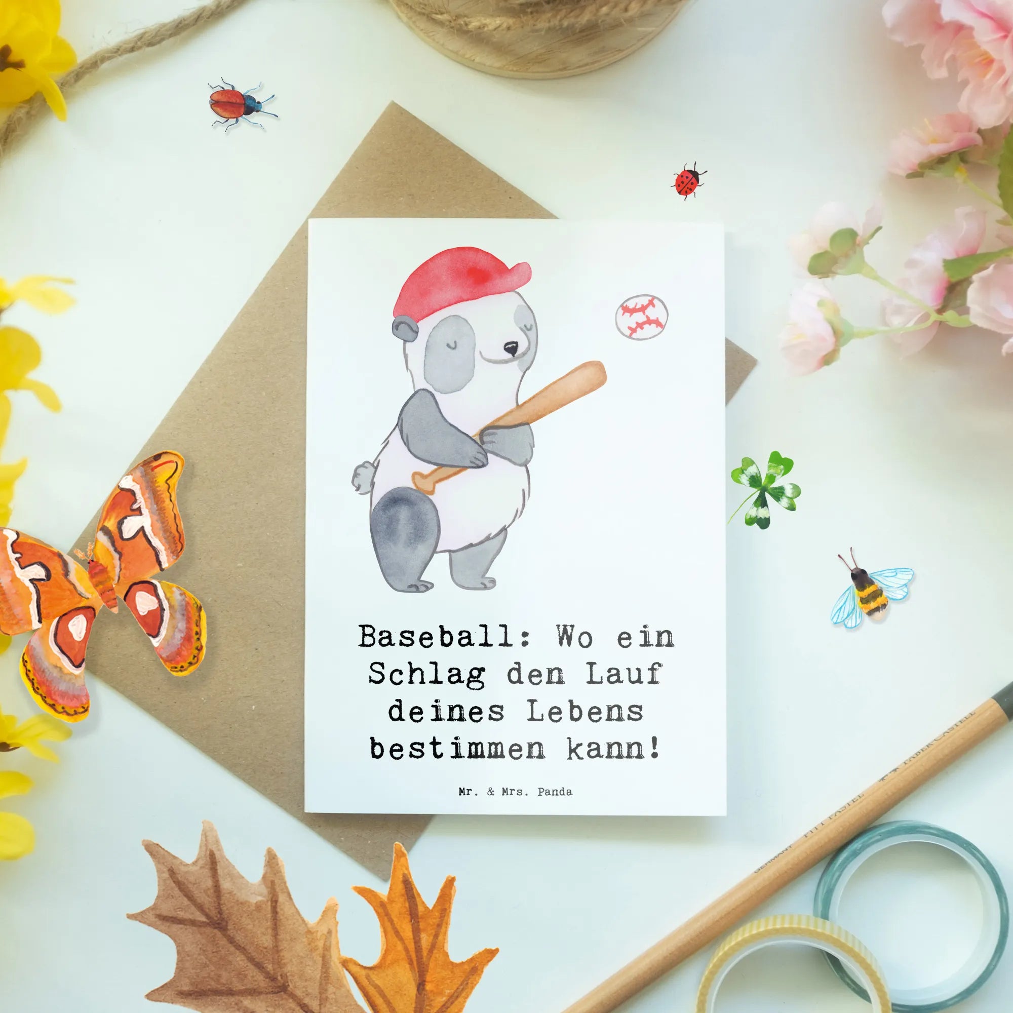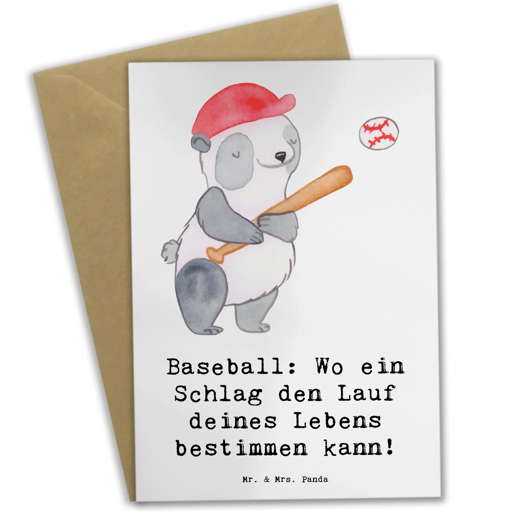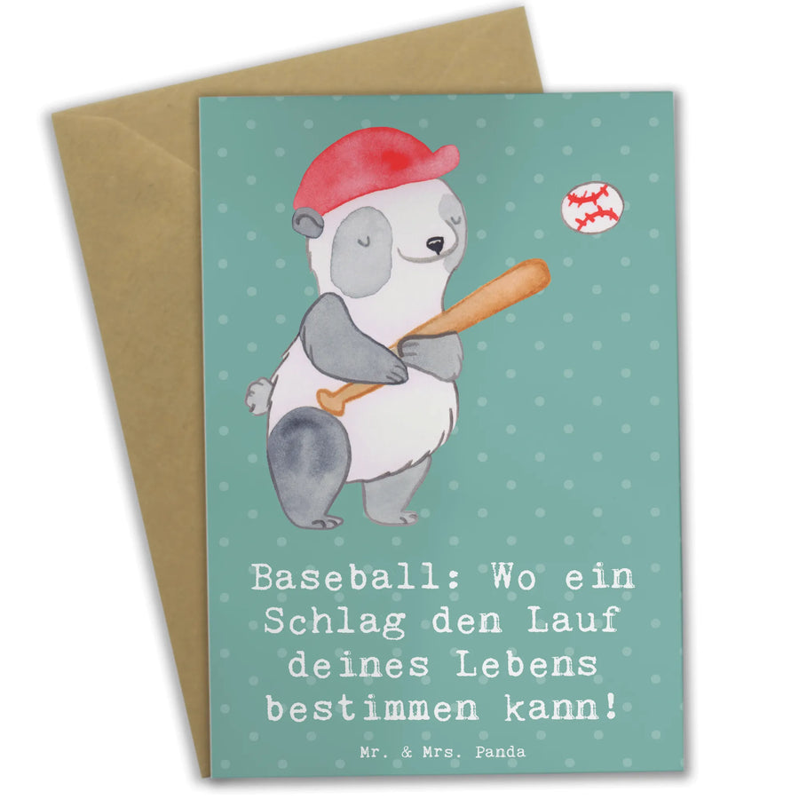 Entdecke die zauberhafte Grußkarte von Mr. & Mrs. Panda, die perfekt für Sportliebhaber und alle Baseball-Fans ist! Diese wunderschöne und einzigartige Grußkarte mit dem Spruch „Baseball: Wo ein Schlag den Lauf deines Lebens bestimmen kann!“ bringt die Begeisterung für das Spiel direkt zu dir nach Hause.
