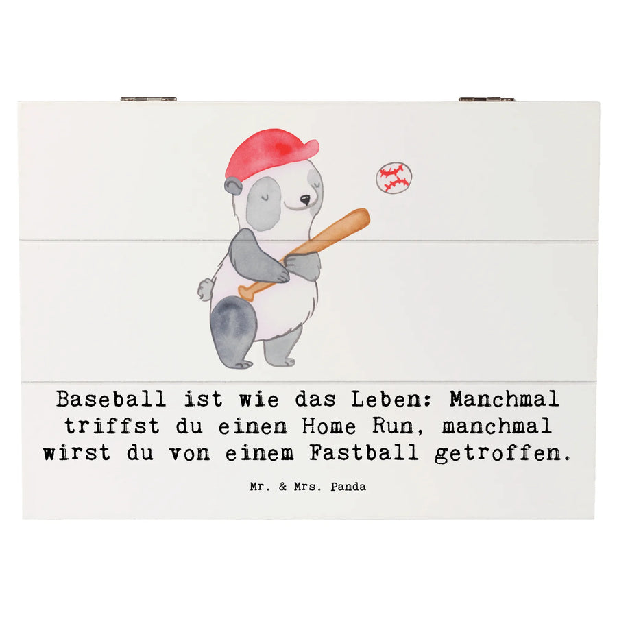 Die wunderschöne Holzkiste von Mr. & Mrs. Panda ist der perfekte Begleiter für alle Baseball-Liebhaber und sportbegeisterten Menschen! Mit dem liebevoll gestalteten Motiv, das den Spruch "Baseball ist wie das Leben: Manchmal triffst du einen Home Run, manchmal wirst du von einem Fastball getroffen." beinhaltet, bringt diese Kiste die Leidenschaft für den Sport direkt in dein Zuhause.