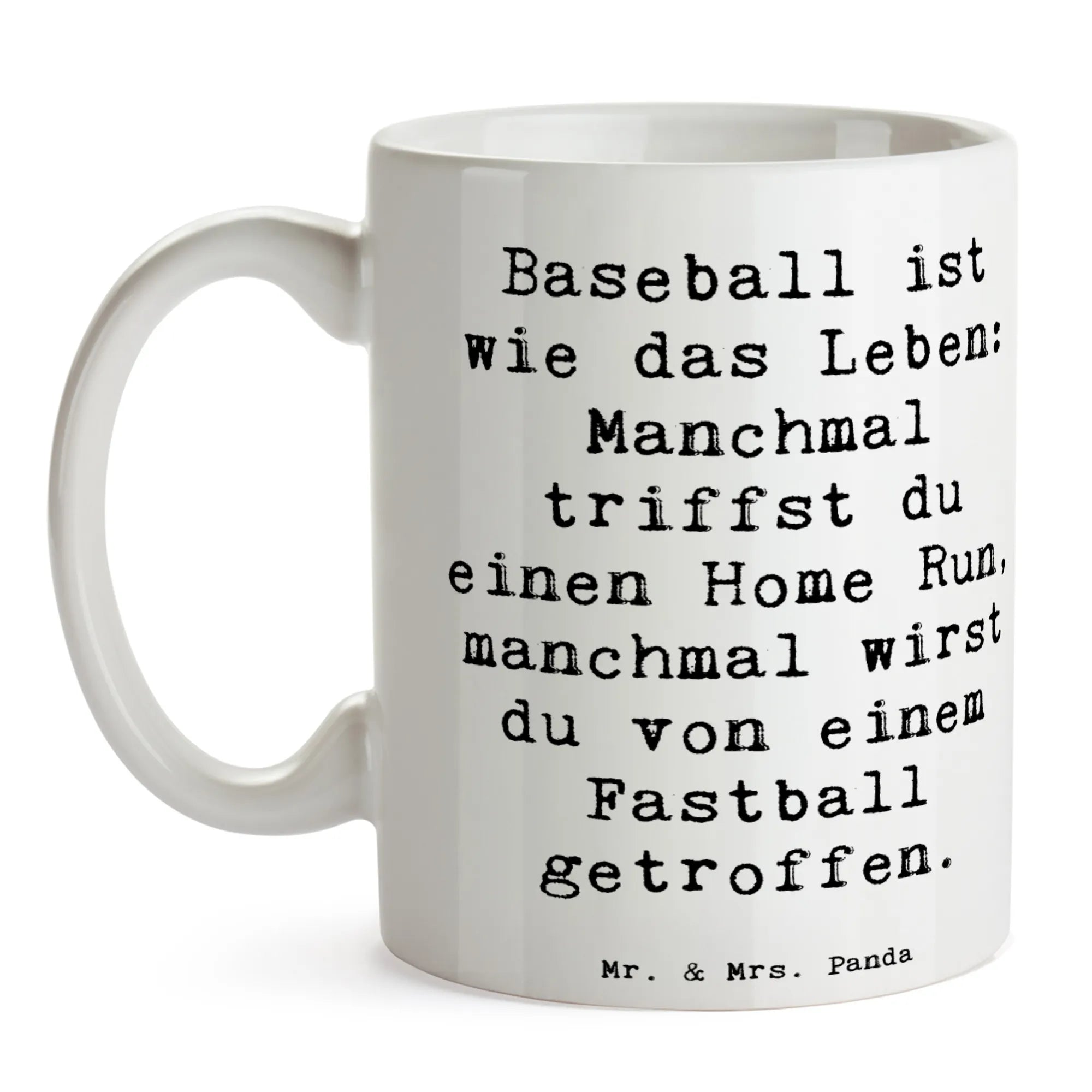 Baseball ist wie das Leben: Man hat gute Tage, an denen man einen Home Run erzielt, und dann gibt es die weniger guten Tage, an denen man von einem schnellen Wurf getroffen wird. Es erinnert uns daran, dass das Leben Höhen und Tiefen hat, aber mit jedem neuen Wurf gibt es eine neue Chance, den Ball zu treffen.