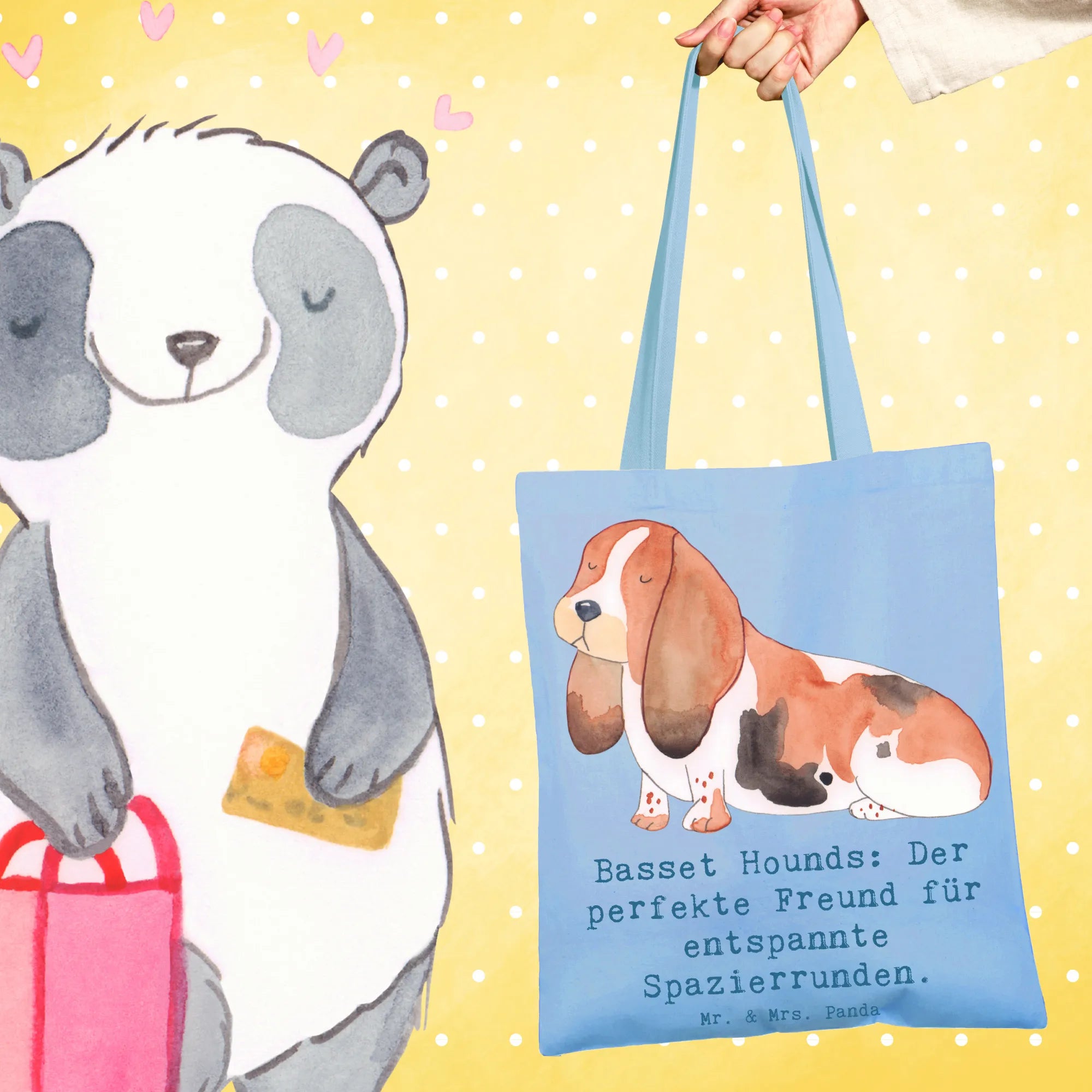 Egal, ob für die eigene Nutzung oder als durchdachtes Geschenk – die Tragetasche mit Basset Hound Motiv wird begeistern! Mach Deinem Lieblings-Hundefreund eine Freude oder gönn Dir selbst dieses liebevolle Stück von Mr. & Mrs. Panda.