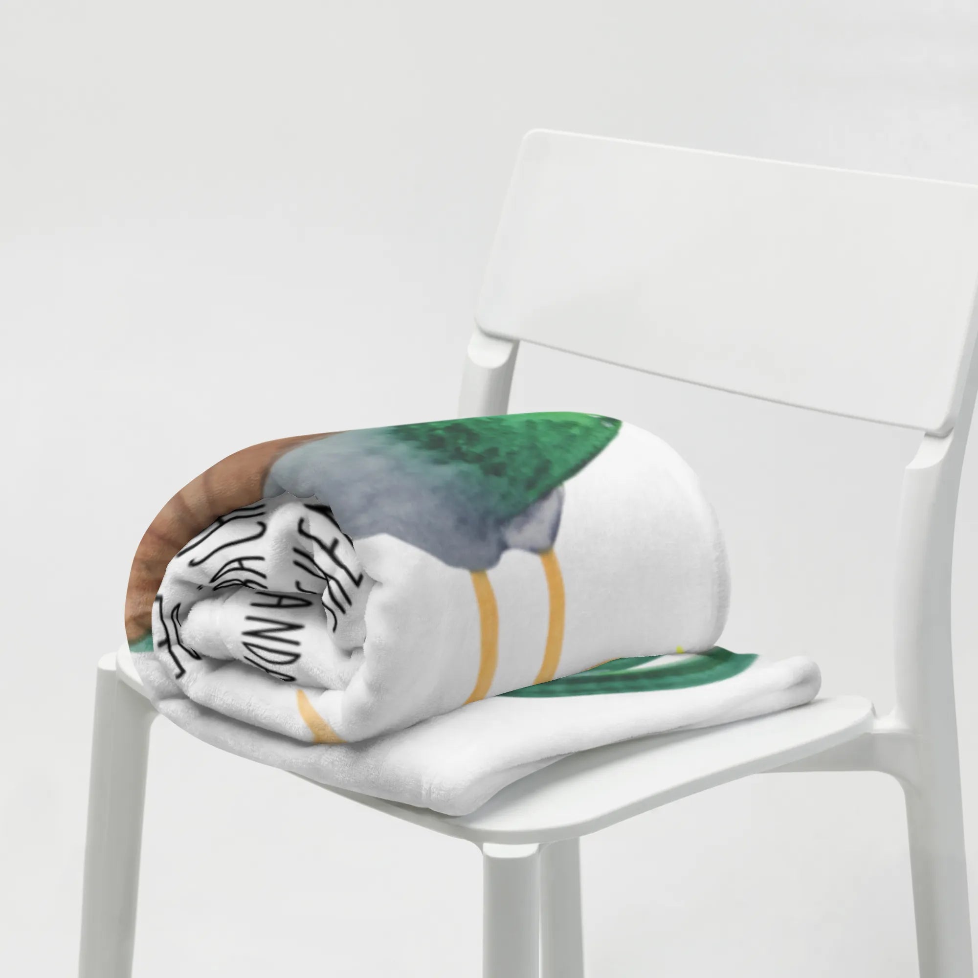 Kuscheldecke Hahn mit Korn - mit Spruch - Weiß