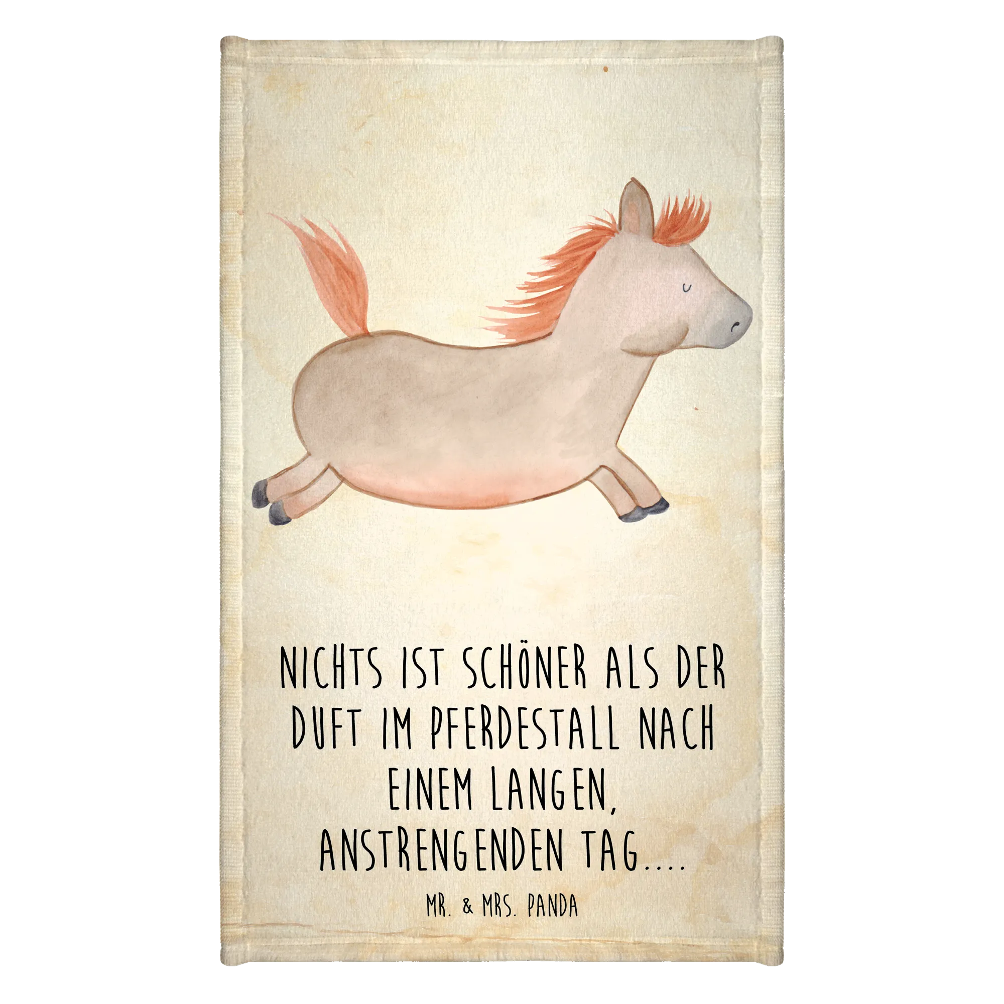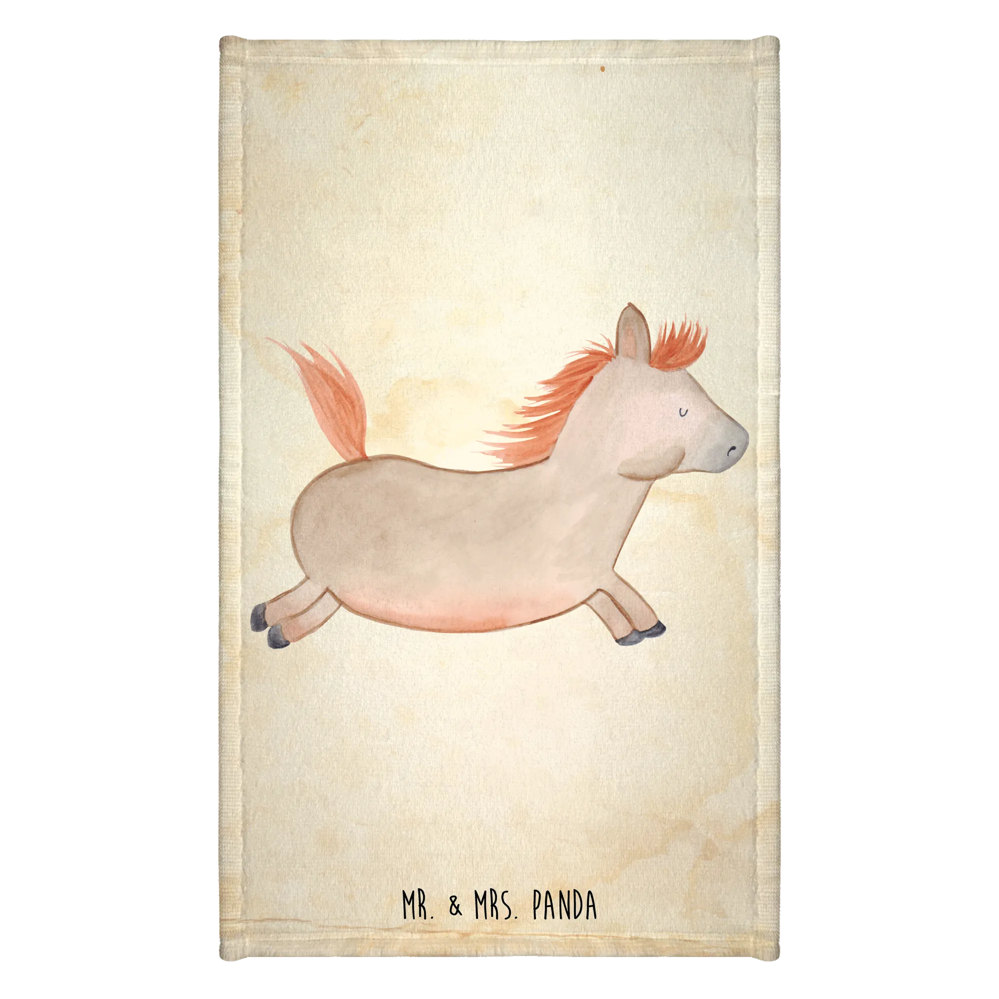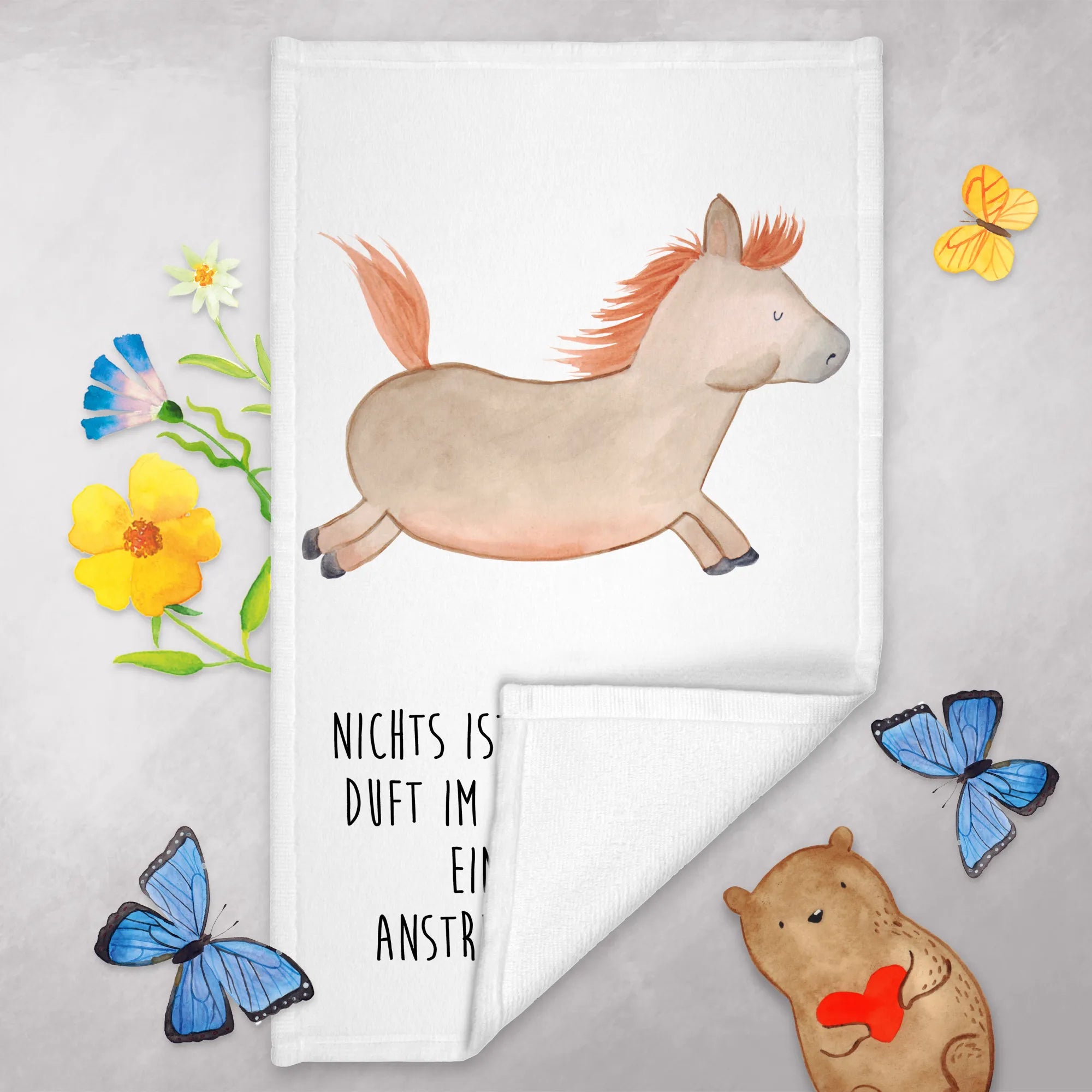 Das perfekte Gästehandtuch mit dem süßen Motiv "Pferd springt" aus der niedlichen Bauernhof-Kollektion von Mr. & Mrs. Panda ist der ideale Begleiter für alle Pferdefreunde und Pferdebesitzer. Mit einer flauschigen Baumwollmischung sorgt dieses Handtuch nicht nur für eine angenehme Haptik, sondern bringt auch ein Stück Bauernhof-Idylle in dein Zuhause.