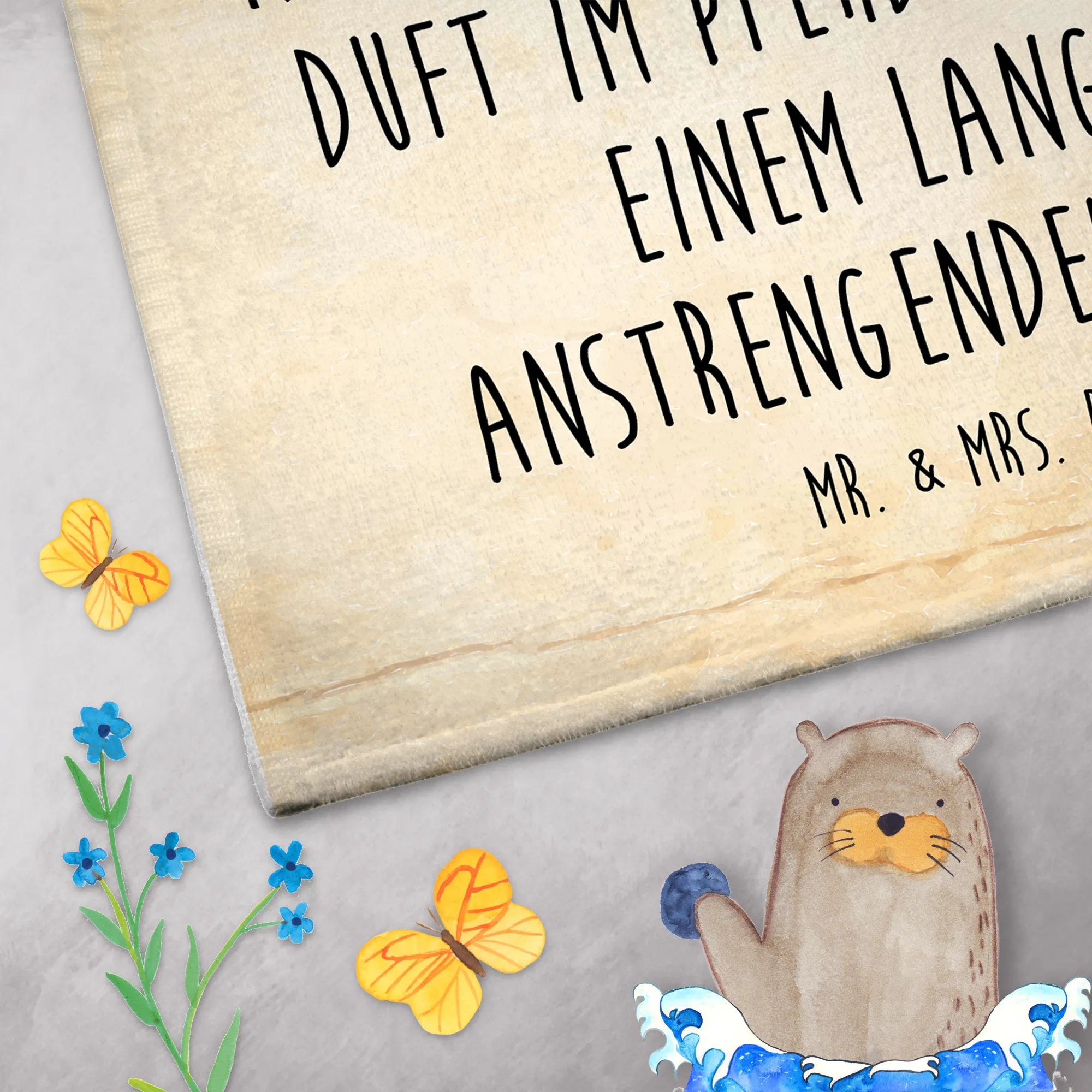 Der Spruch 'Nichts ist schöner als der Duft im Pferdestall nach einem langen, anstrengenden Tag...' spricht jedem Pferdebesitzer aus der Seele und bringt Erinnerungen an unvergessliche Tage in der Natur zurück. Egal ob für die eigene Nutzung oder als Geschenk zu Geburtstagen, zu einem besonderen Anlass oder einfach so – dieses Handtuch macht jedem Pferdefreund Freude.