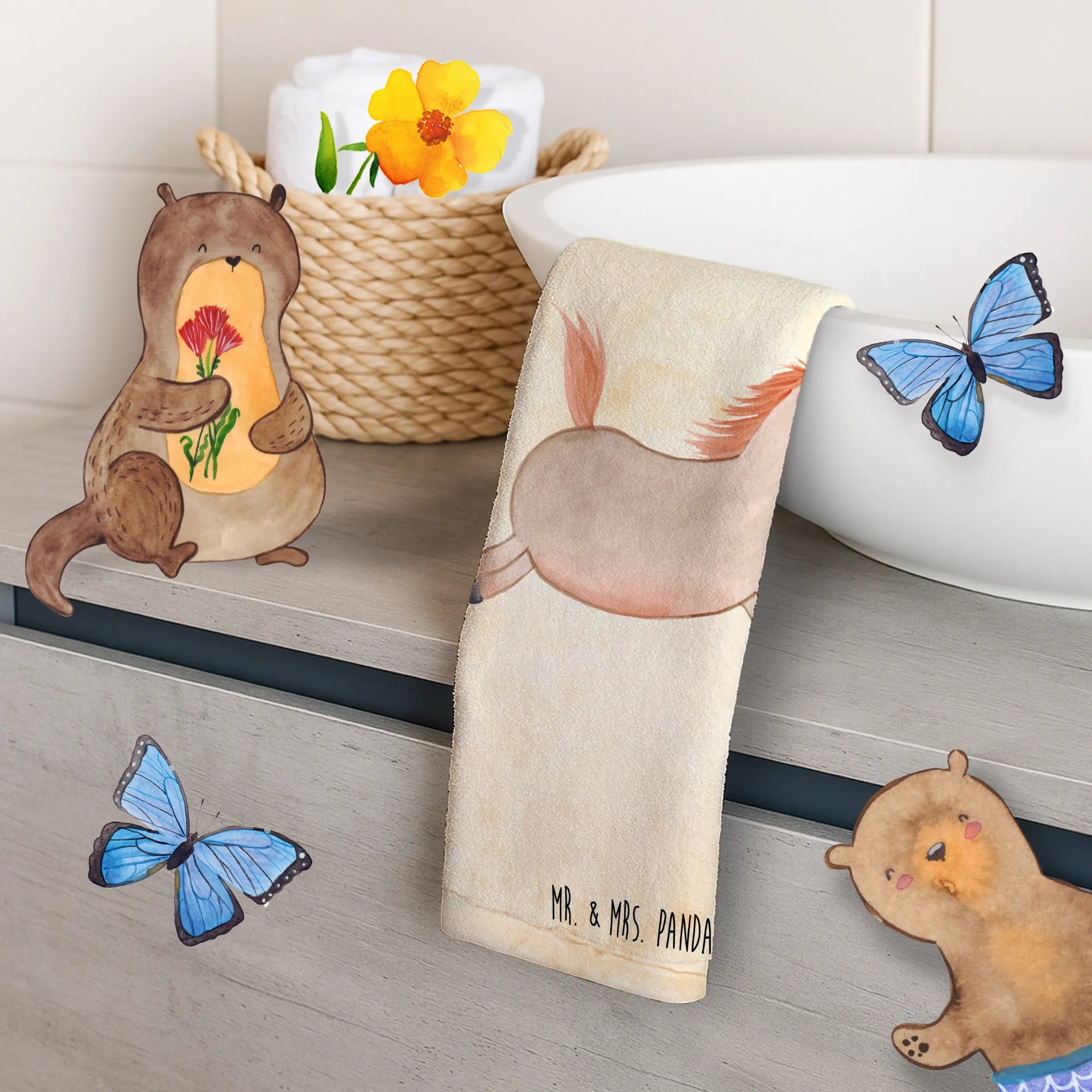 Das wunderschöne Gästehandtuch mit dem süßen Motiv "Pferd springt" von Mr. & Mrs. Panda ist das perfekte Geschenk für alle Pferdefreunde! Ob für den persönlichen Gebrauch oder als nette Aufmerksamkeit für Pferdebesitzer - dieses Handtuch bringt Freude in jedes Badezimmer. Die flauschige Baumwollmischung sorgt dafür, dass sich das Tuch wunderbar weich anfühlt und es ist mit leuchtenden Farben bedruckt, die jedem Raum ein freundliches Flair verleihen. Mit den Maßen von 300 mm x 500 mm ist es ideal für dein Gästebad oder als Reisehandtuch auf Ausritten!