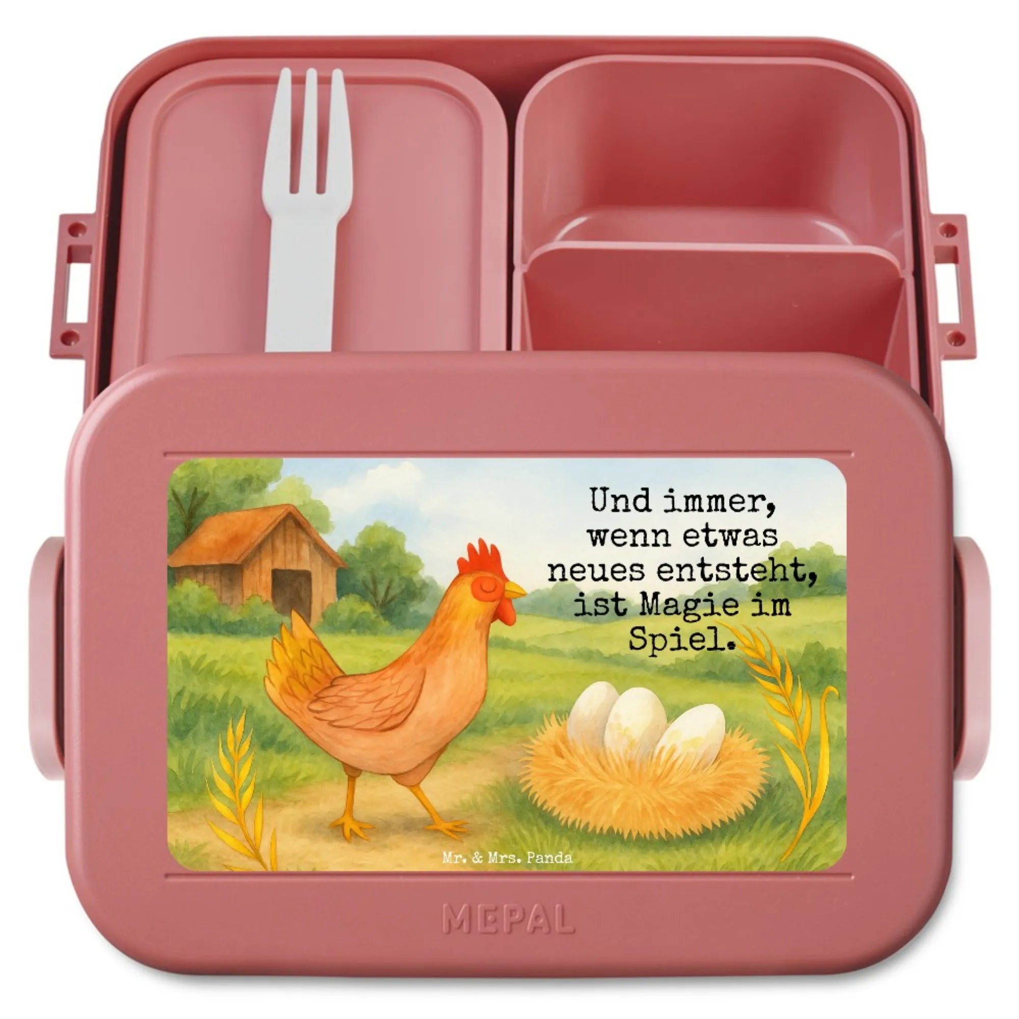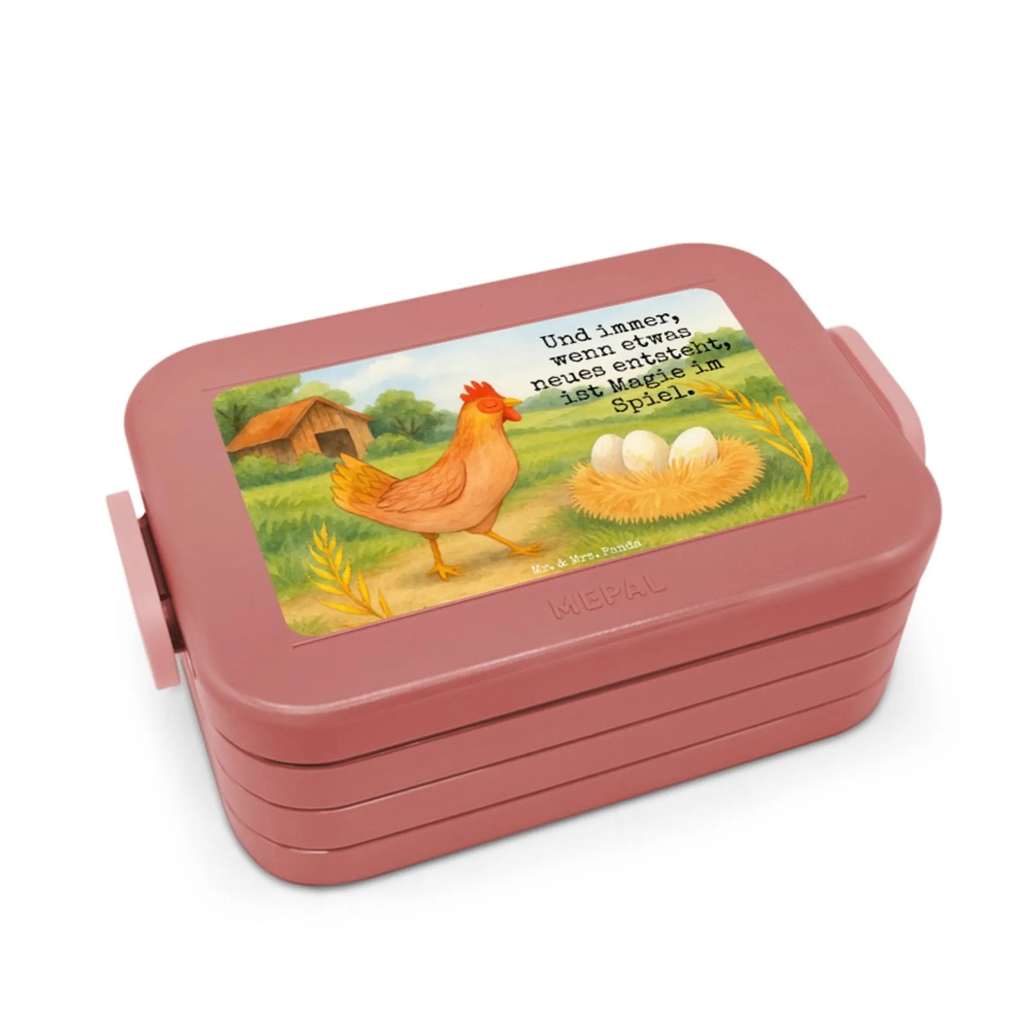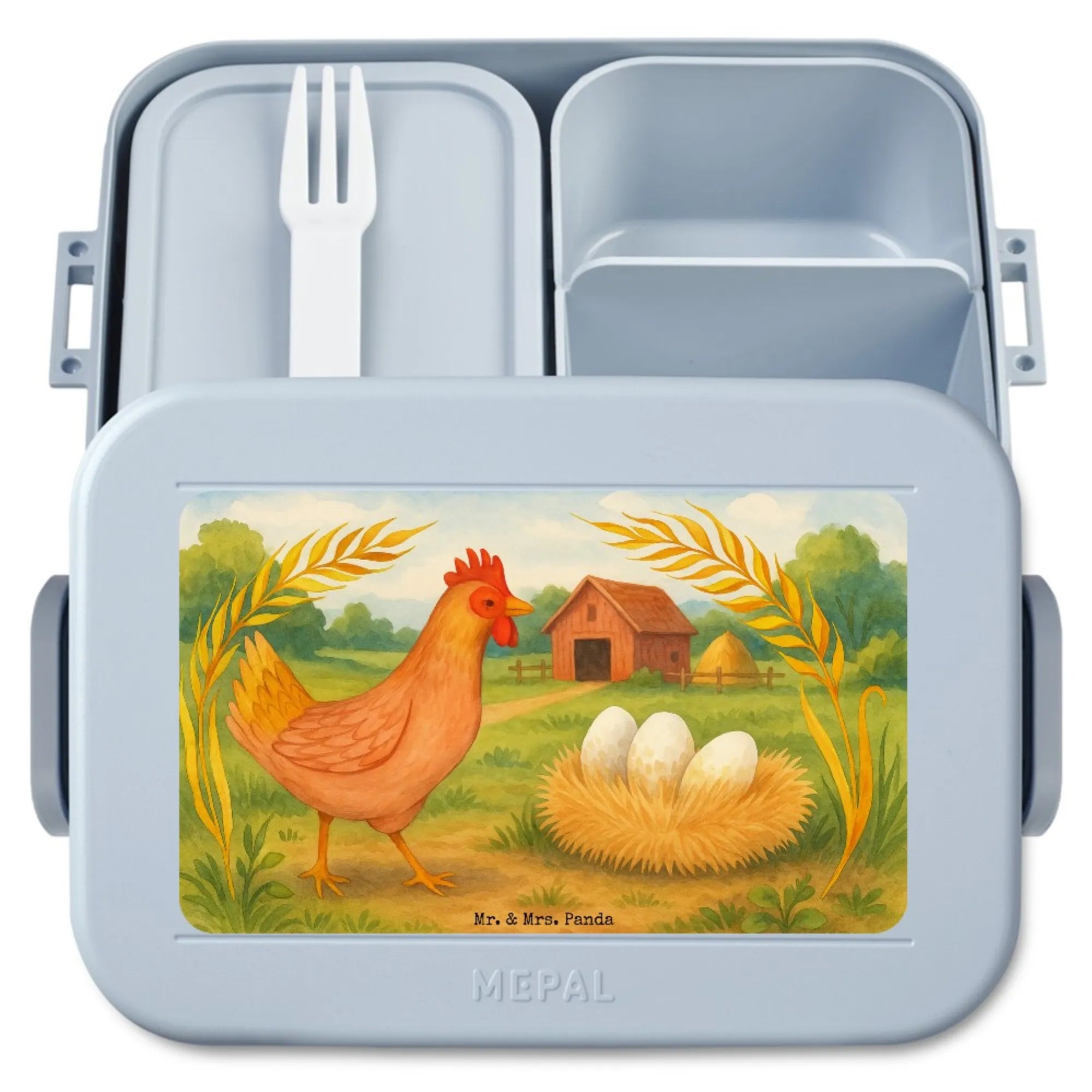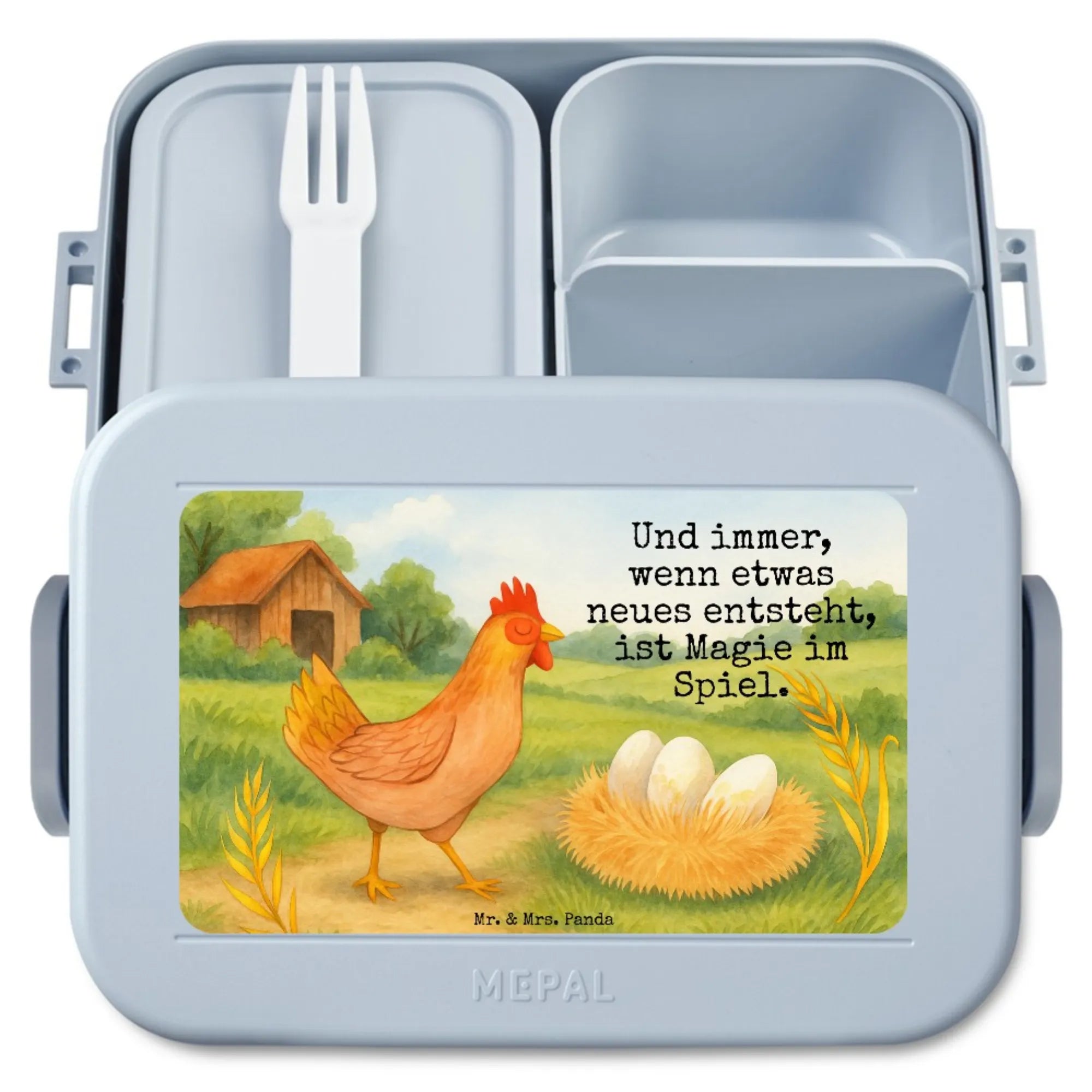 MEPAL Bentobox Huhn Stolz Design - mit Spruch - Blau Pastell