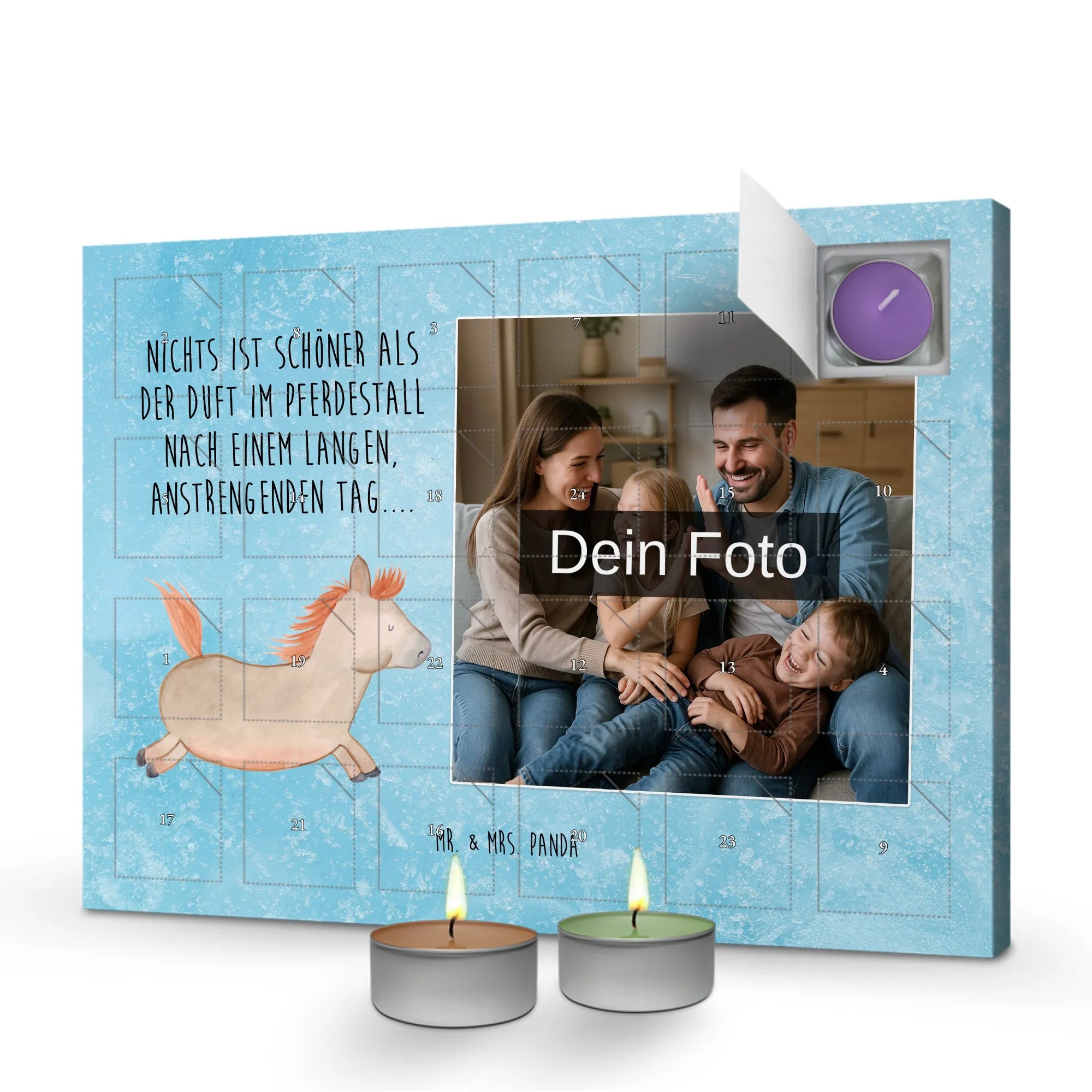 Personalisierter Duftkerzen Foto Adventskalender Pferd Springen - Kreidetafel