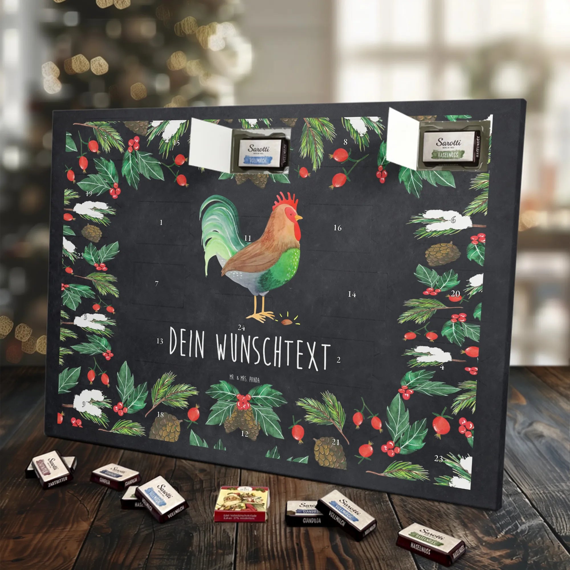 Personalisierter Adventskalender Hahn Korn - Lindt LINDOR - Kreidetafel