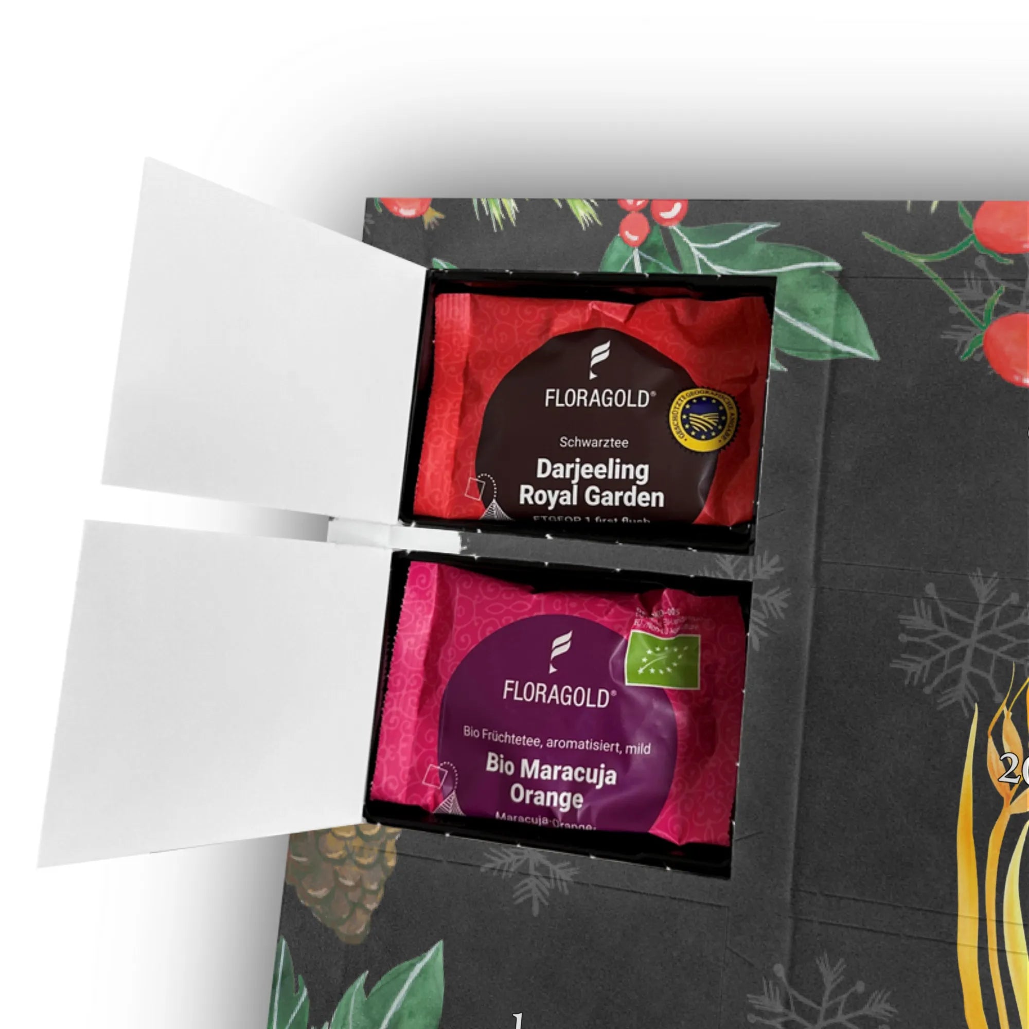 Füll den Advent mit liebevoll ausgewählten Teesorten und lass dich von der Magie des Landlebens verzaubern. Jeder Tag im Dezember wird zu einem Fest: hinter jedem Türchen verbirgt sich eine hochwertige Teesorte, die im stilvollen Pyramidenbeutel verpackt ist. Ob Früchtetee, Schwarztee oder Kräutertee – für jeden Geschmack ist etwas dabei!