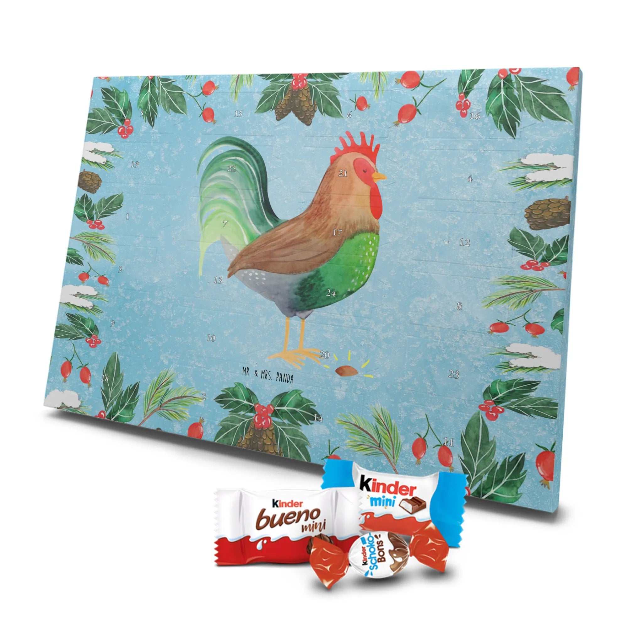 Unser entzückender Schokoladen Adventskalender von Mr. & Mrs. Panda ist das perfekte Highlight für die Adventszeit. Bedruckt mit wunderschönen Motiven & Sprüchen von Mr. & Mrs. Panda zaubert er dir ein Lächeln an jedem Tag im Dezember. Der Kalender ist nicht personalisierbar, überzeugt aber durch brillante Druckqualität mit seidenmatter Oberflächenveredelung und sorgsame bedruckte Seitenflächen. Die stabile Verarbeitung macht ihn zu einem dekorativen Hingucker. Maße: 325 mm x 225 mm x 27 mm. Besonders praktisch: Er kann aufgehängt oder aufgestellt werden, ganz nach deinem Geschmack und Platzangebot. Gefüllt ist der Adventskalender mit Ritter Sport Schokowürfeln – in verführerischen Sorten wie Mousse au Chocolat, Schoko Crisp, Voll-Nuss in Nougatcreme, Karamell Duo, Joghurt und Erdbeer-Joghurt. Wichtiger Hinweis: Es handelt sich um einen Kalender gefüllt mit Ritter Sport Schokolade, nicht um einen Kalender der Marke Ritter Sport. Schenk ihn Freunden, der Familie oder gönn dir selbst eine süße Vorfreude: kleine Schokoladenmomente, liebevoll verpackt von Mr. & Mrs. Panda.