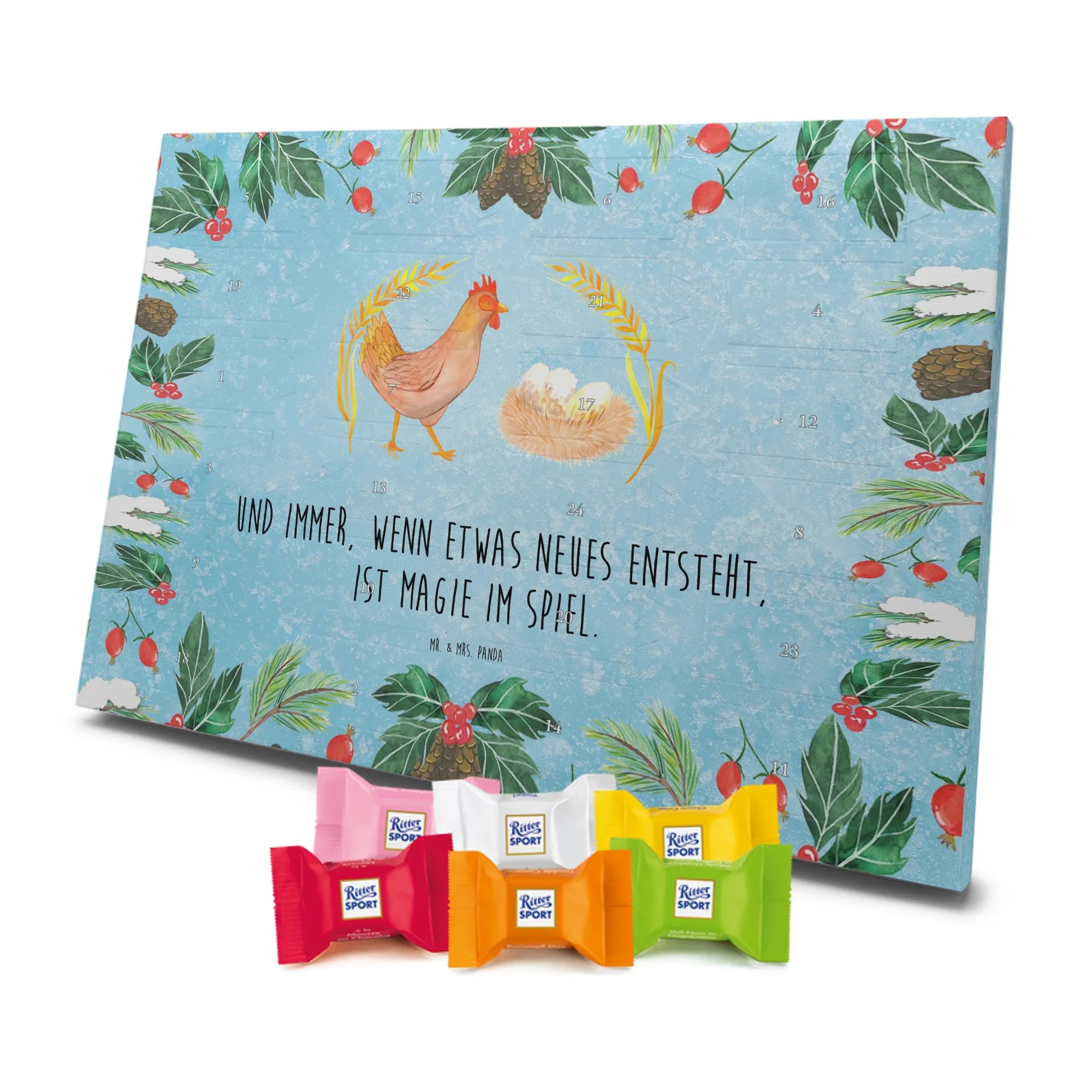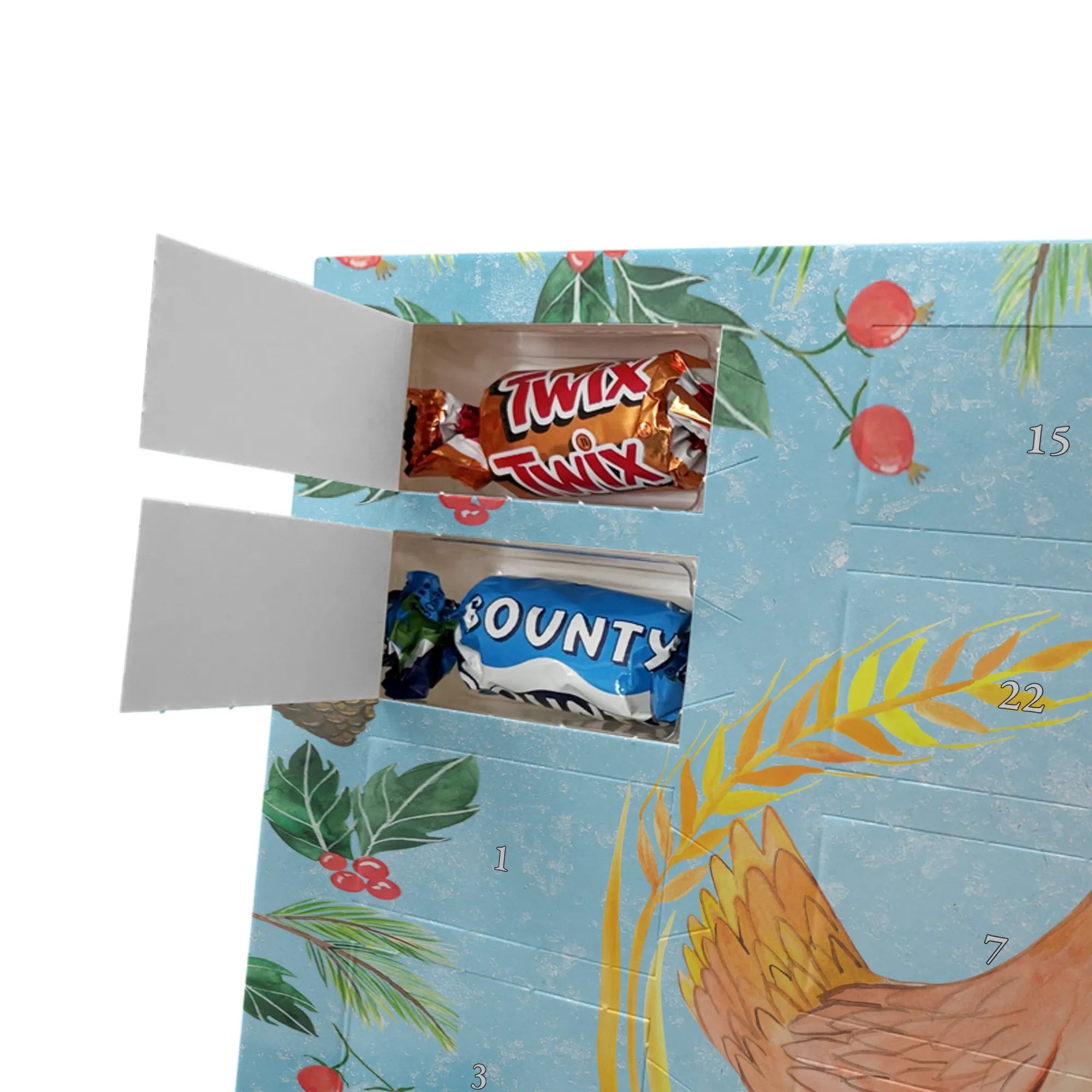 Schoko Adventskalender Huhn Stolz - Classic - mit Spruch - Eisblau