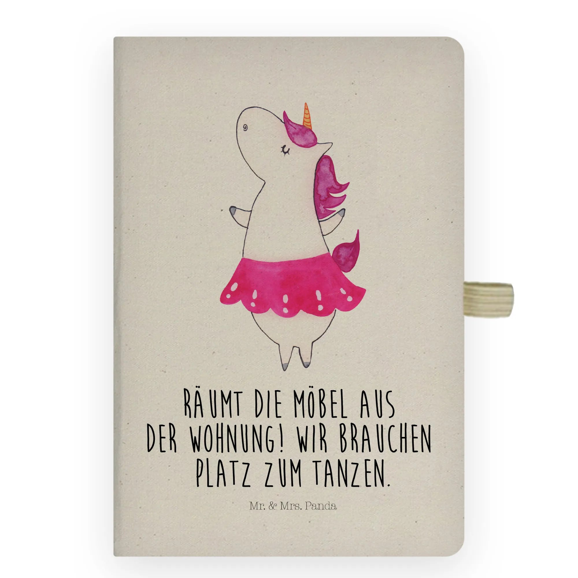 Das DIN A4 Baumwoll Notizbuch mit dem zauberhaften Motiv Einhorn Ballerina von Mr. & Mrs. Panda ist das perfekte Geschenk für alle, die das Tanzen lieben! Ob für die leidenschaftliche Ballettänzerin oder den Partylöwen, dieses Notizbuch bringt ein Lächeln in dein Leben. Mit dem spritzigen Slogan "Räumt die Möbel aus der Wohnung! Wir brauchen Platz zum Tanzen!" motiviert es dich, deine Gedanken und Ideen festzuhalten und dabei Lebensfreude zu verspüren.