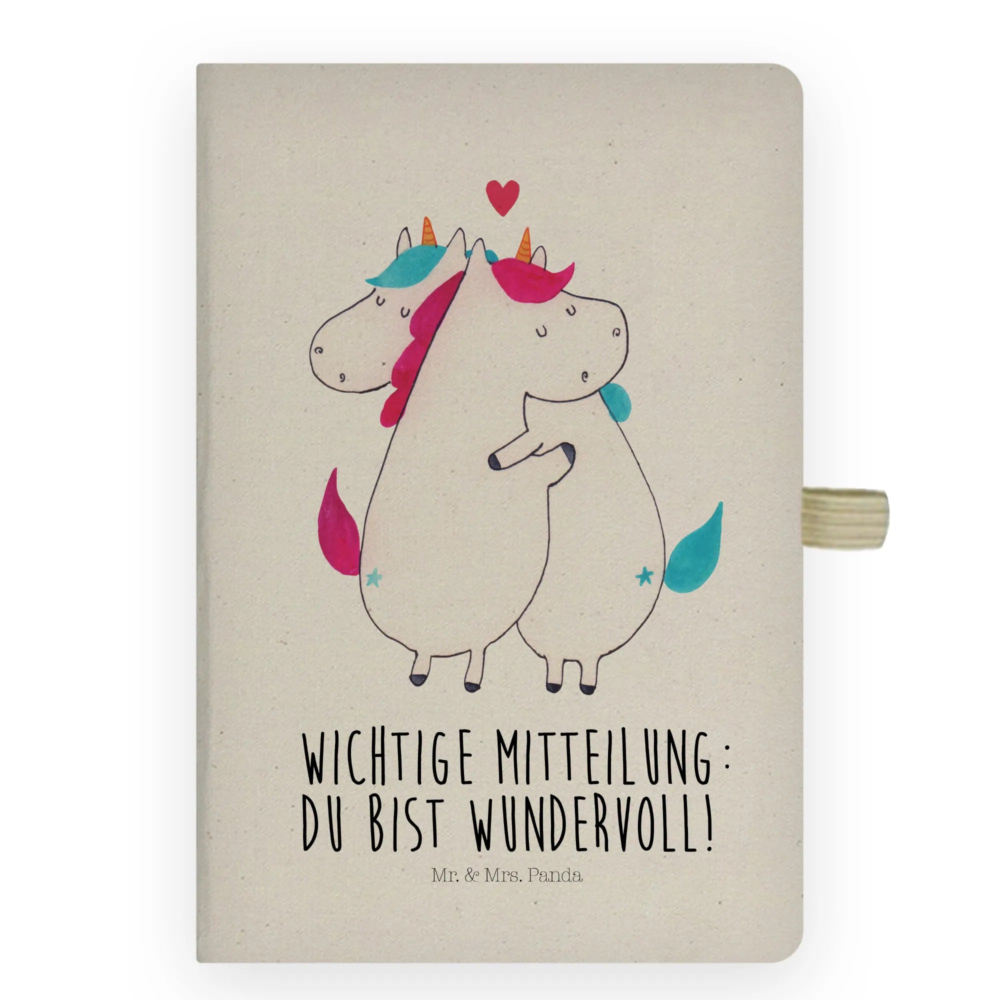 Mach dich bereit für eine zauberhafte Note mit dem DIN A5 Baumwoll Notizbuch "Einhorn Mitteilung" aus der einzigartigen Einhorn-Kollektion von Mr. & Mrs. Panda! Dieses bezaubernde Notizbuch ist nicht nur praktisch, sondern bringt auch ein wenig Magie in deinen Alltag. Auf den Seiten dieses edlen Baumwollnotizbuchs findest du den liebevollen Spruch: "Wichtige Mitteilung: du bist wundervoll!". Das erinnert dich und deine Liebsten daran, wie wichtig es ist, sich gegenseitig Wertschätzung und Liebe zu zeigen. Ideal als Geschenk zum Valentinstag oder für den besonderen Partner, ist dieses Notizbuch perfekt, um all deine Ideen, Gedanken und Träume festzuhalten.
