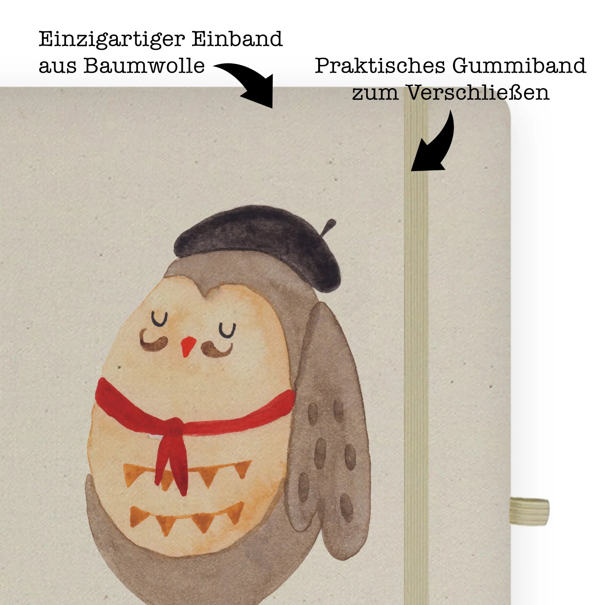 Hol dir das DIN A6 Baumwoll Notizbuch Eule Französisch und lass dich inspirieren! Es wird nicht nur dein perfekter Schreibpartner, sondern auch ein schöner Decor in jedem Raum sein. Mit Mr. & Mrs. Panda verbreitest du Freude und Kreativität mit einem Hauch von Eulen-Magie! 🎉🦉