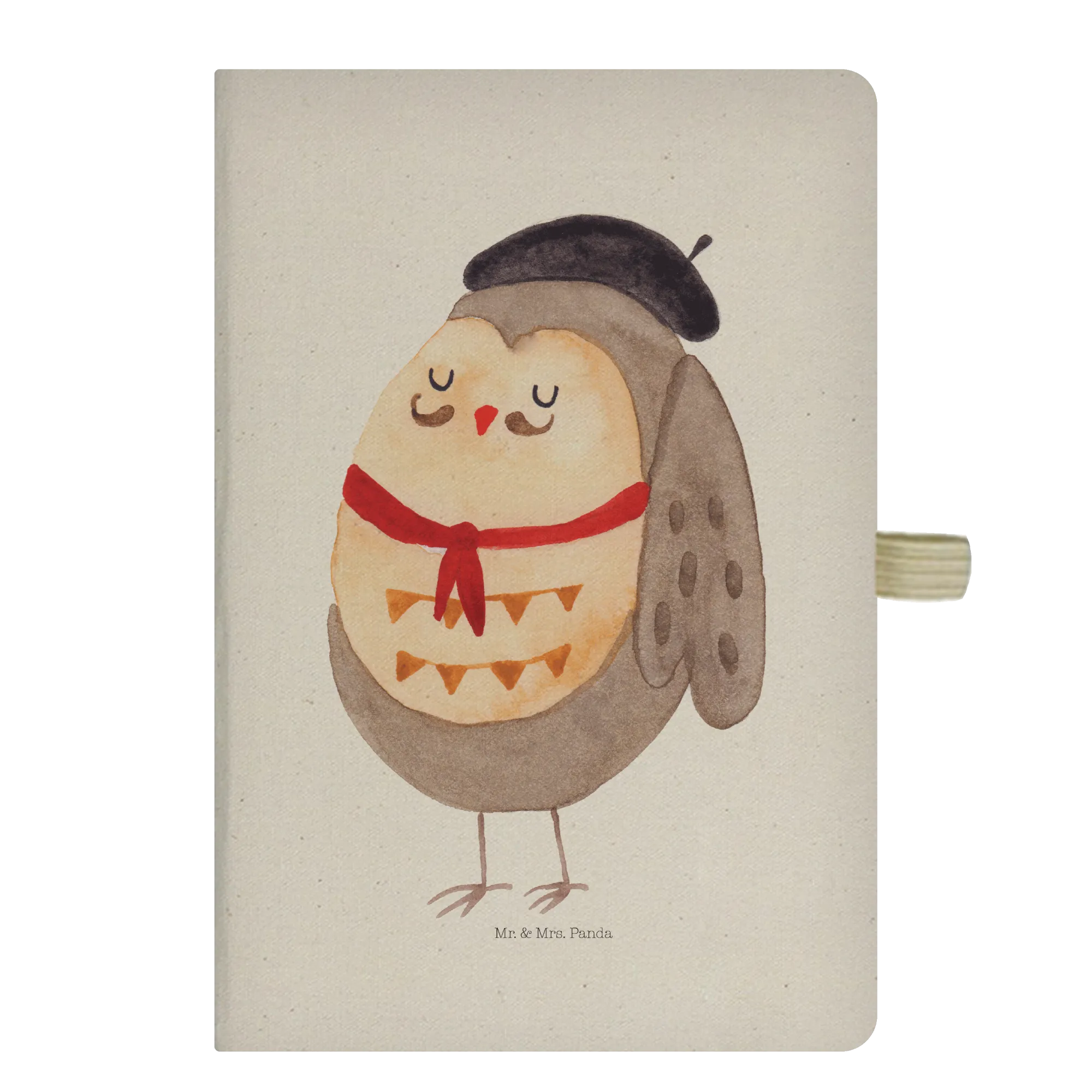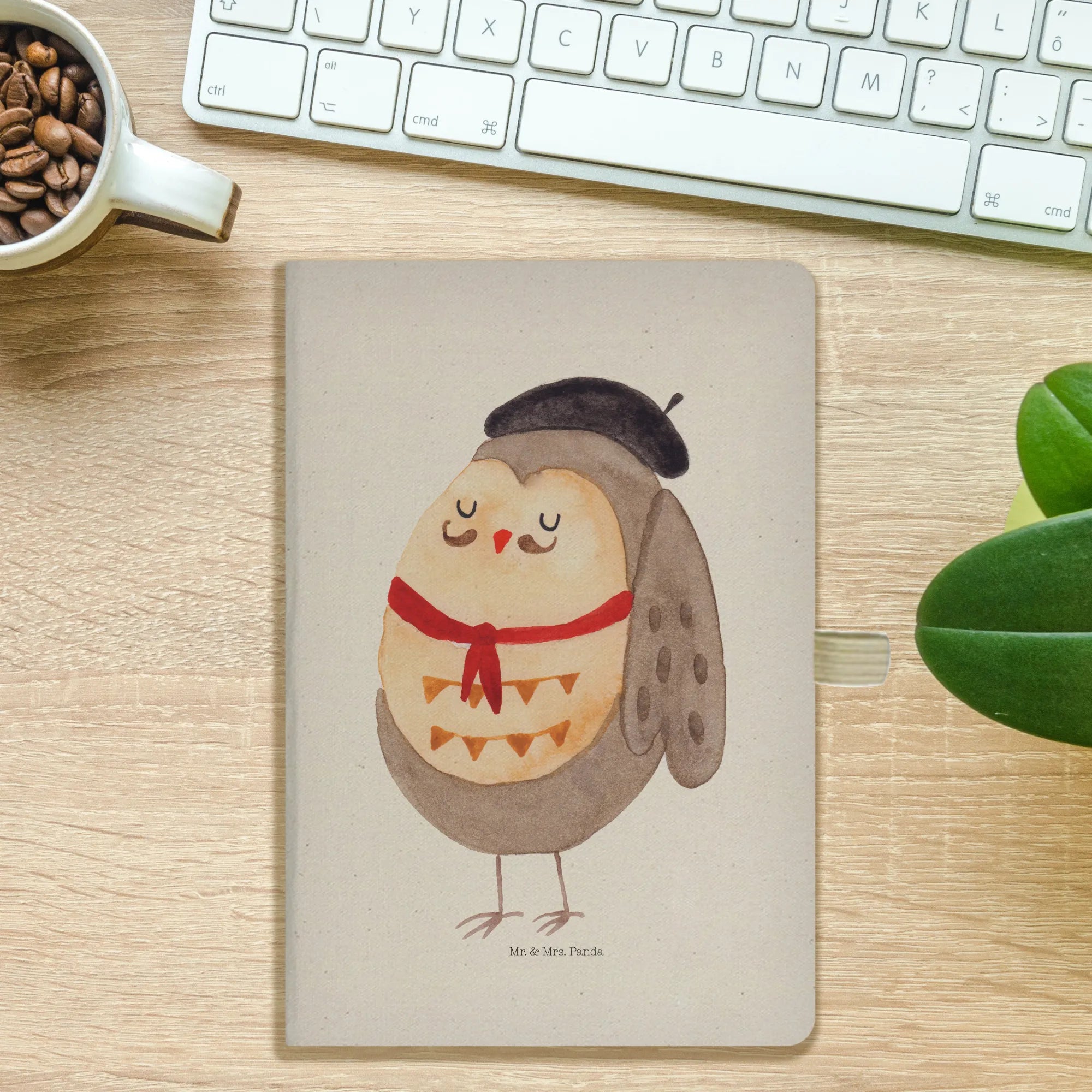 Entdecke das wundervolle DIN A4 Baumwoll Notizbuch mit dem bezaubernden Eulen-Motiv im französischen Stil von Mr. & Mrs. Panda! Dieses Notebook ist nicht nur ein praktischer Begleiter für Deine Ideen, Skizzen und Notizen, sondern auch ein stilvolles Accessoire für jeden Eulenliebhaber. Die süße Eule, liebevoll von Mrs. Panda gestaltet, trägt einen typischen französischen Hut, eine Fliege und einen Schnurrbart – sie bringt den Charme Frankreichs in Dein Zuhause!