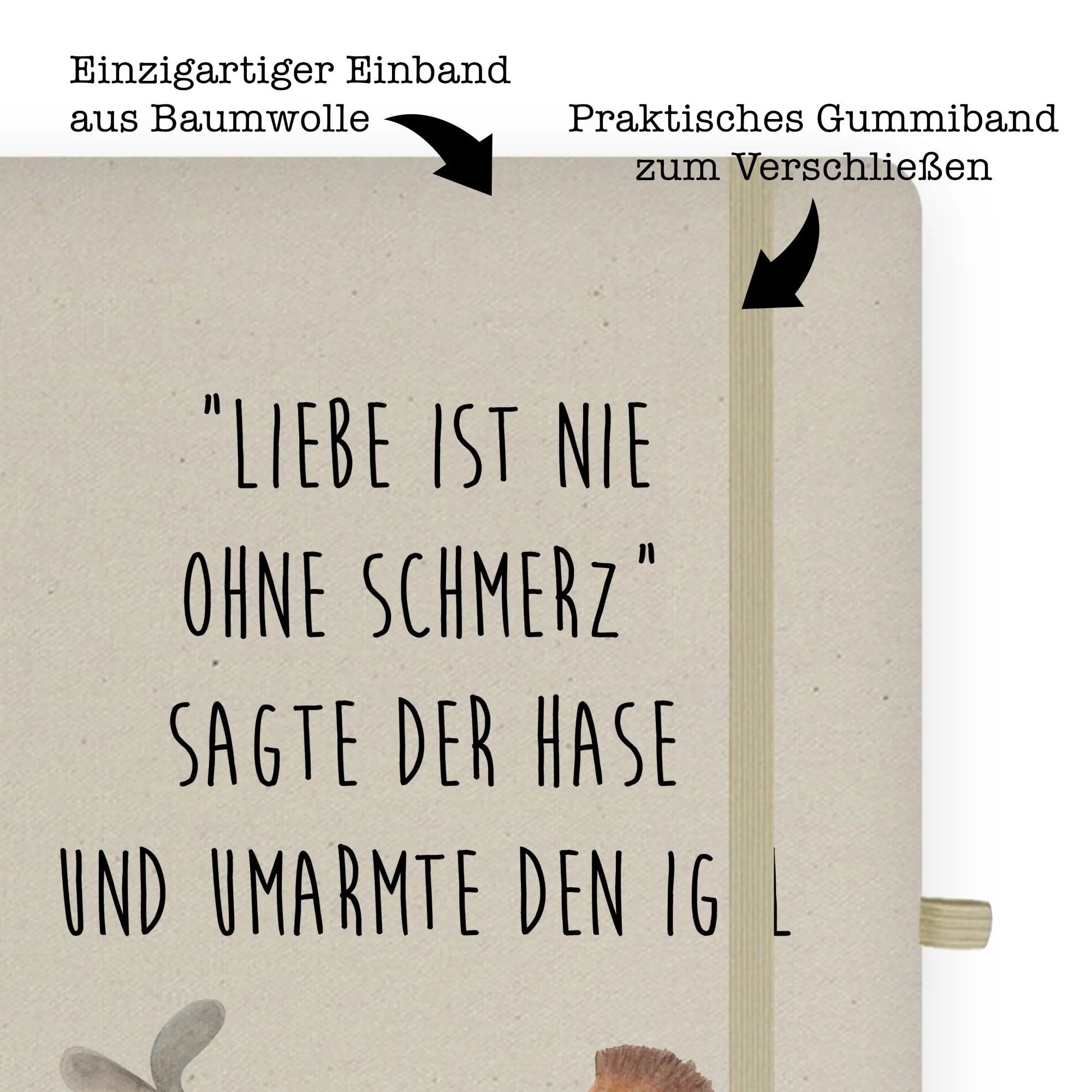 Du suchst nach dem perfekten Geschenk für einen besonderen Menschen? Das DIN A5 Baumwoll Notizbuch "Liebe ist nie ohne Schmerz" von Mr. & Mrs. Panda ist genau das Richtige!