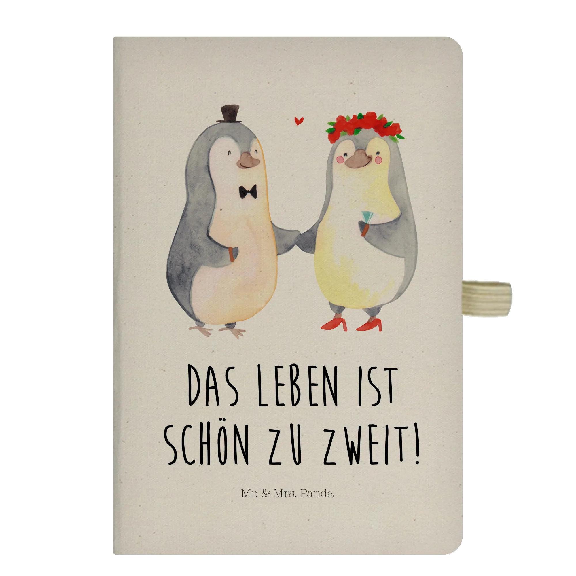 Das DIN A5 Baumwoll Notizbuch mit dem süßen Pinguin-Heirat-Motiv aus der Liebe-Kollektion von Mr. & Mrs. Panda ist das perfekte Geschenk für alle, die in einer glücklichen Beziehung sind! Ob zum Jahrestag, zur Verlobung oder einfach als Liebesgeständnis – dieses Notizbuch ist nicht nur eine praktische Begleitung für Notizen, Skizzen oder Gedanken, sondern auch ein wunderschönes Andenken an gemeinsame Erlebnisse. Die liebevoll handgezeichneten Pinguine in Hochzeitsoutfits drücken das aus, was jeder von uns mit seiner großen Liebe verbindet: Zweisamkeit und Glück. Der süße Spruch 'Das Leben ist schön zu zweit!' erinnert dich bei jedem Gebrauch daran, wie schön das Leben mit dem richtigen Partner an deiner Seite sein kann.