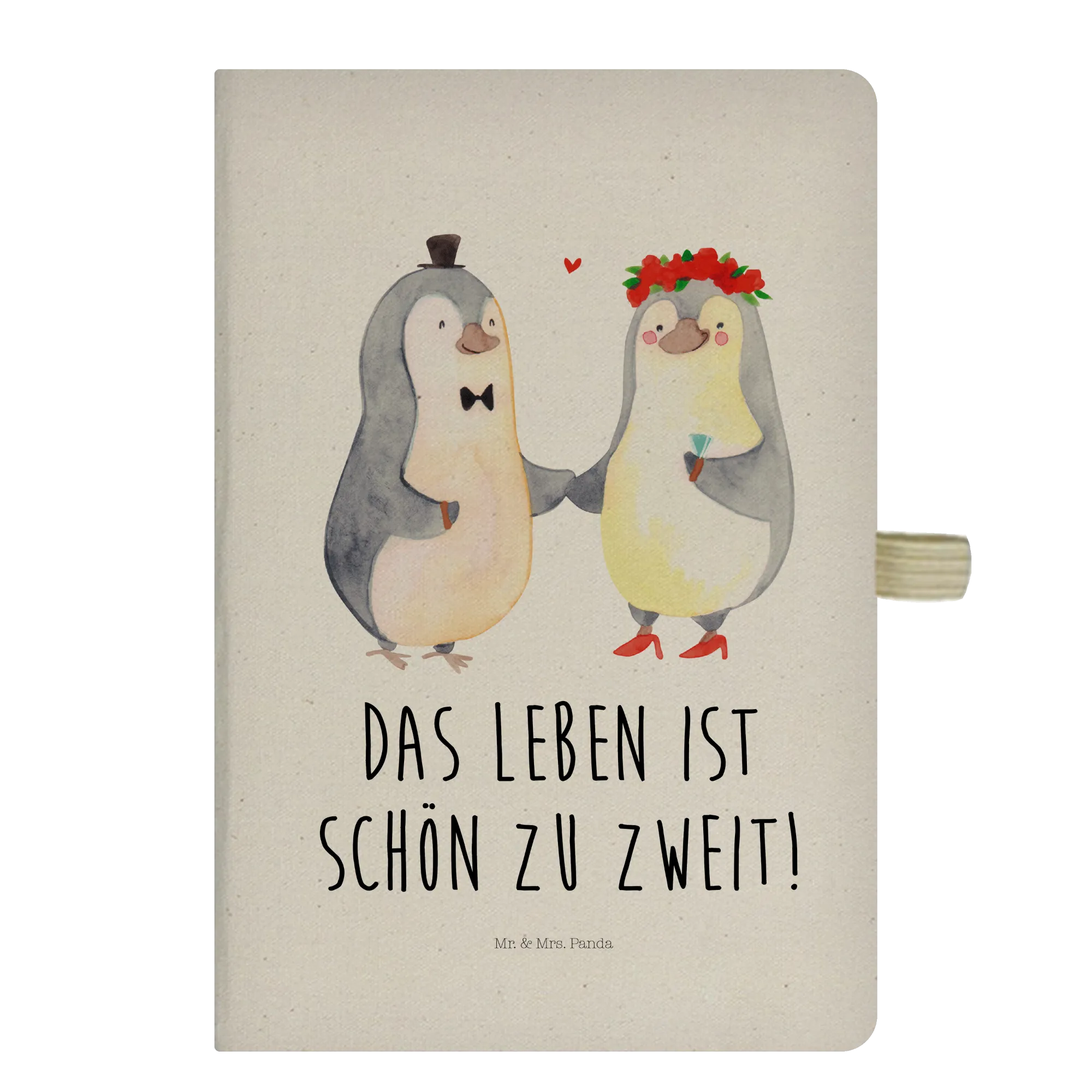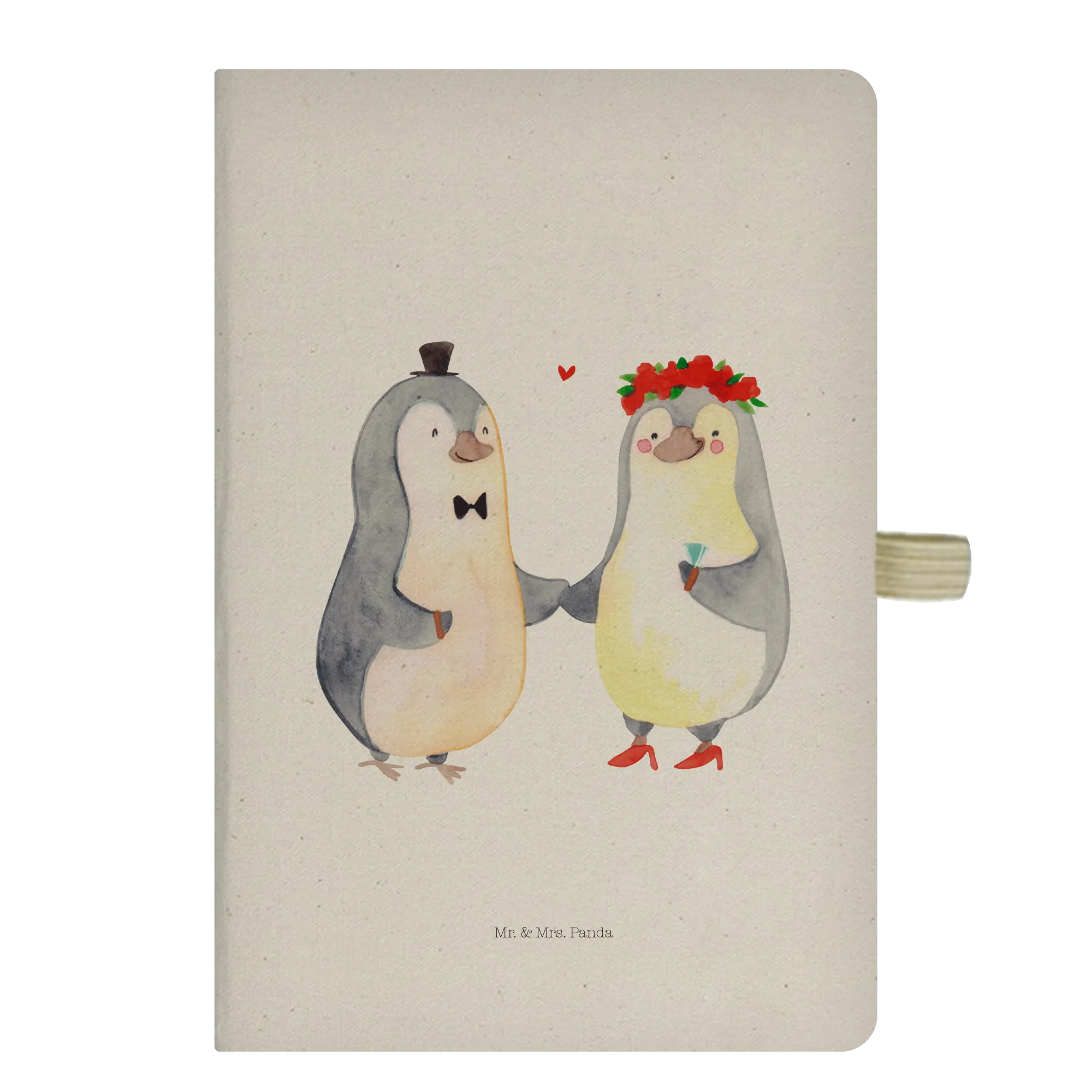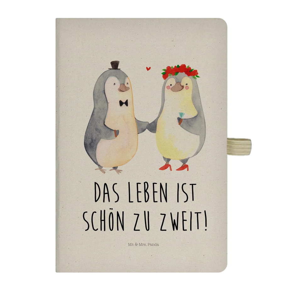 Baumwoll Notizbuch Pinguin Heirat - DIN A5 Baumwoll Notizbuch - mit Spruch