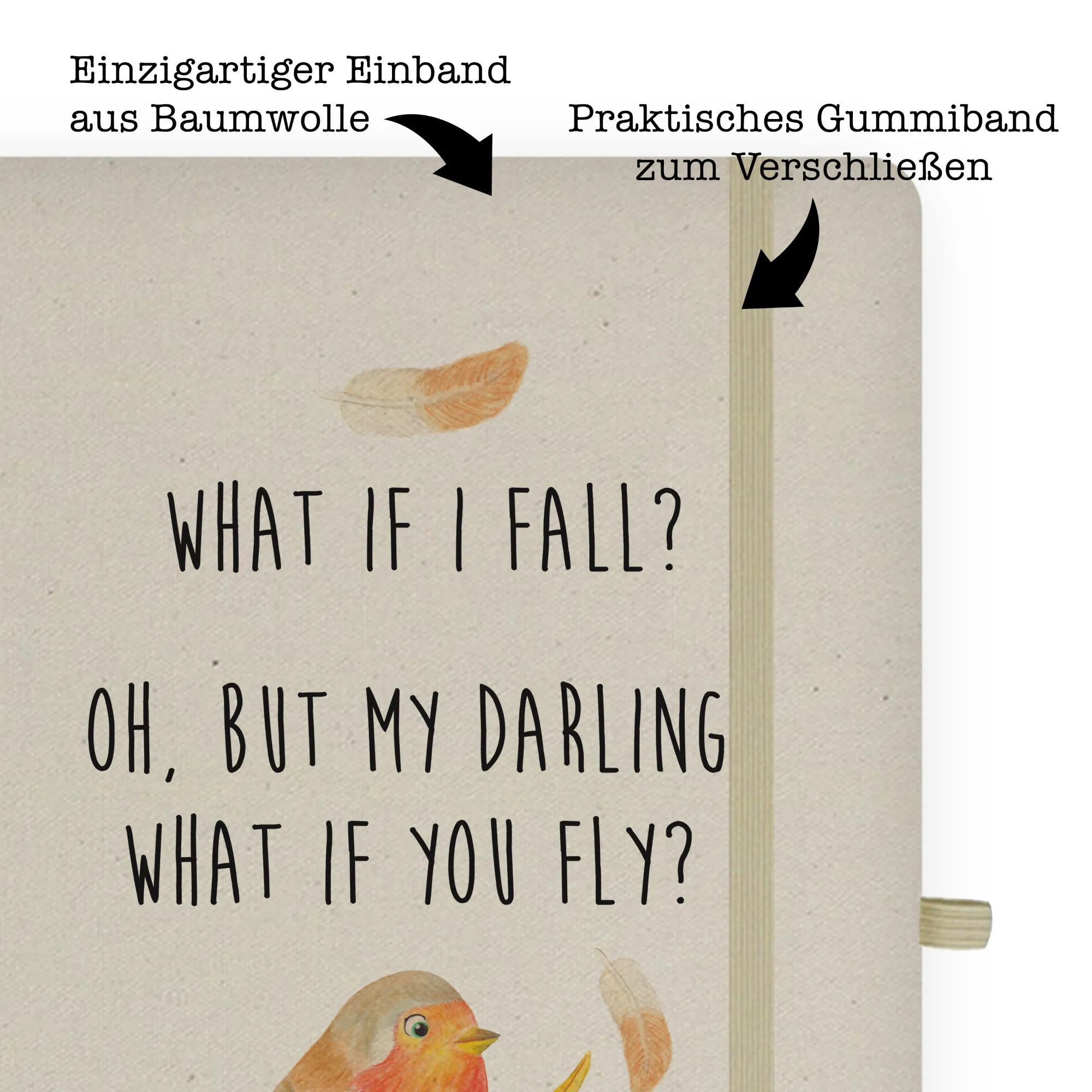 Der liebevoll gestaltete, niedliche Rotkehlchen-Motiv bringt sofort gute Laune und inspiriert mit dem wunderbaren Spruch: „What if I fall? Oh, but my darling, what if you fly?“. Dieses Aufmunterung macht das Notizbuch zum idealen Geschenk für die kreativen Köpfe unter uns. Der spezielle Druck auf dem Cover strahlt eine friedliche Ruhe aus und ermutigt dazu, neue Ideen zu entwickeln und Träume zu verwirklichen.