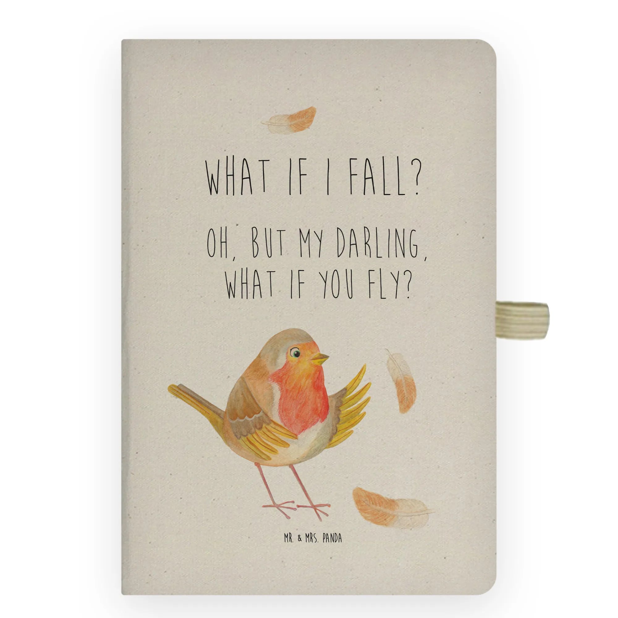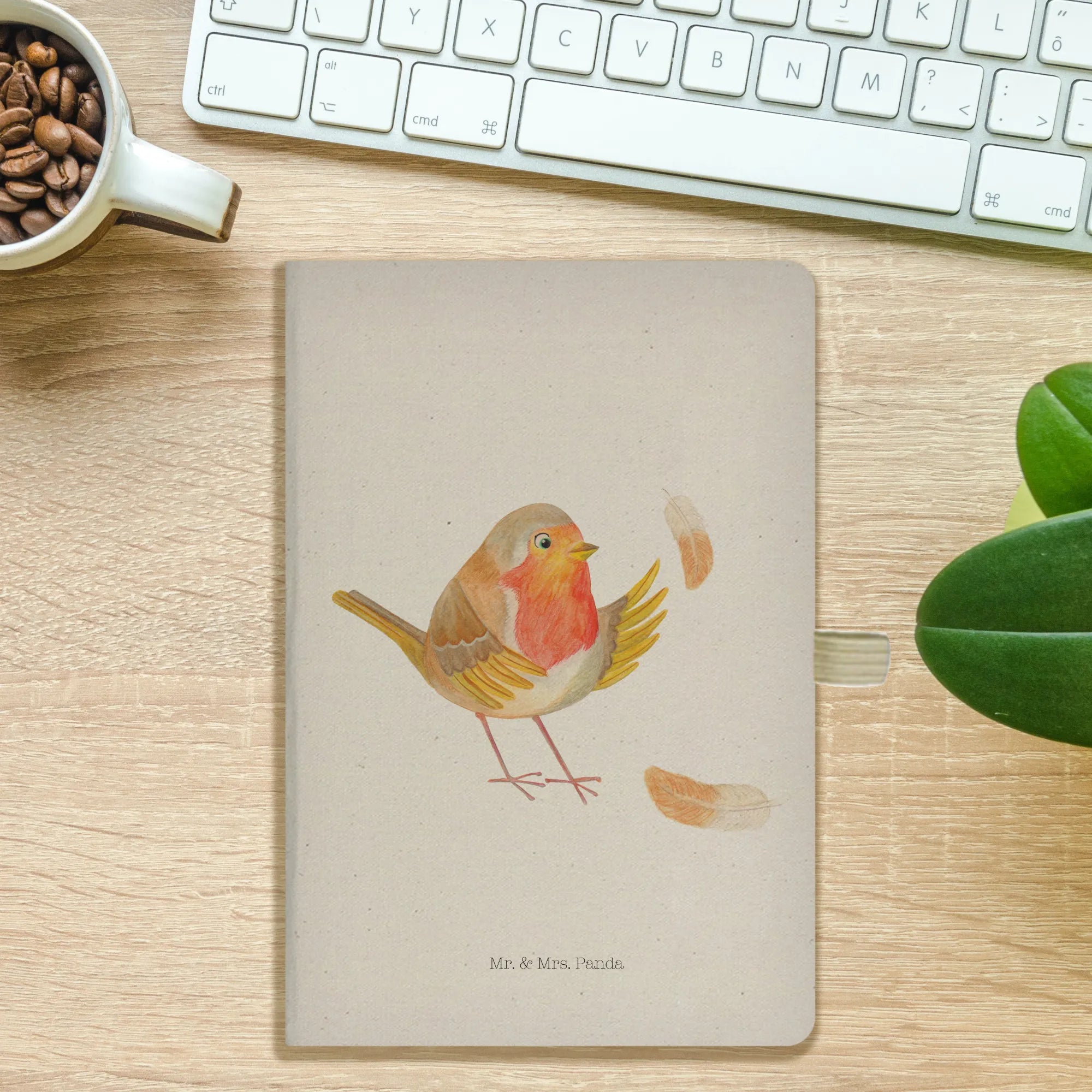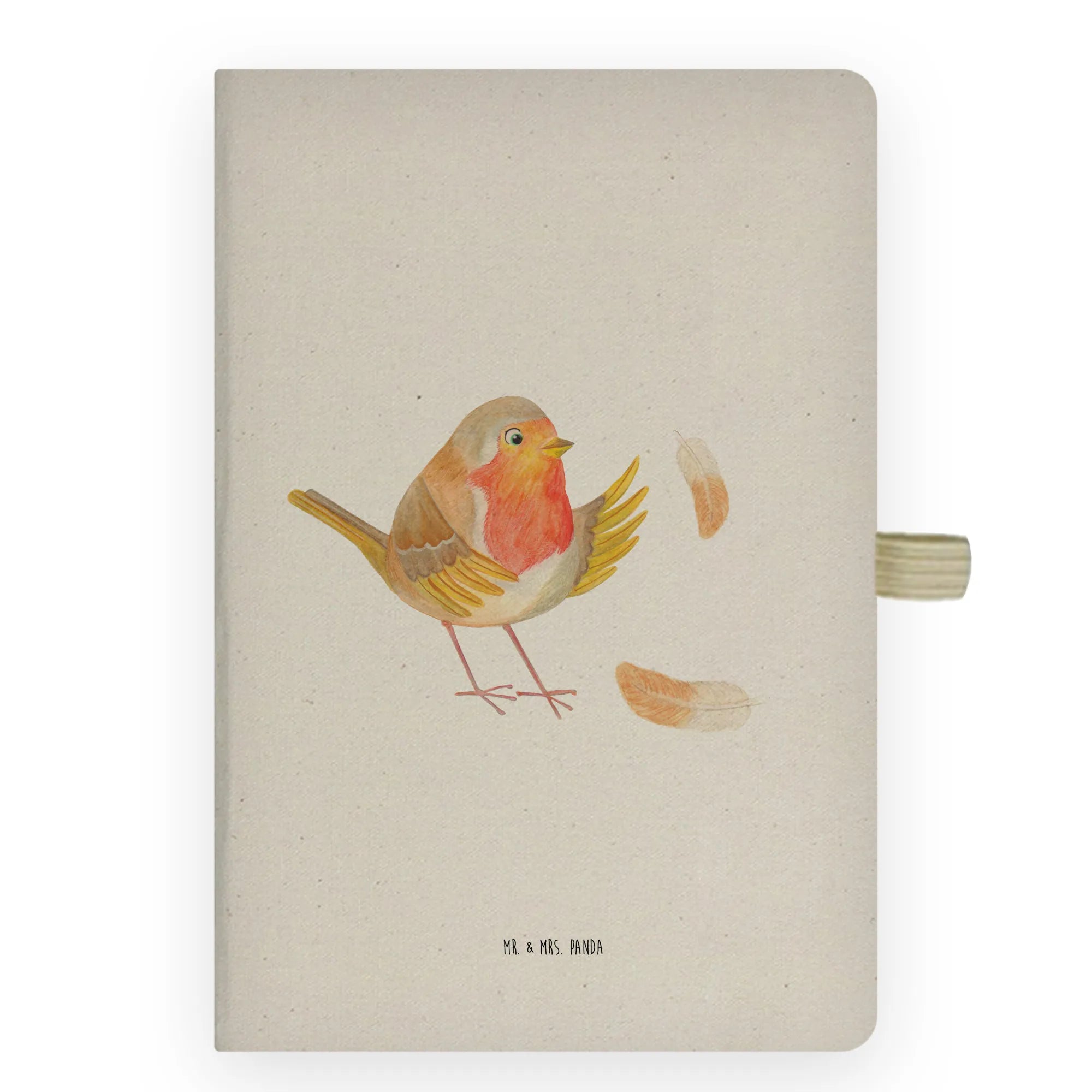 Mr. & Mrs. Panda DIN A5 Baumwoll Notizbuch – Rotkehlchen mit Federn