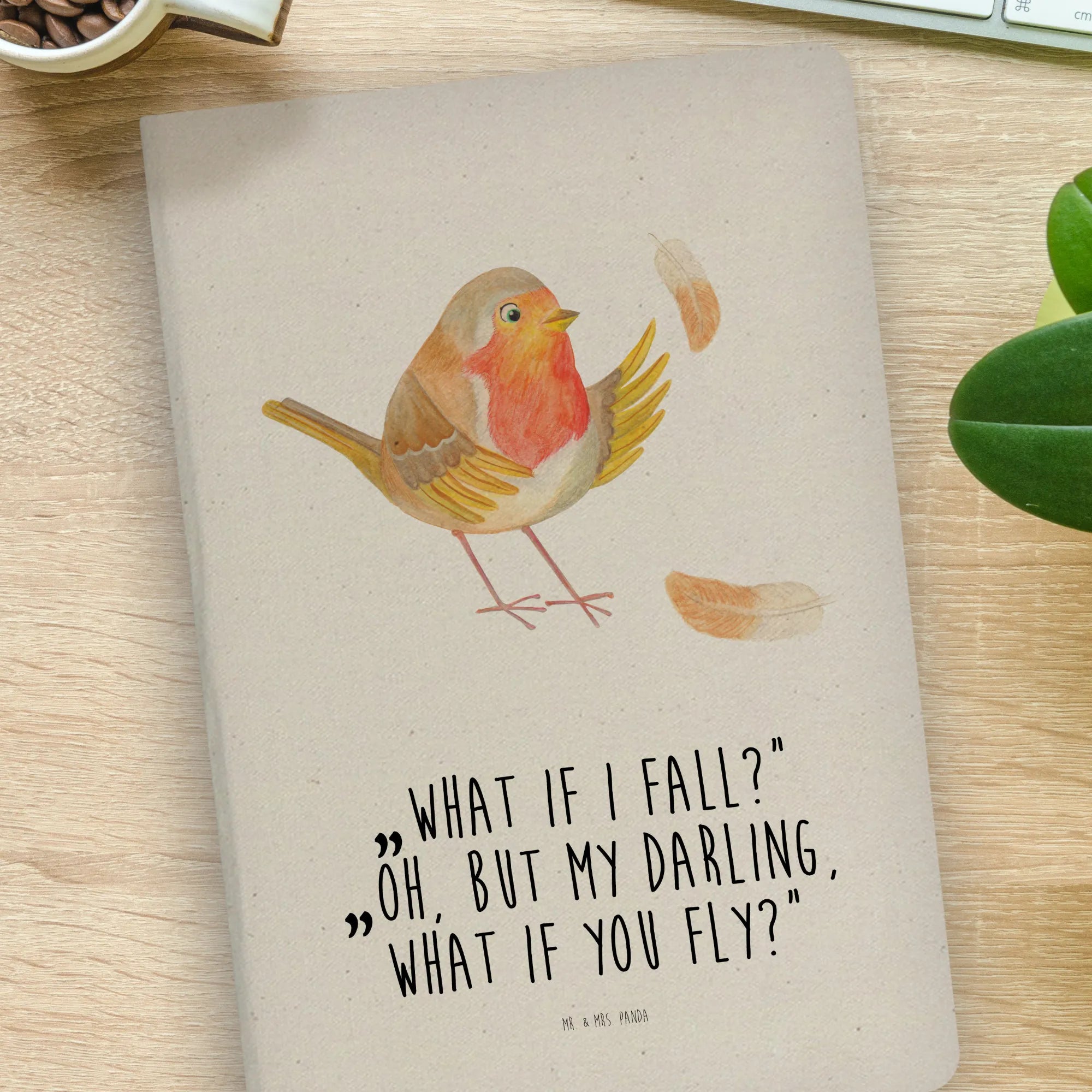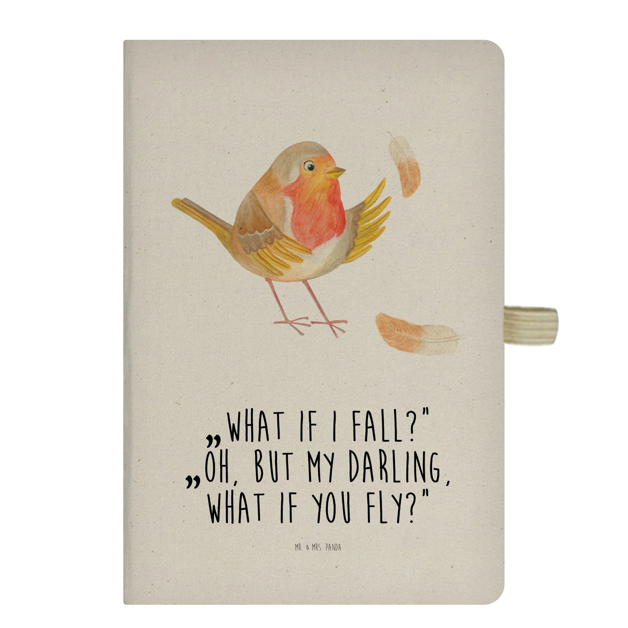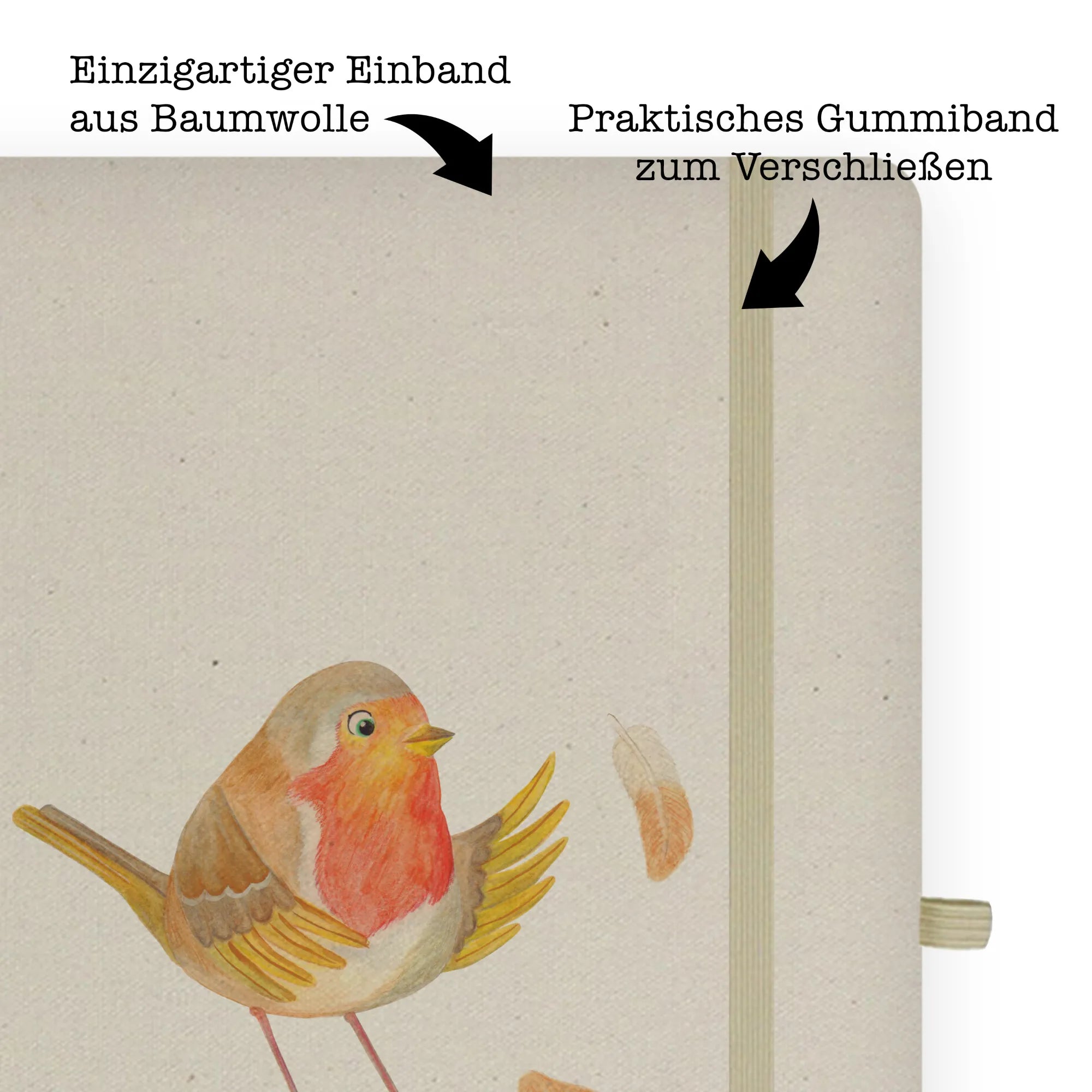 Baumwoll Notizbuch Rotkehlchen mit Federn - DIN A5 Baumwoll Notizbuch - mit Spruch