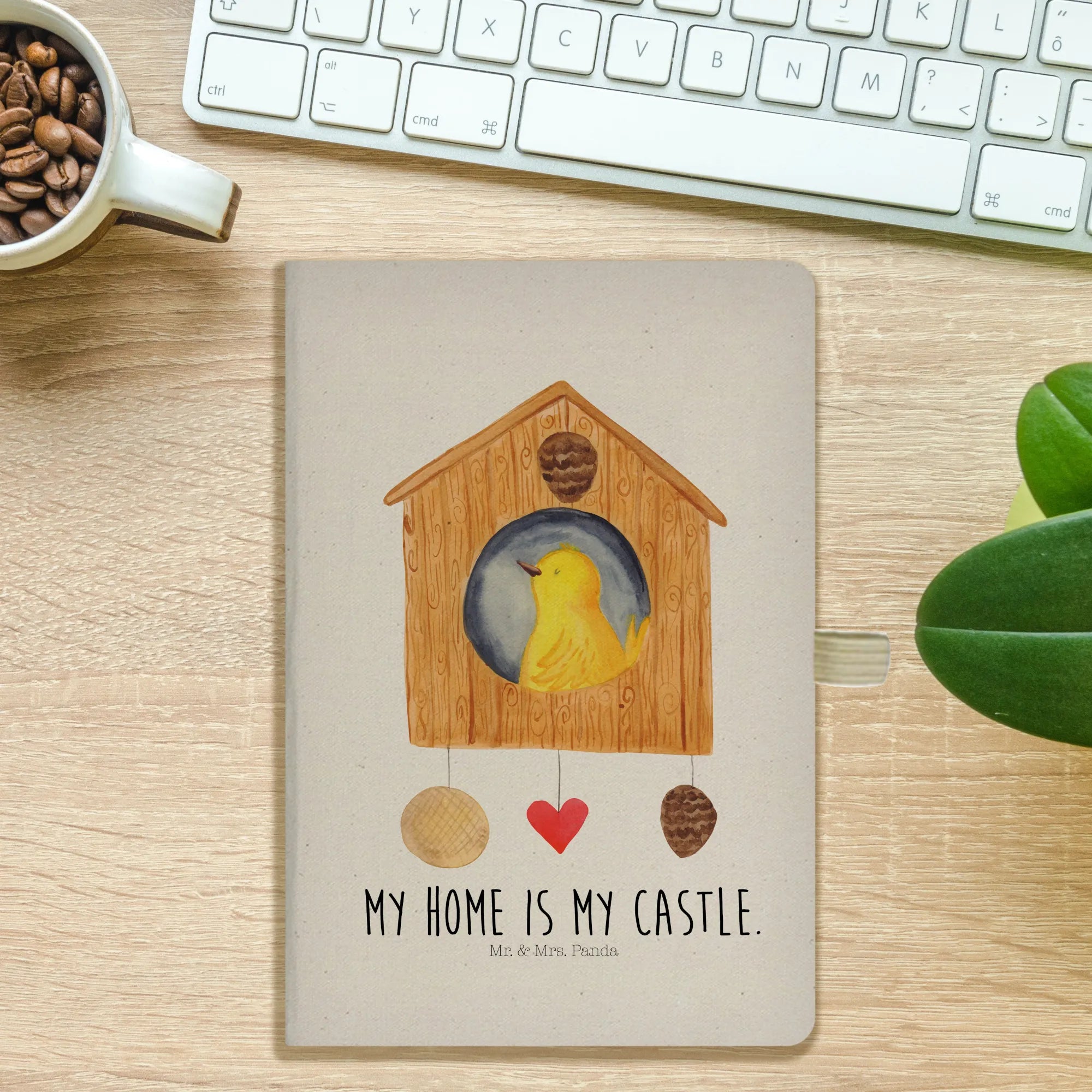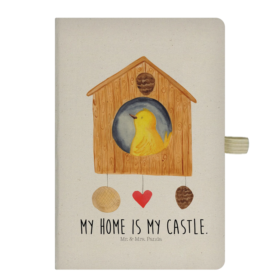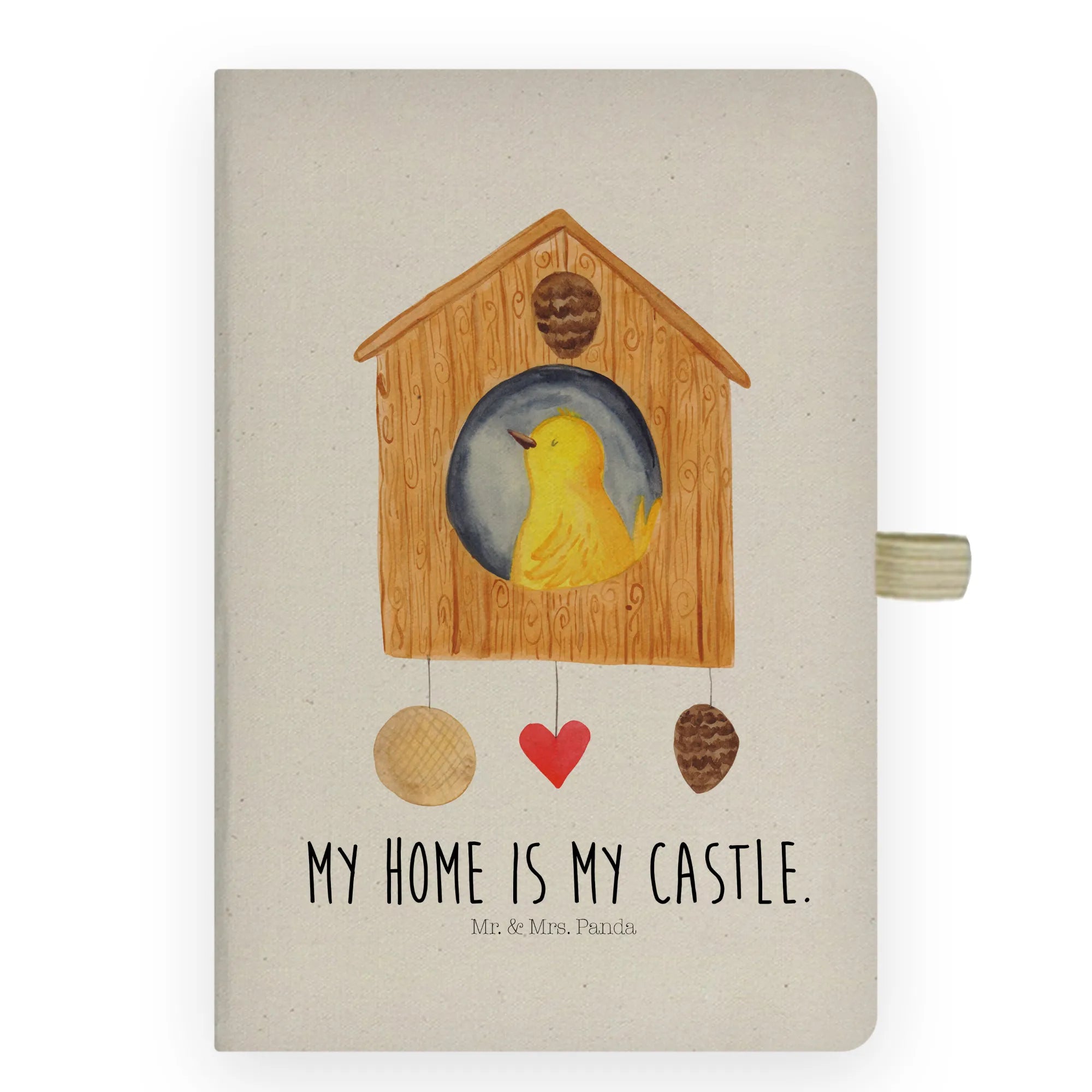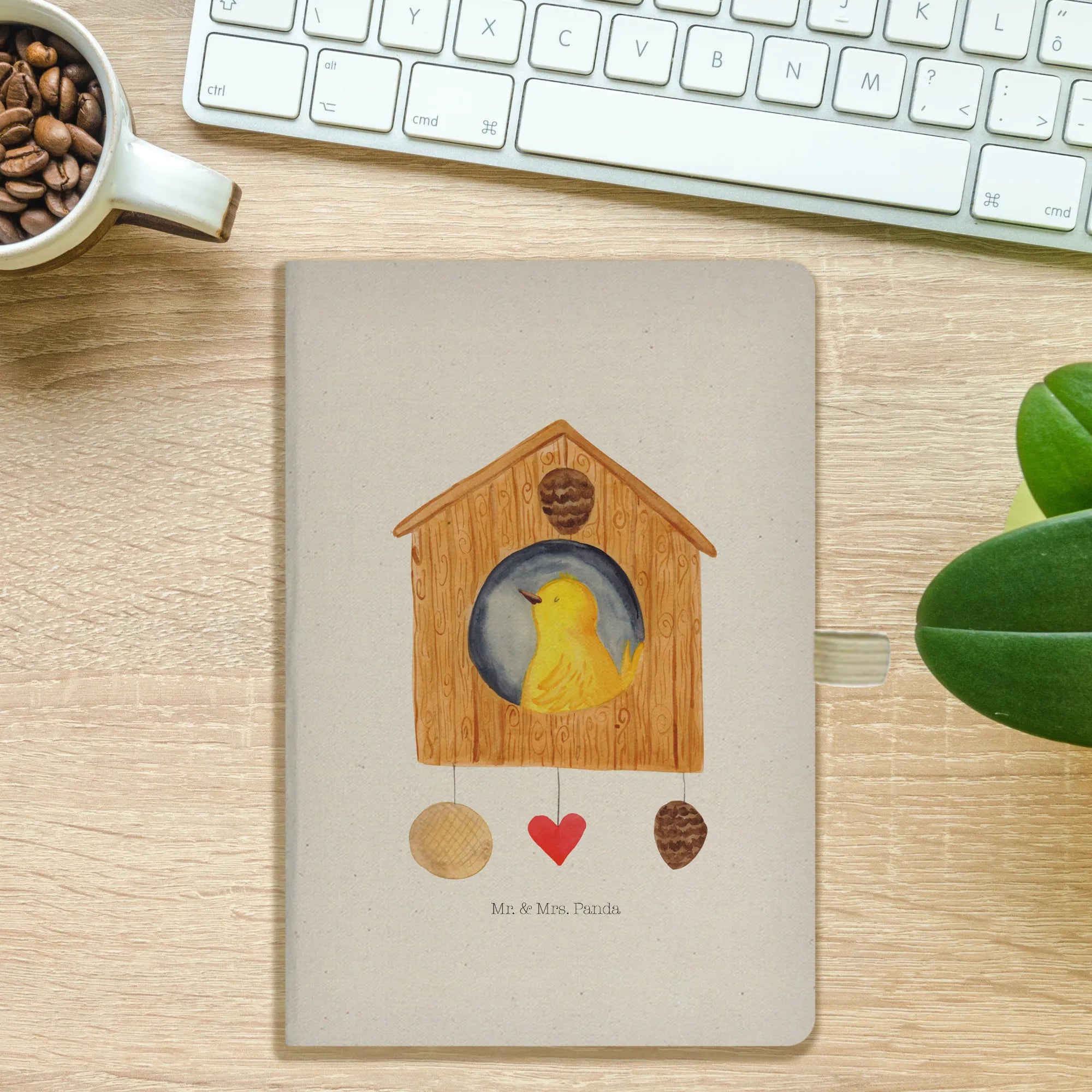 Baumwoll Notizbuch Vogelhaus - DIN A5 Baumwoll Notizbuch - mit Spruch