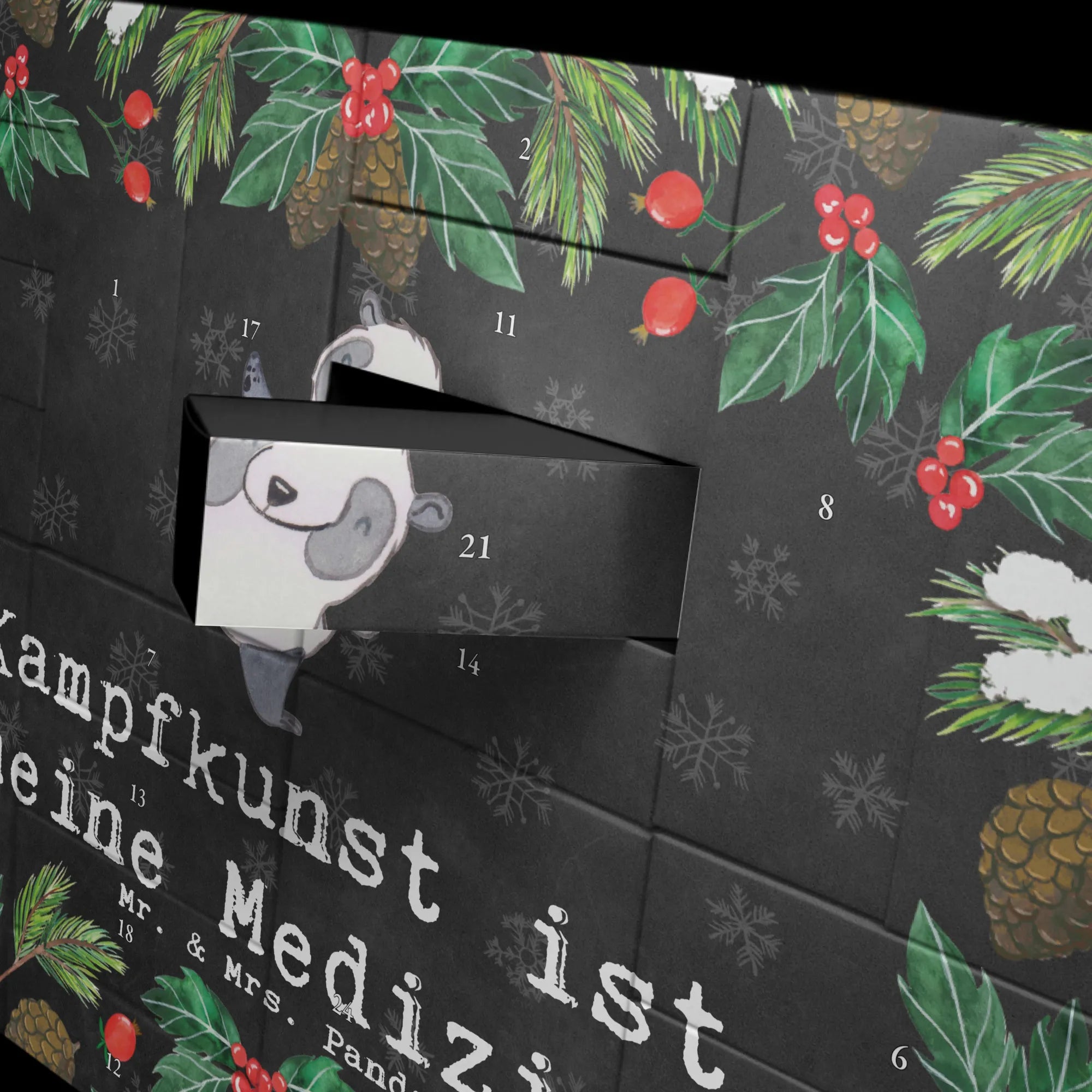 Dank des Slogans „Kampfkunst ist meine Medizin“ wird jedem klar, dass dieser Kalender nicht nur für das bloße Zählen der Tage bis Weihnachten gedacht ist, sondern auch die Leidenschaft für Kampfsportarten und Selbstverteidigung feiert! Die liebevolle Zeichnung von Mrs. Panda auf der Frontseite bringt nicht nur Kinderaugen zum Leuchten, sondern begeistert sicher auch die Herzen von Erwachsenen.