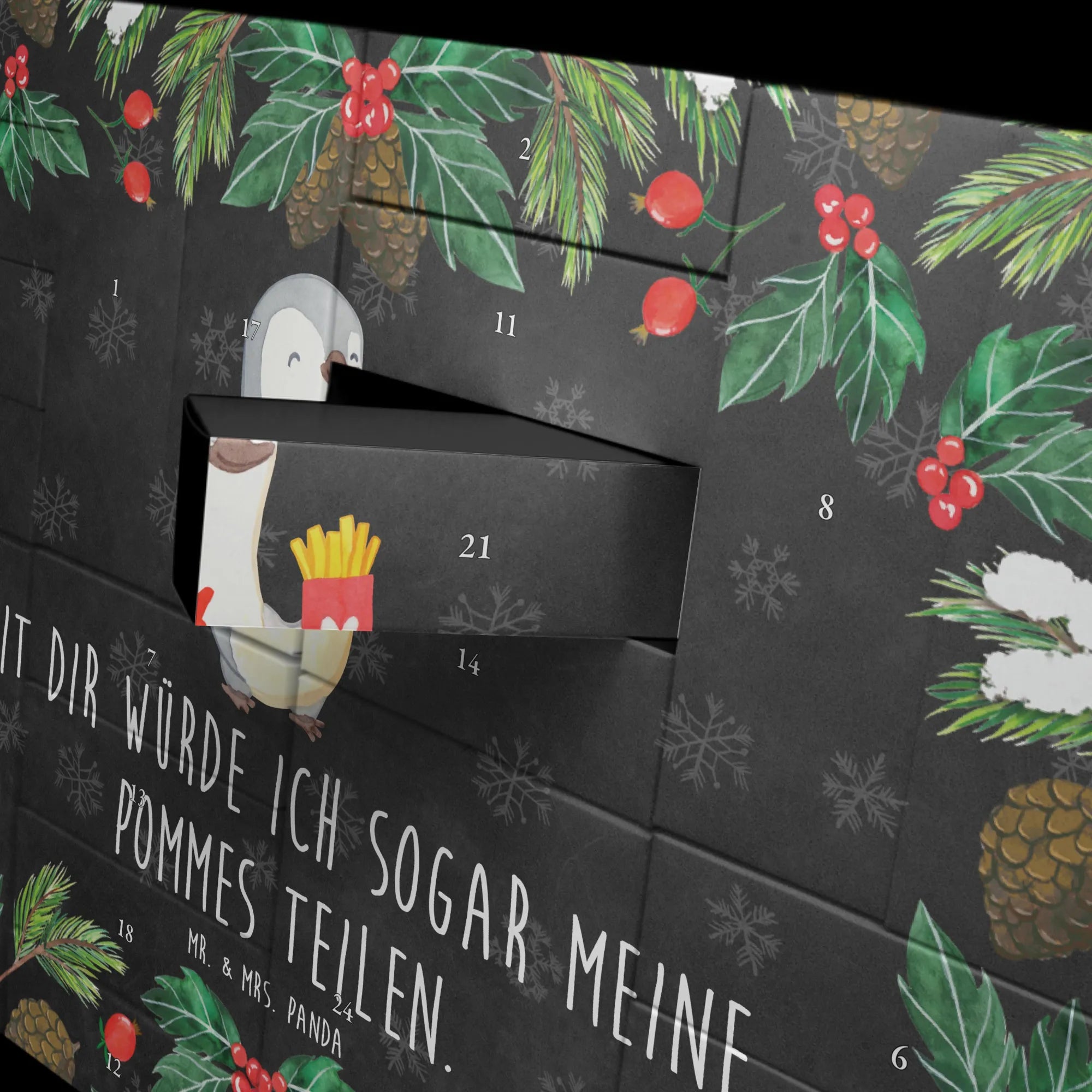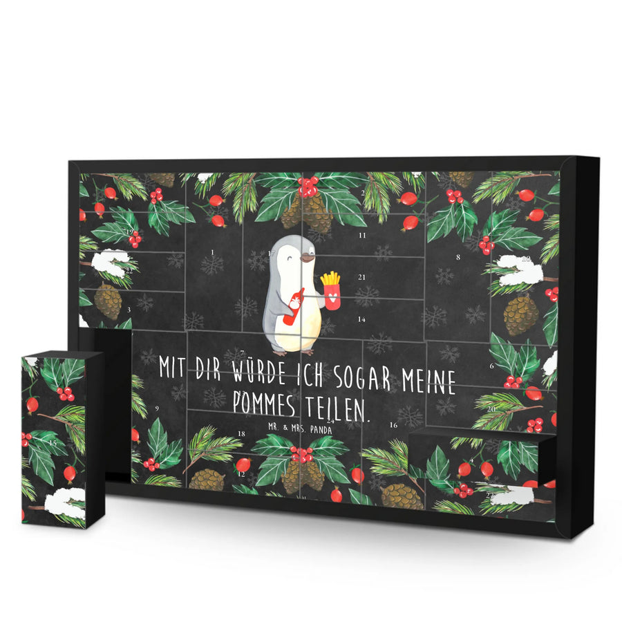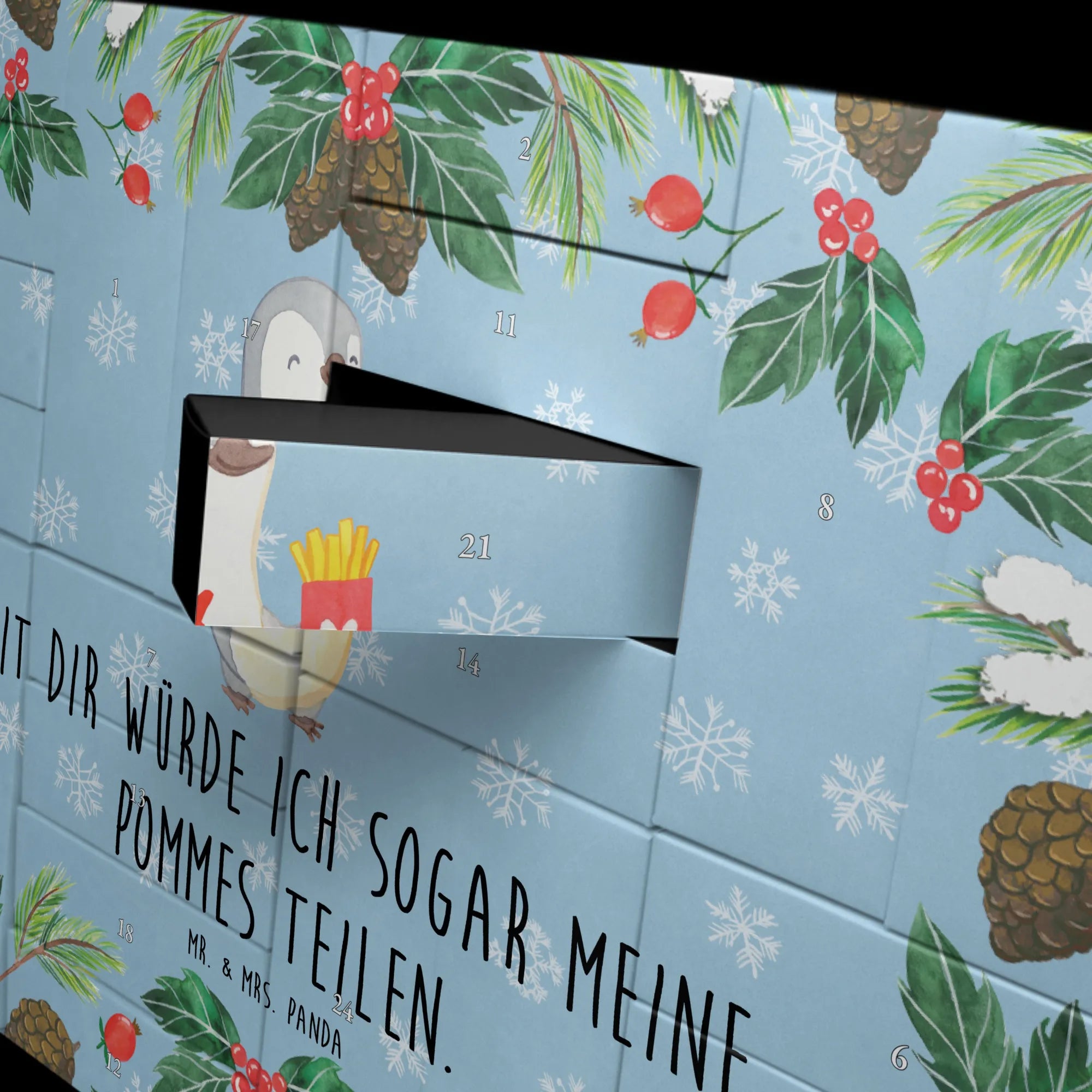 Ein befüllbarer Adventskalender von Mr. & Mrs. Panda ist das perfekte Geschenk für all jene, die das Besondere im Alltag lieben und das Warten auf Weihnachten mit einem besonders liebevollen und persönlichen Touch gestalten möchten. Dieser Adventskalender mit dem fröhlichen Pinguin Pommes-Motiv sorgt nicht nur für Vorfreude, sondern vermittelt auch das Gefühl von Verbundenheit und Zuneigung. Mit dem liebevollem Spruch "Mit dir würde ich sogar meine Pommes teilen", wird er zu einem idealen Begleiter, egal ob für den Freund, die Freundin oder den Ehemann.