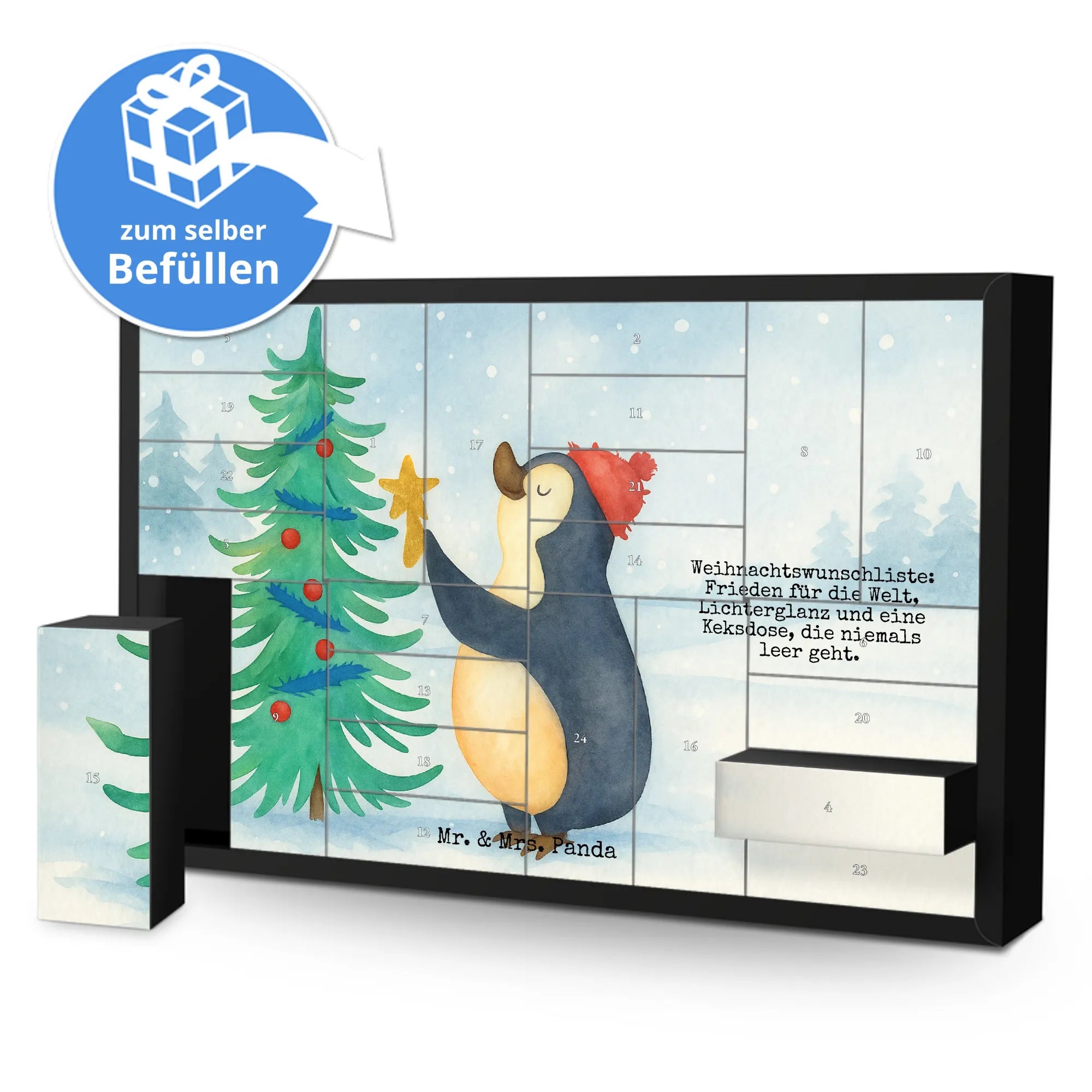 Befüllbarer Adventskalender Pinguin Weihnachtsbaum Design - mit Spruch