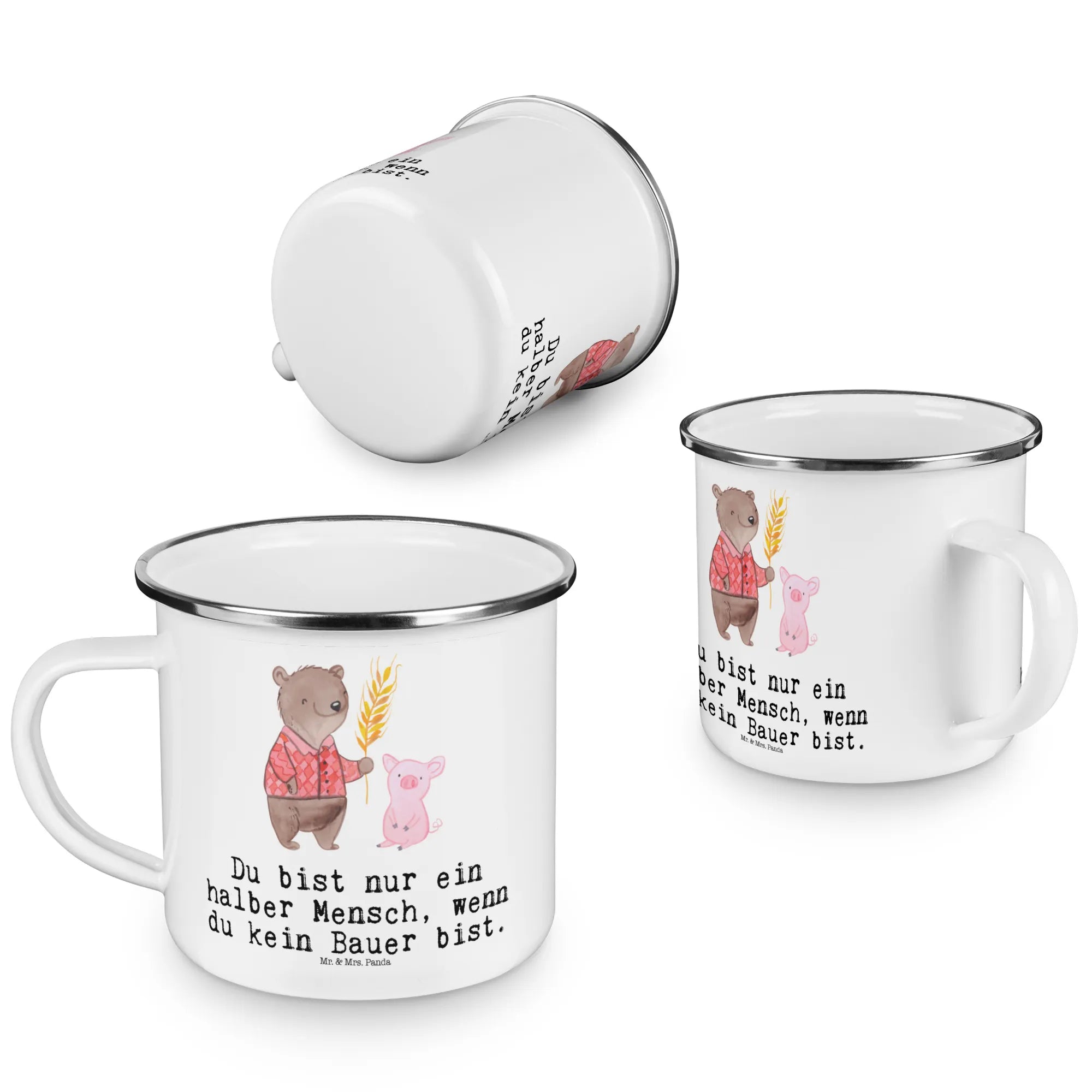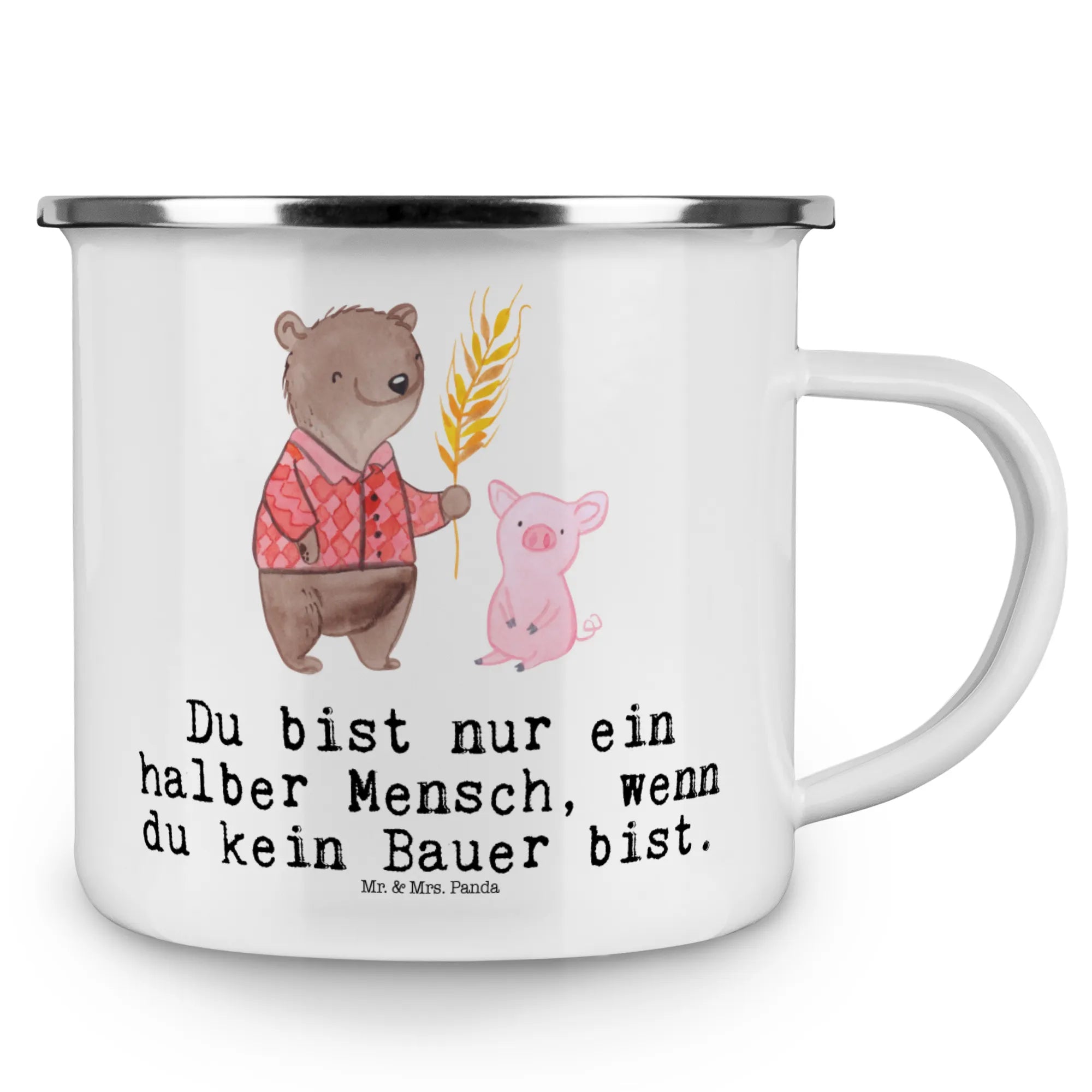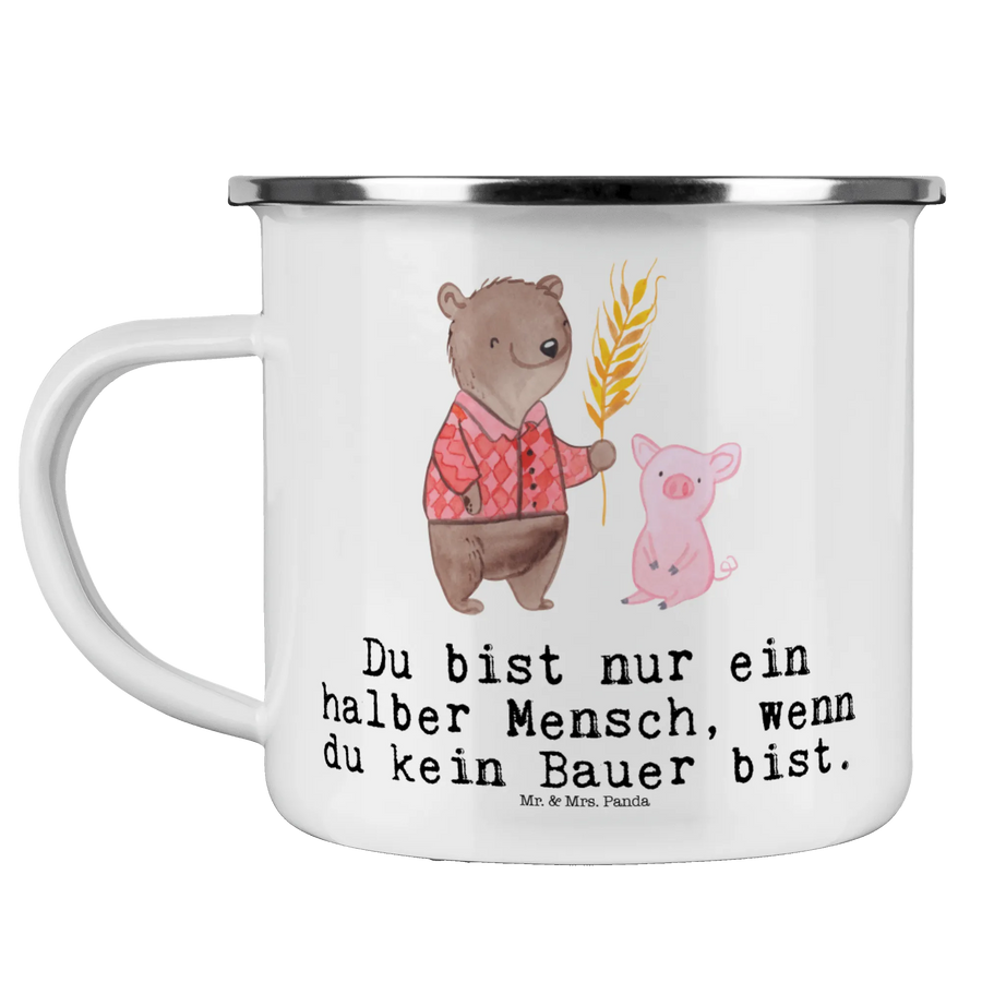 Die wunderschöne Camping Emaille Tasse "Bauer mit Herz" von Mr. & Mrs. Panda ist das perfekte Geschenk für alle Landwirte und Naturfreunde. Mit einem bezaubernden Design, das einen süßen Bären in einem karierten Hemd zeigt, der stolz Getreide in der Hand hält, verkörpert diese Tasse das Herzblut und die Leidenschaft, die Kämpfer in der Landwirtschaft an den Tag legen.