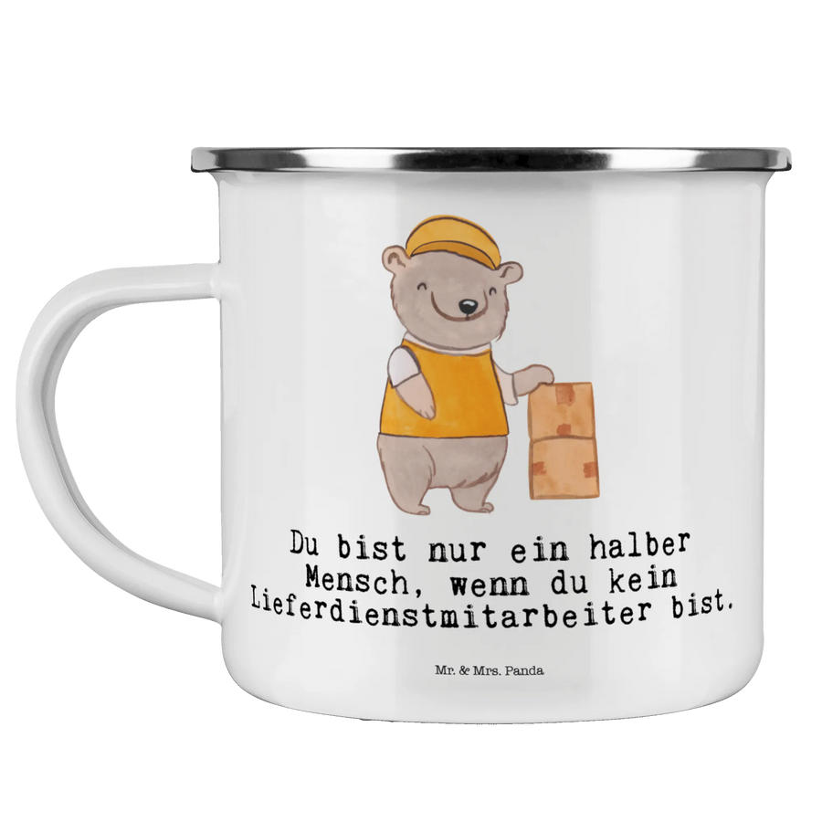 Entdecke die perfekte Camping Emaille Tasse mit dem liebevollen Motiv „Lieferdienstmitarbeiter mit Herz“ von Mr. & Mrs. Panda! Diese einzigartige Tasse ist nicht nur ein praktischer Begleiter für Deine nächsten Abenteuer beim Campen oder Wandern, sondern auch ein herzliches Geschenk für all die großartigen Menschen, die in der Lieferbranche tätig sind. Jeder Schluck aus dieser stabilen Metalltasse erinnert an die wichtigen Momente im Leben eines Lieferdienstmitarbeiters und wird garantiert ein Lächeln auf die Gesichter Deiner Freunde und Kollegen zaubern.