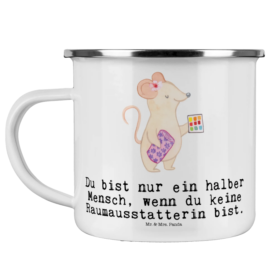 Camping Emaille Tasse Raumausstatterin mit Herz – Mr. & Mrs. Panda
